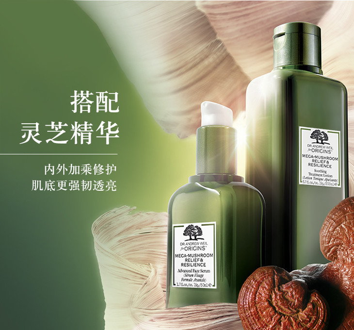 美国原装进口 origins/悦木之源韦博士灵芝焕能精华水套装 爽肤水灵芝水菌菇水200ml