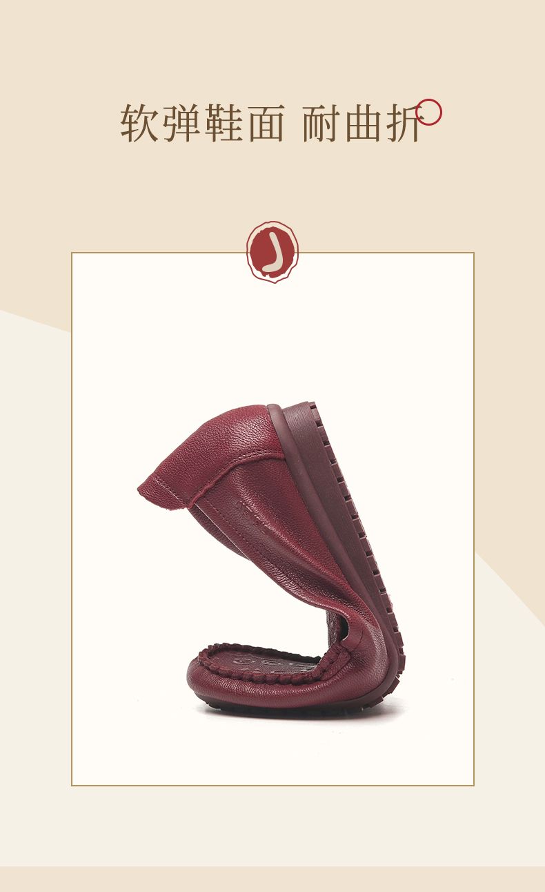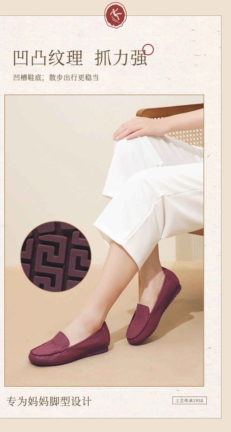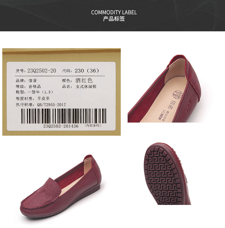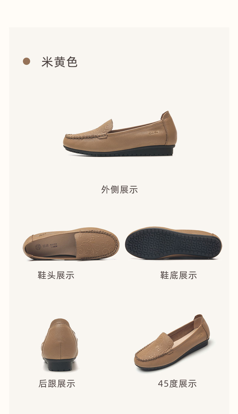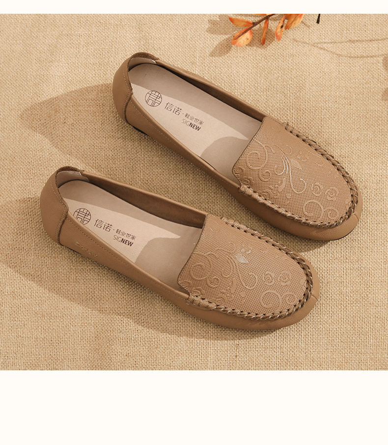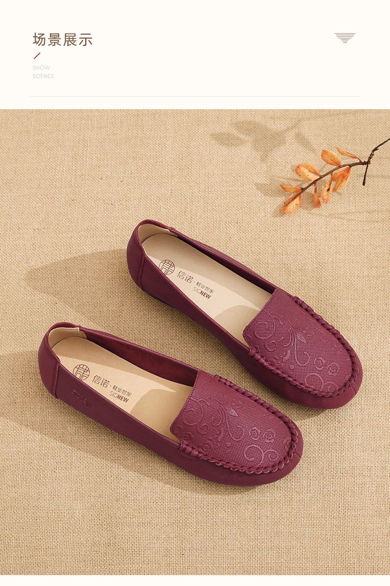 信诺软底乐福鞋女羊皮2023新款秋季一脚蹬中老年妈妈鞋平底豆豆鞋