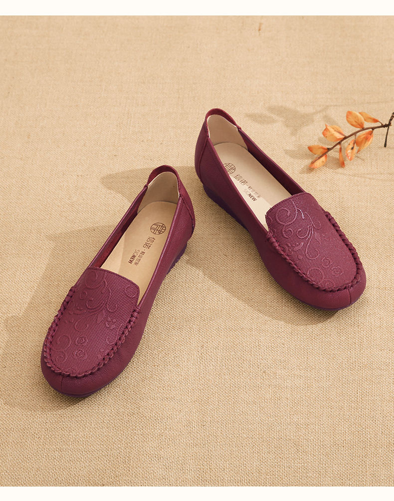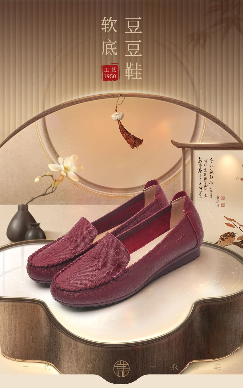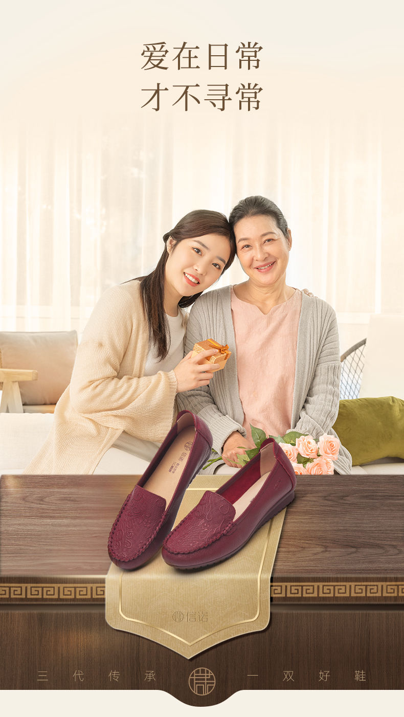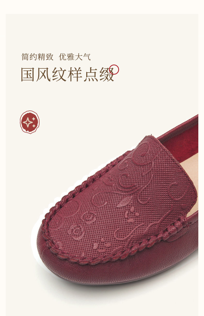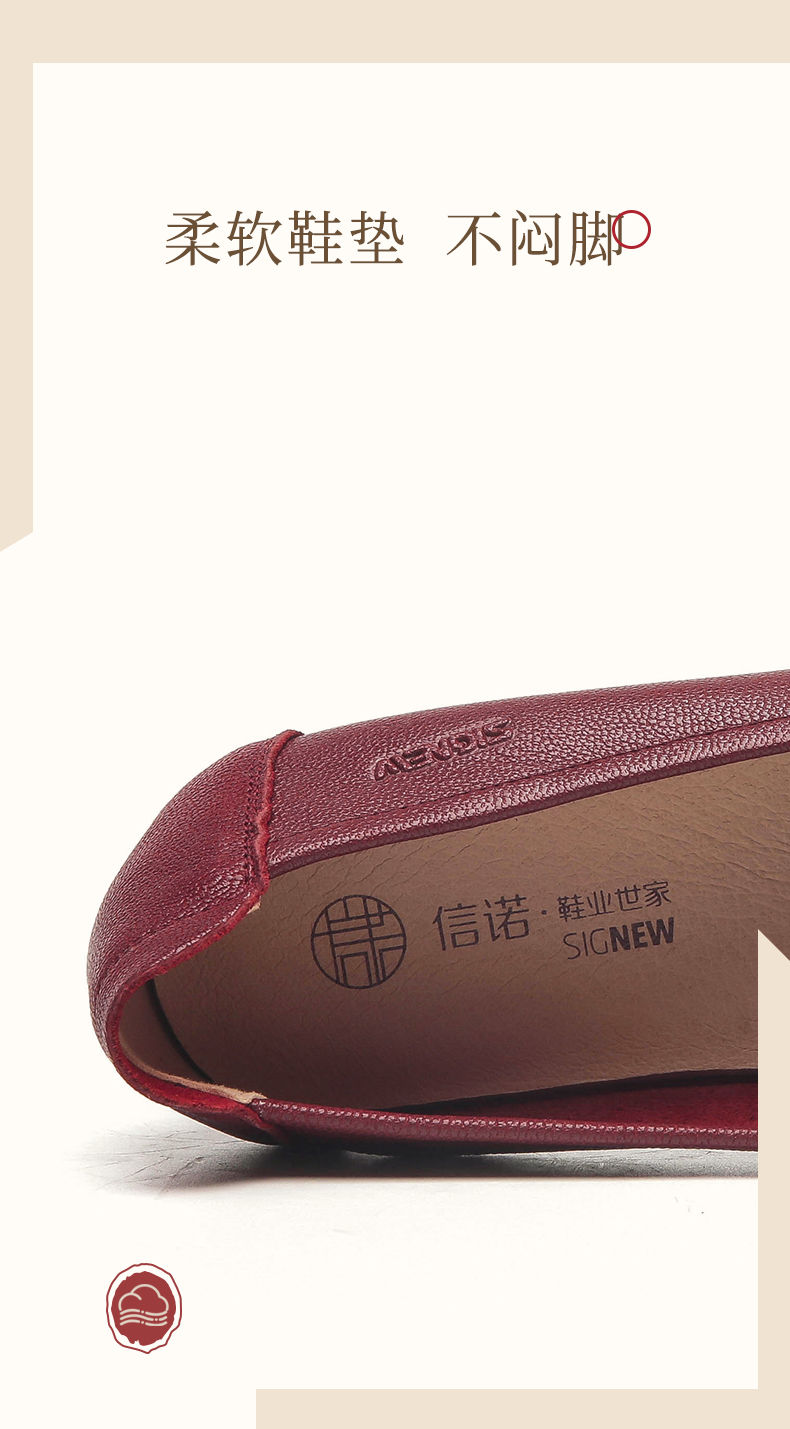 信诺软底乐福鞋女羊皮2023新款秋季一脚蹬中老年妈妈鞋平底豆豆鞋