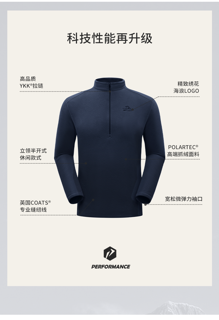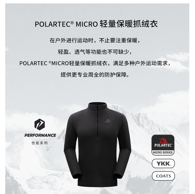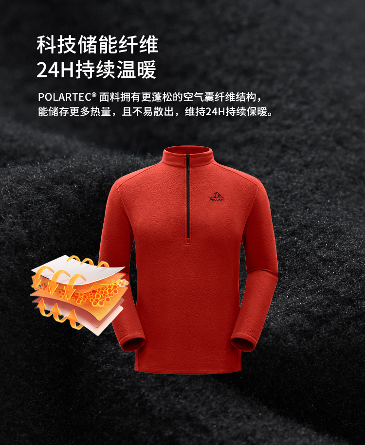 【P系列】伯希和户外Polartec抓绒衣内胆男士轻量透气运动打底衫