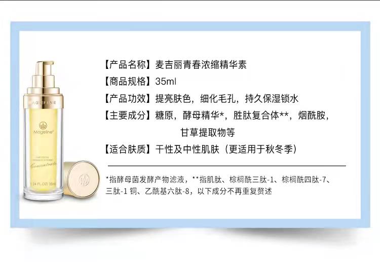 麦吉丽青春浓缩精华素亮采深层补水保湿肌肤官方正品黄精华