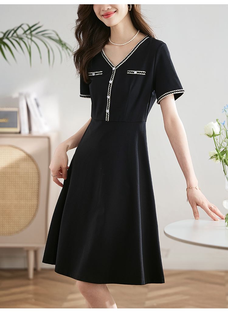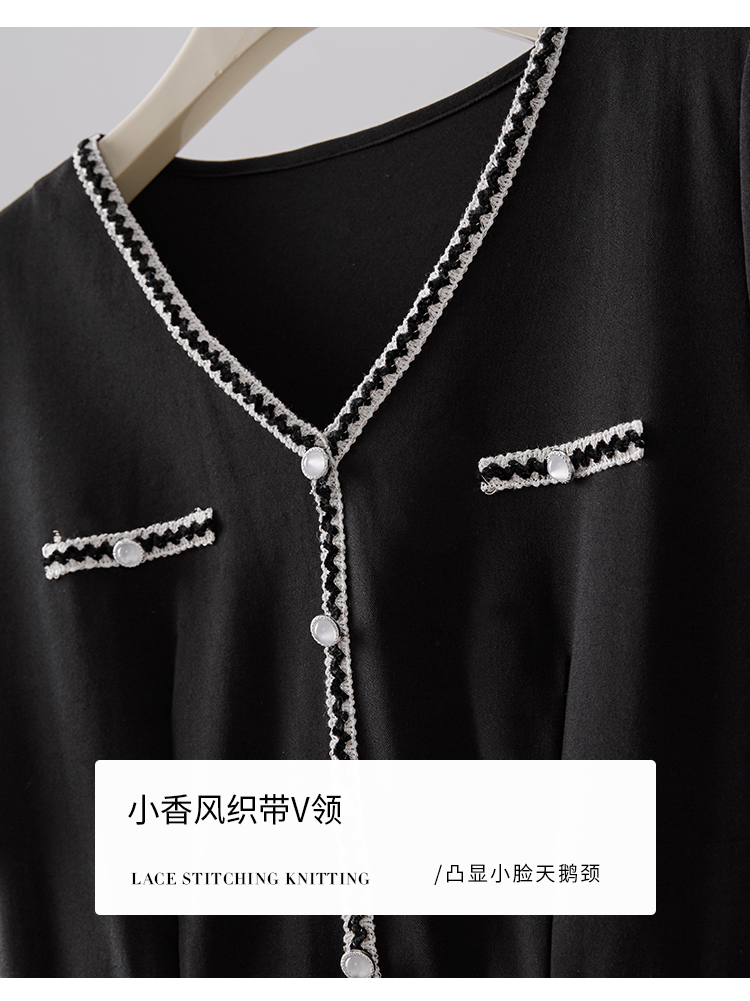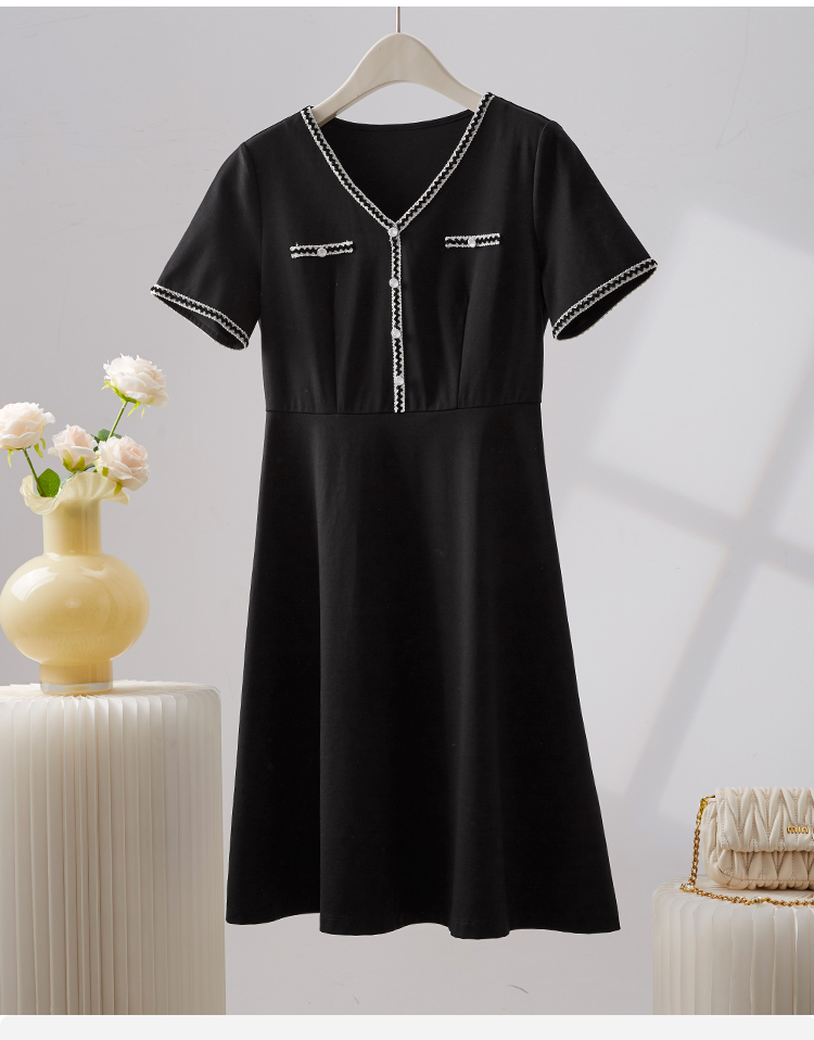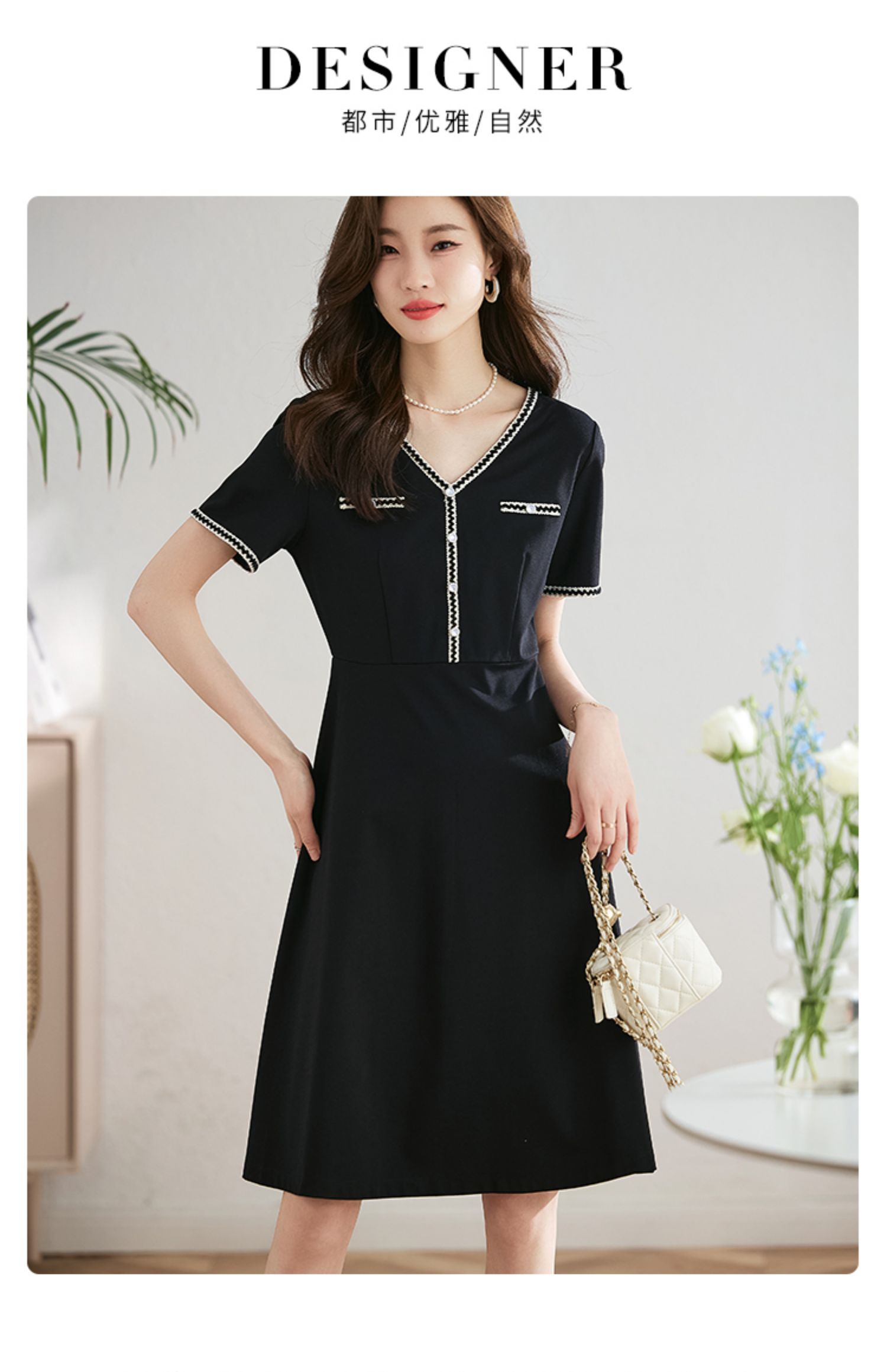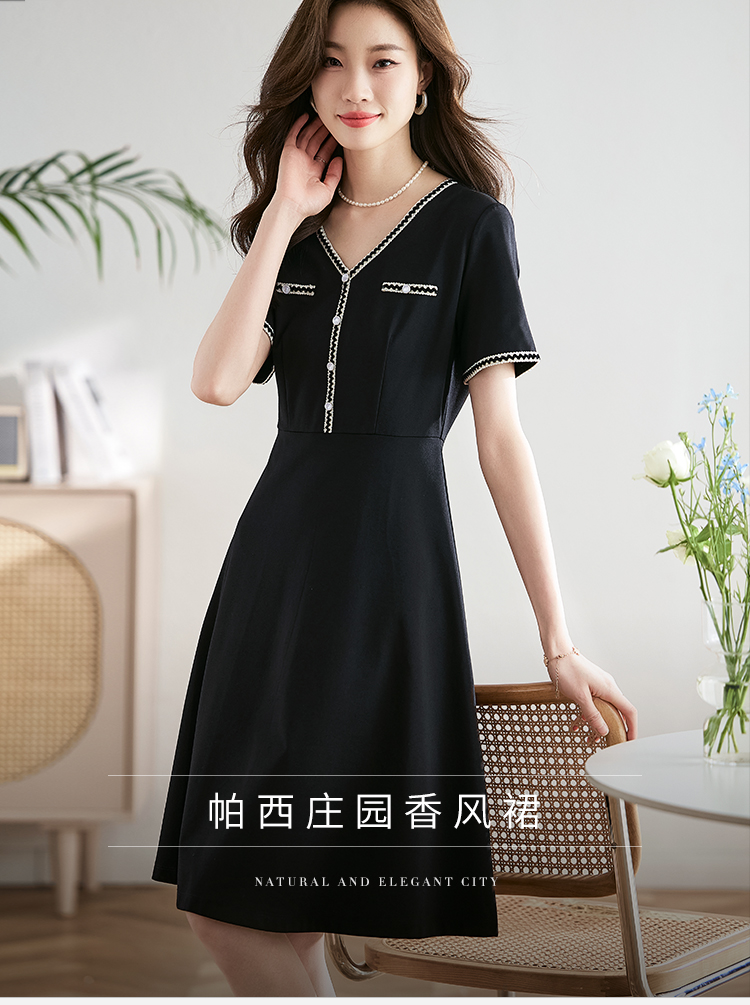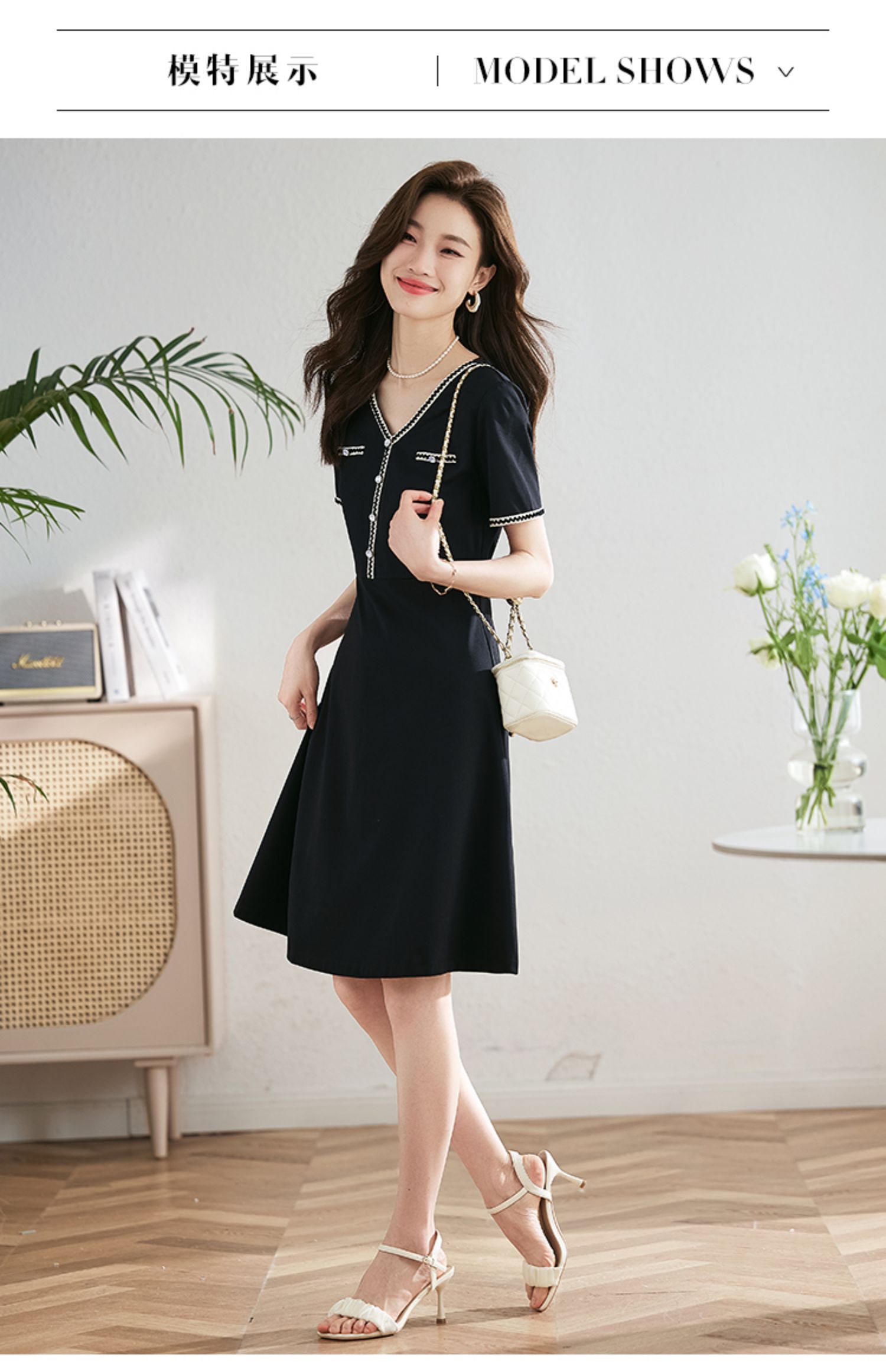 【专属特价】熙世界赫本小香风连衣裙女2025夏季新款气质织带V领A字显瘦小黑裙