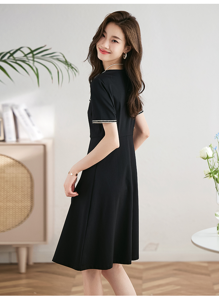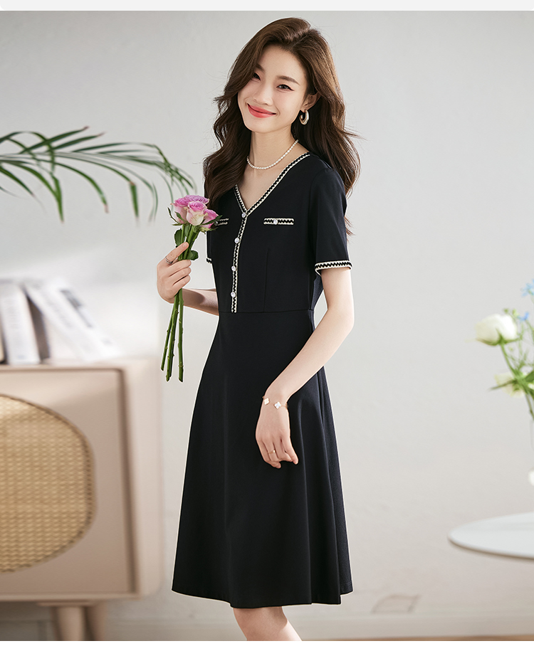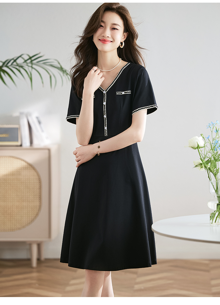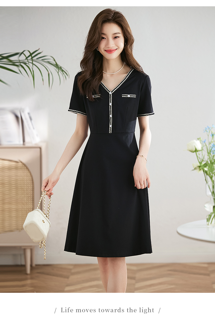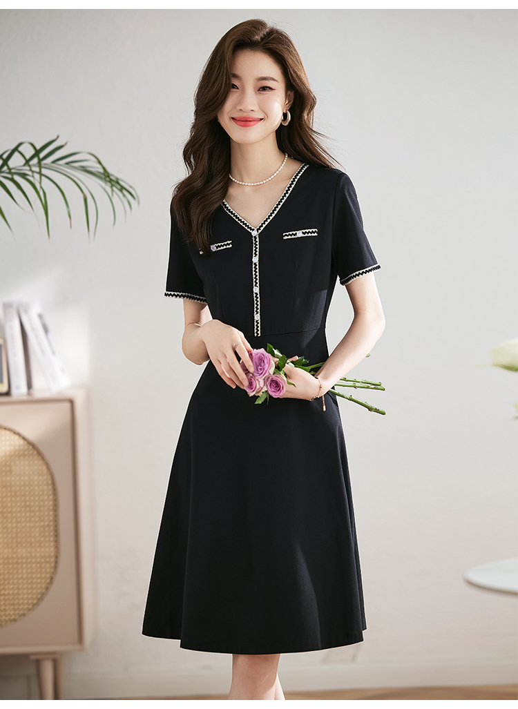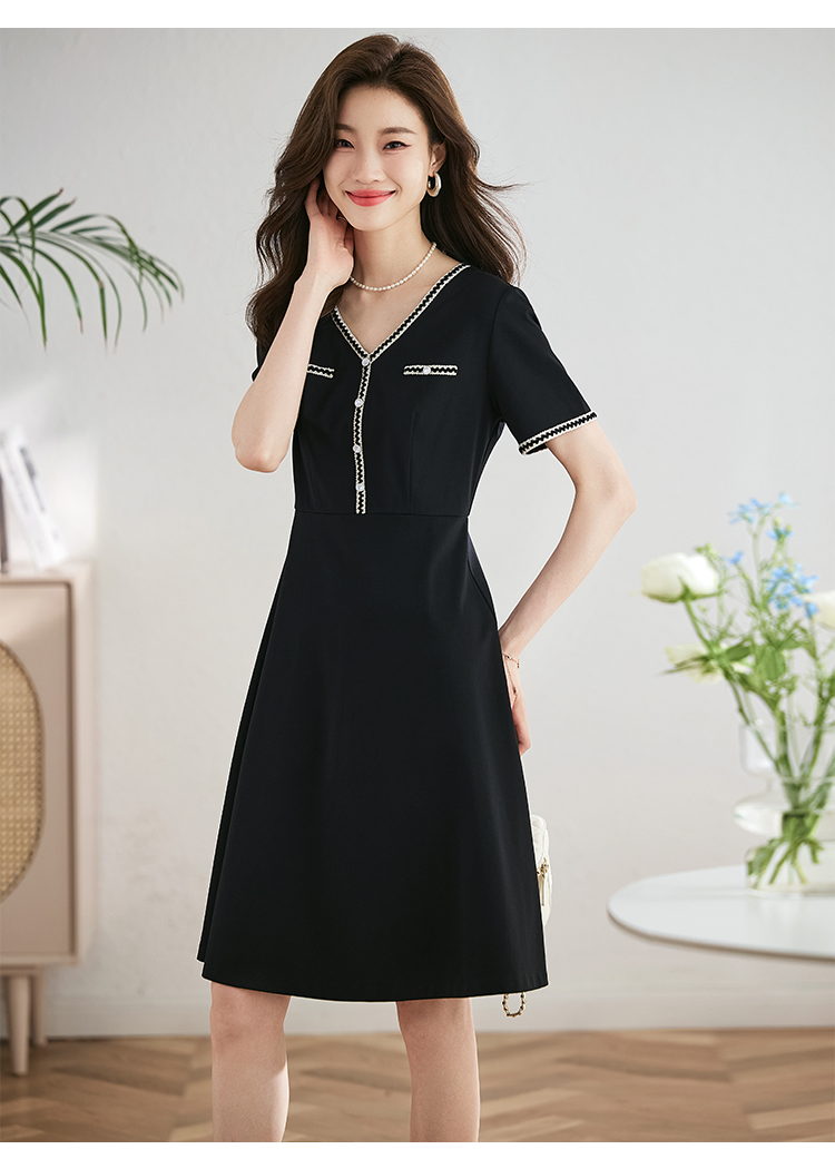 【专属特价】熙世界赫本小香风连衣裙女2025夏季新款气质织带V领A字显瘦小黑裙