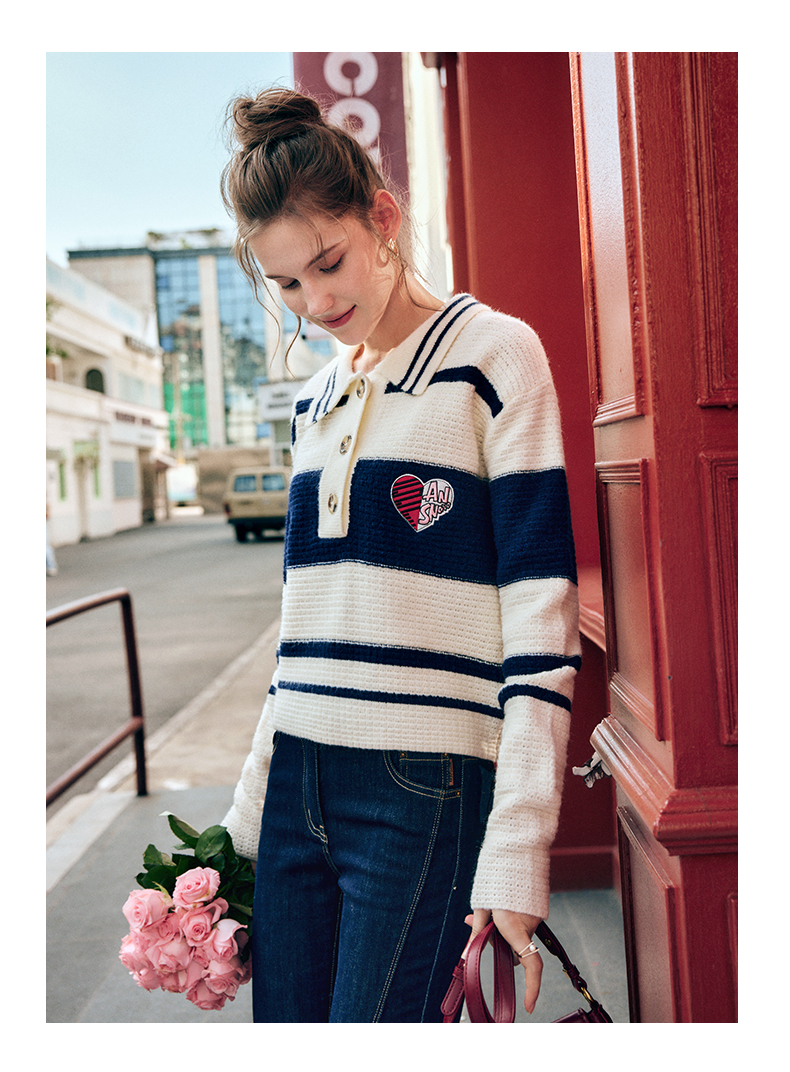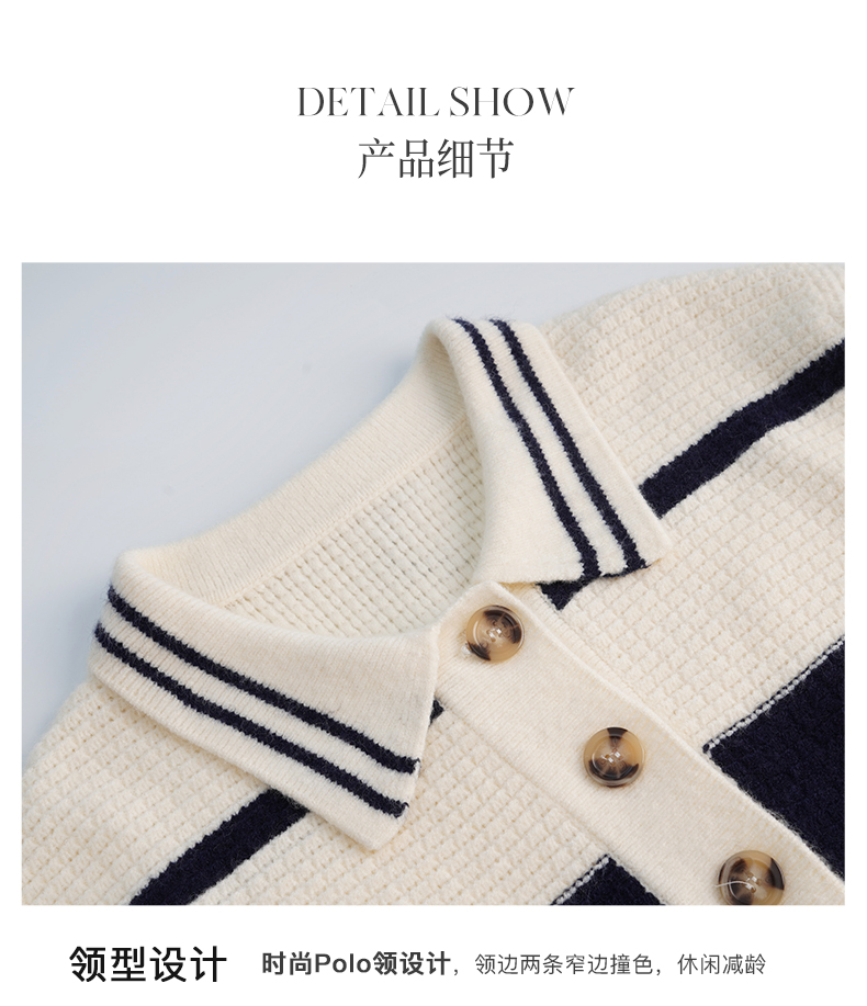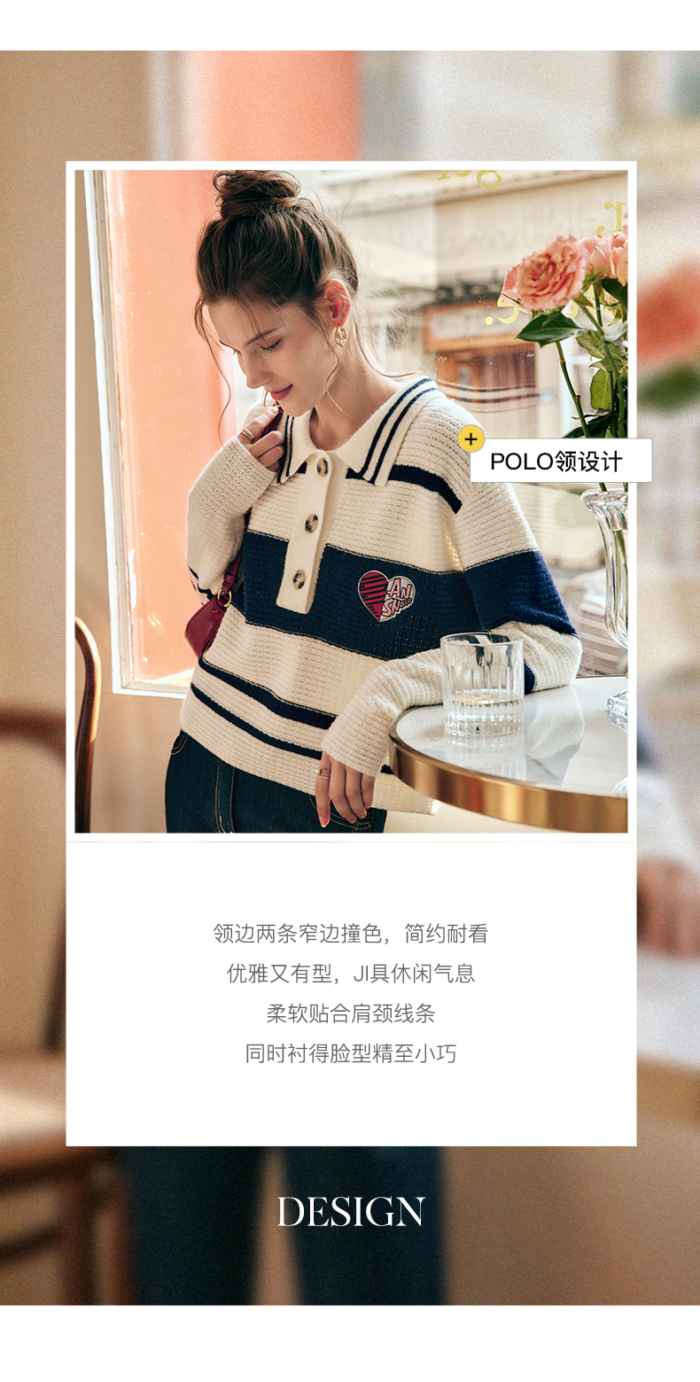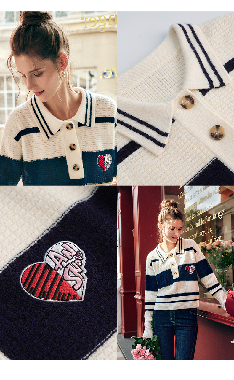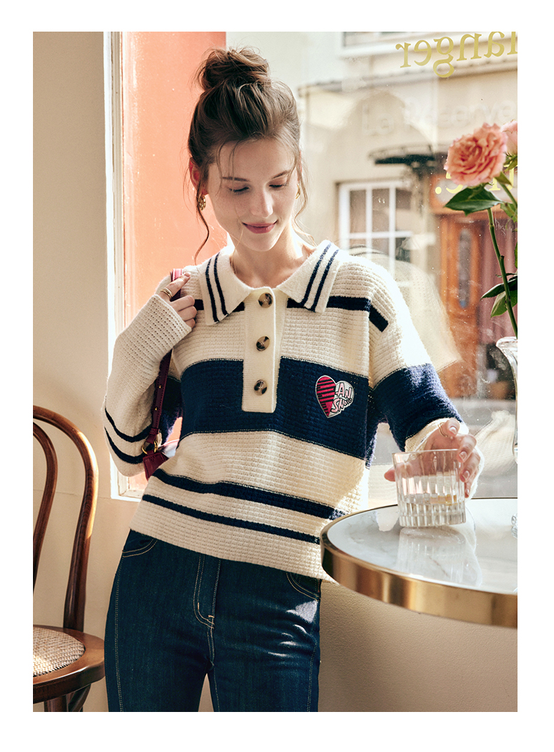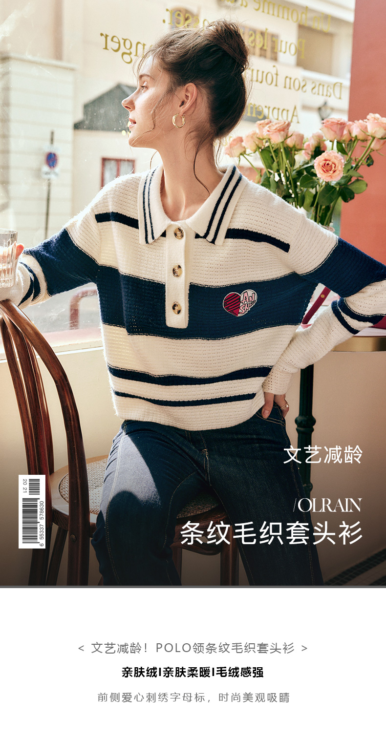 OLrain欧芮儿法式条纹毛衣女春季2025年新款学院风polo领针织上衣