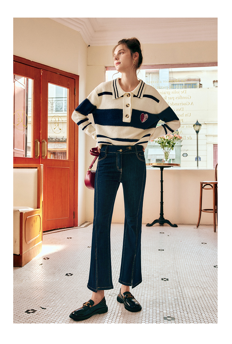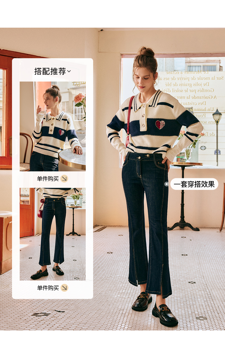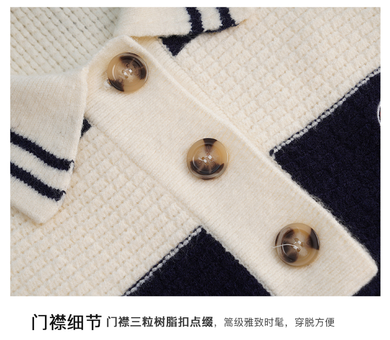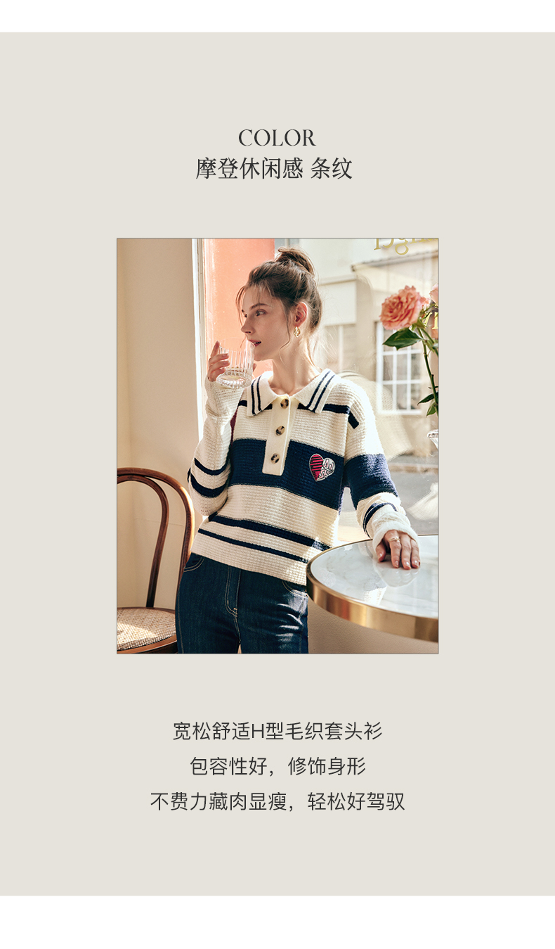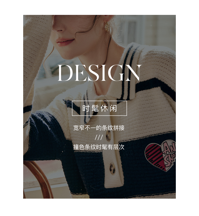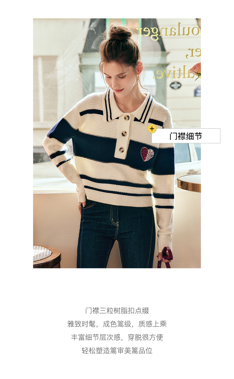 OLrain欧芮儿法式条纹毛衣女春季2025年新款学院风polo领针织上衣
