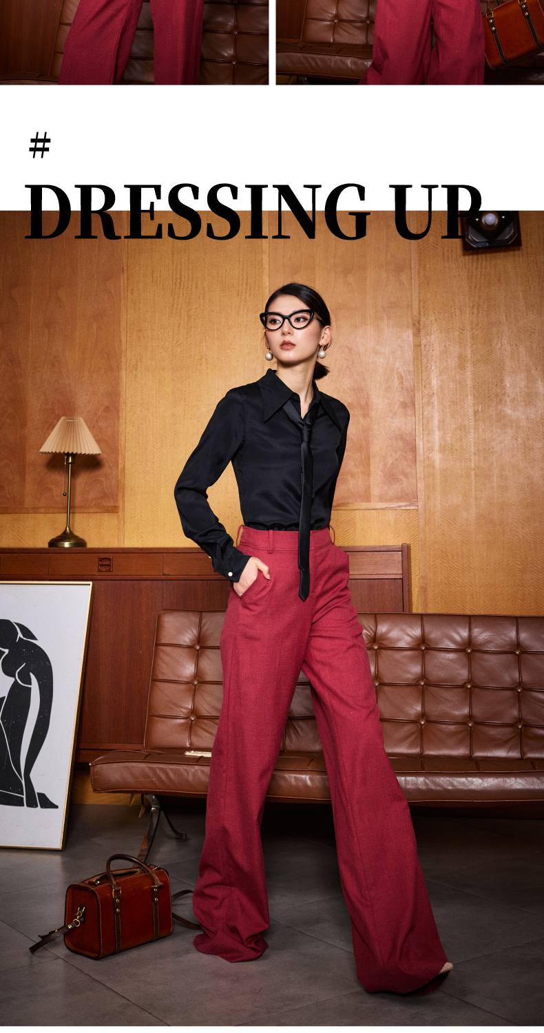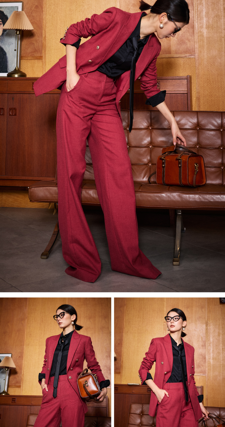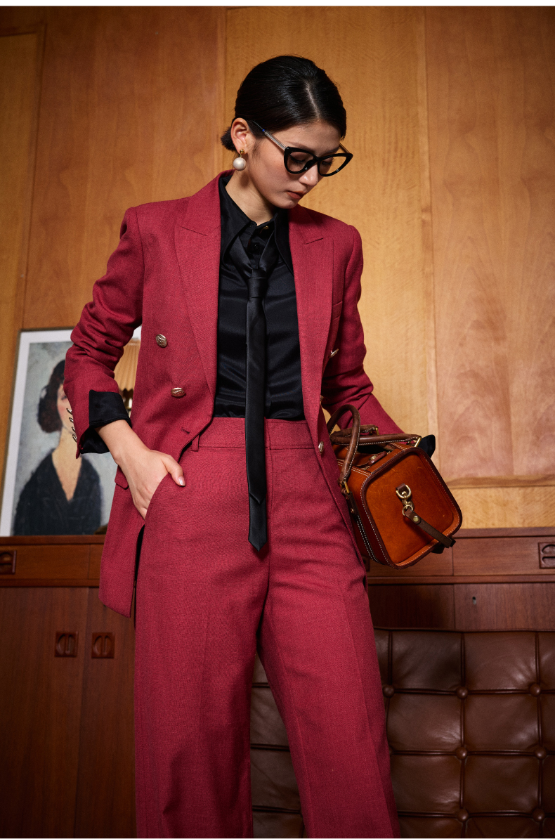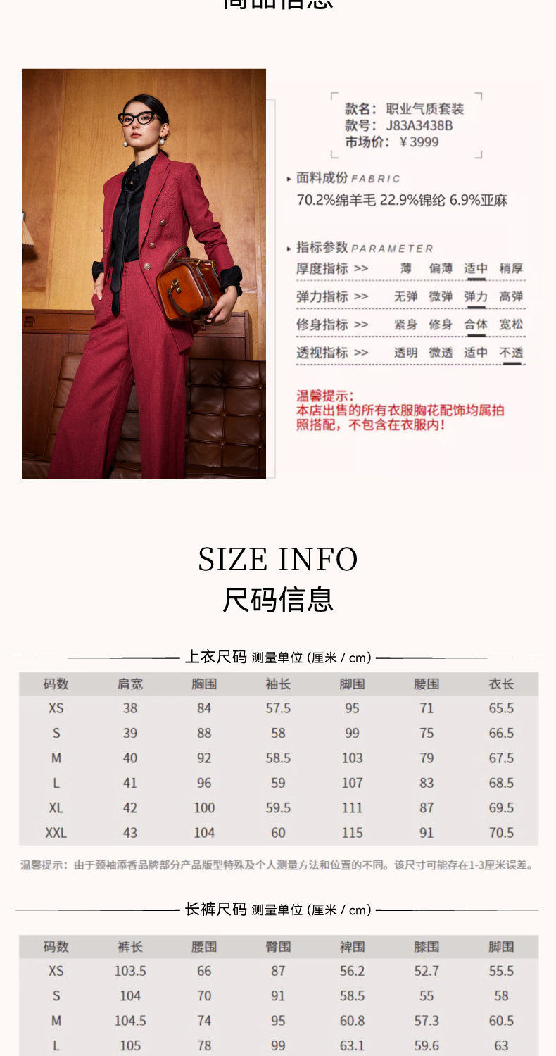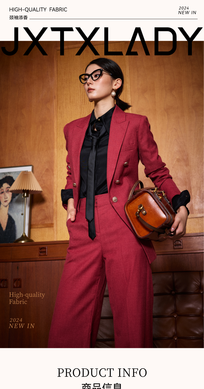 “无问西东”颈袖添香2024春季新款职业套裤琥珀色时尚气质套裤AT1XC3438