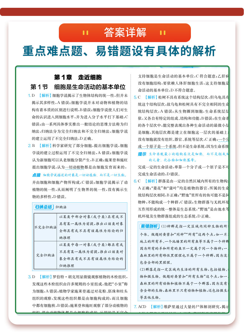 【人教版】高中生物学必修(1)·分子与细胞 实验班全程提优训练