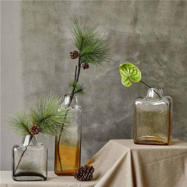 美式乡村客厅不规则小口方形花瓶餐桌渐变玻璃花瓶家居软装饰品