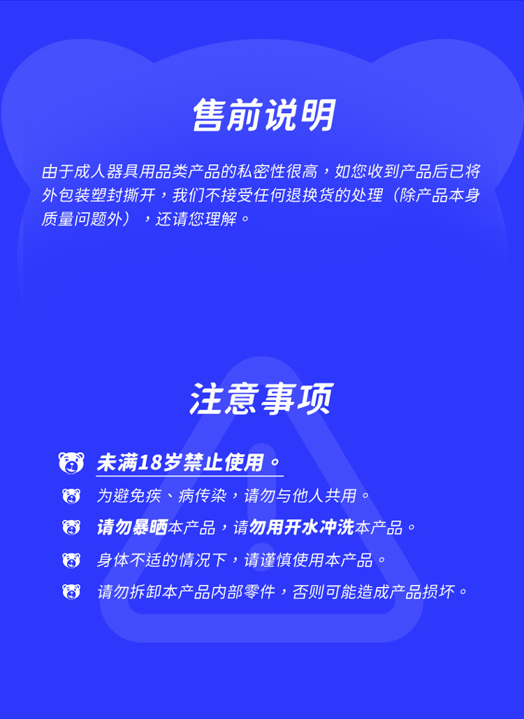 本产品为成人用品,未成年人(18岁以下)请勿购买,请将本产品放置未成年人无法触及位置。