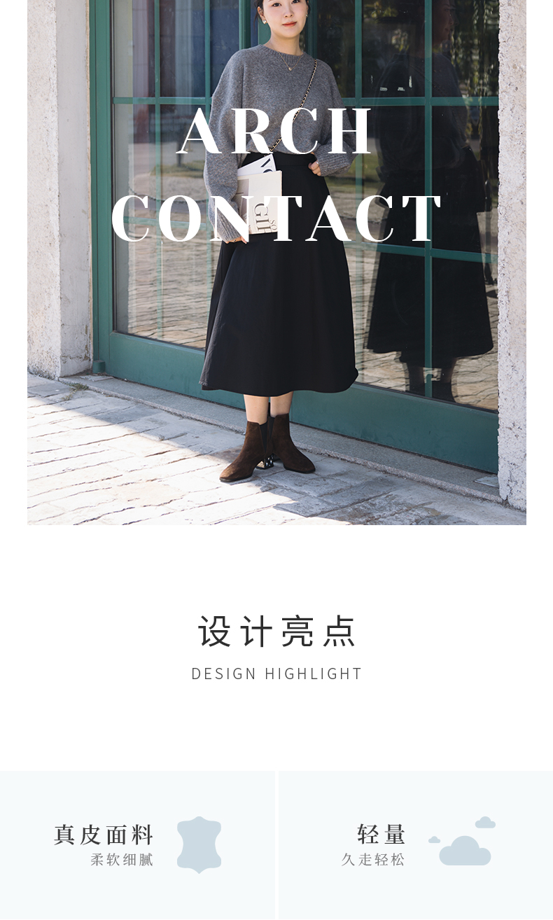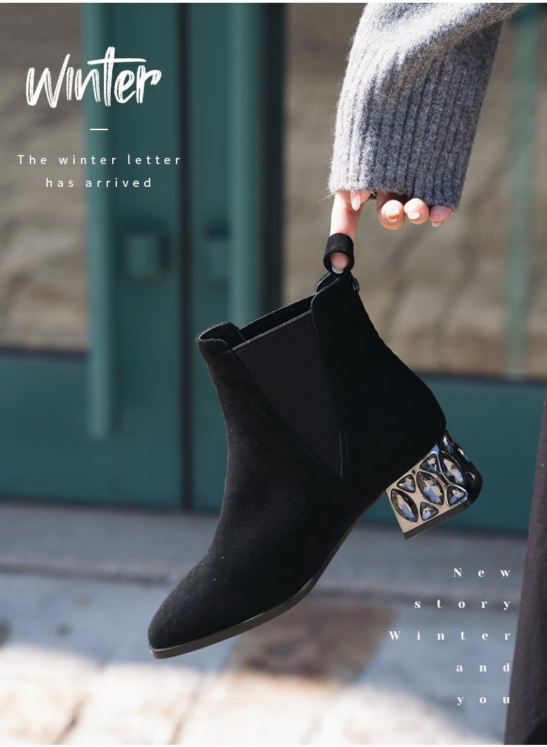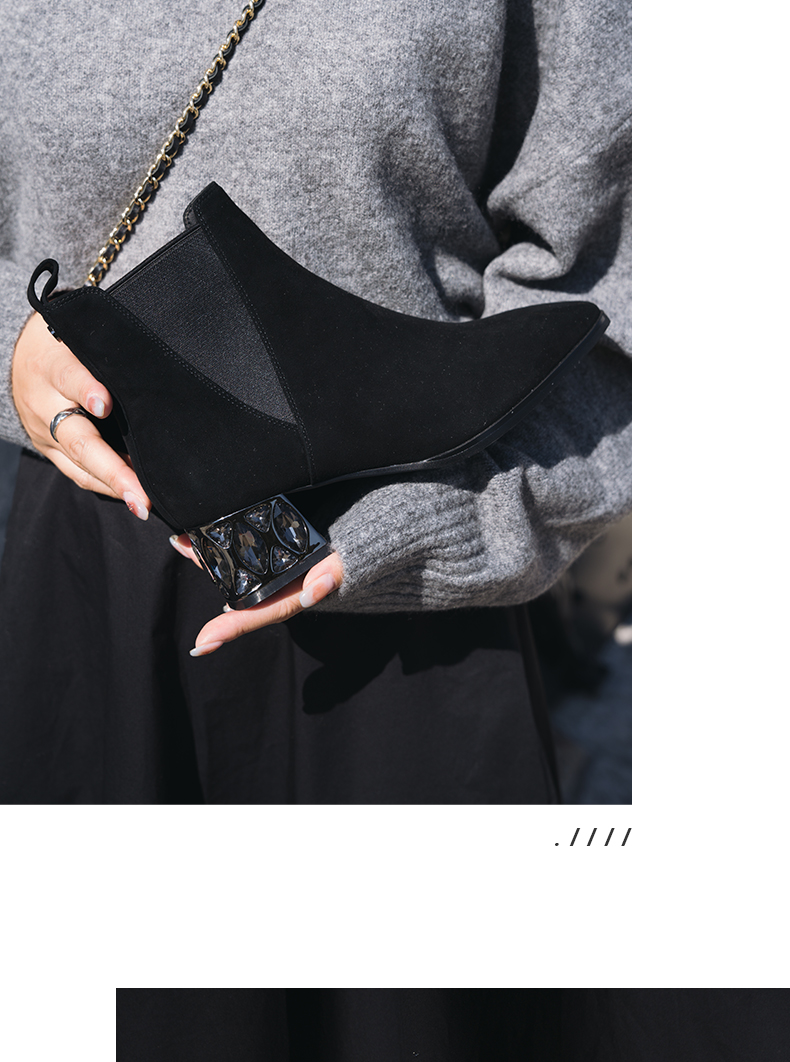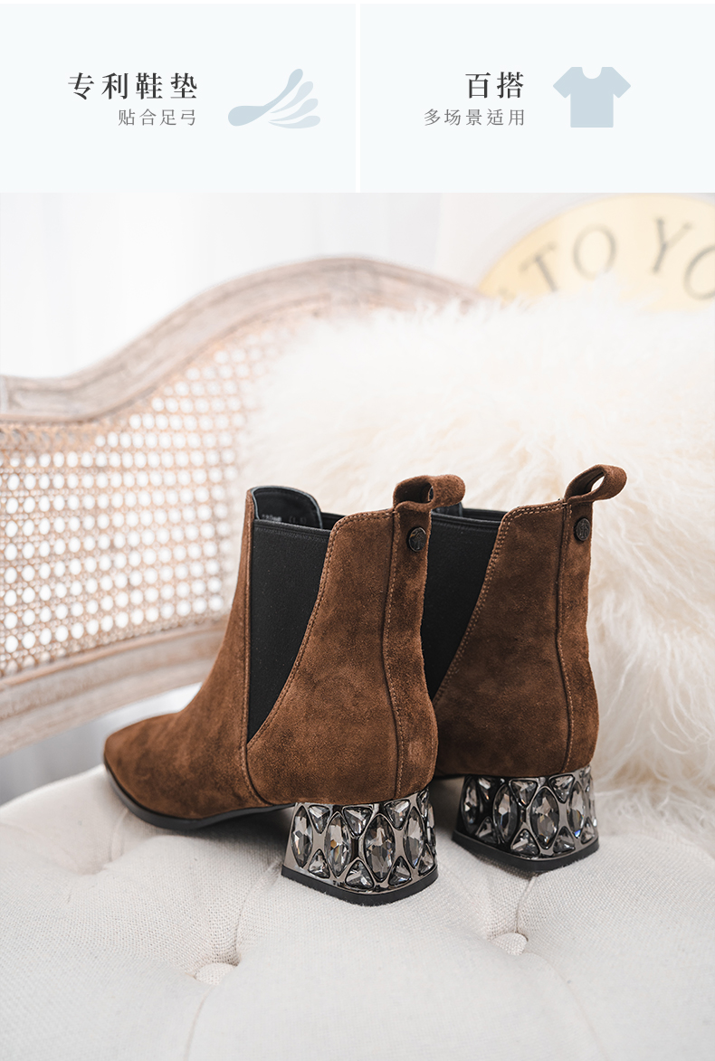 ARCH CONTACT安启美奈秋冬新品羊猄皮电镀水钻跟切尔西女靴