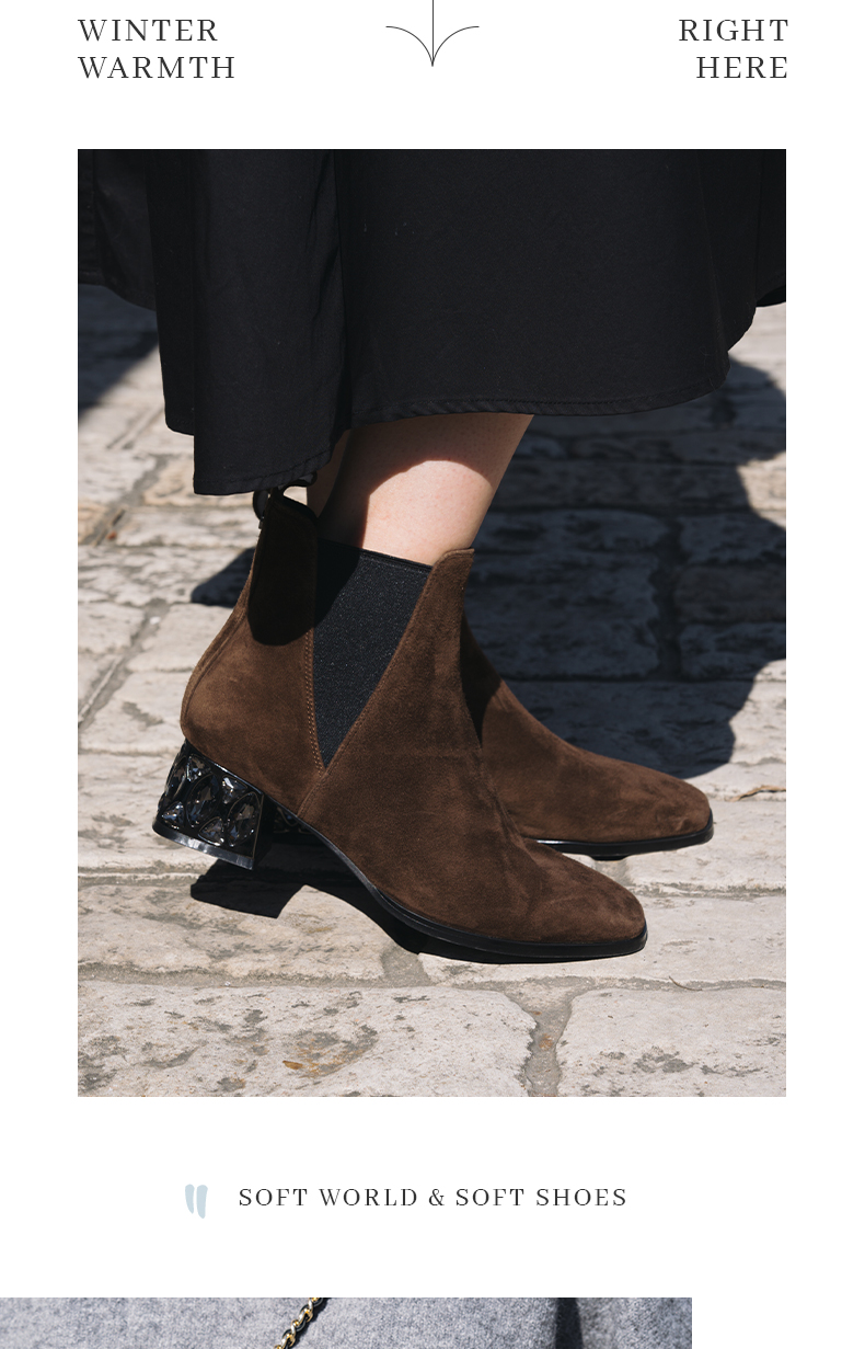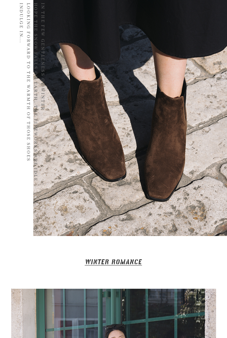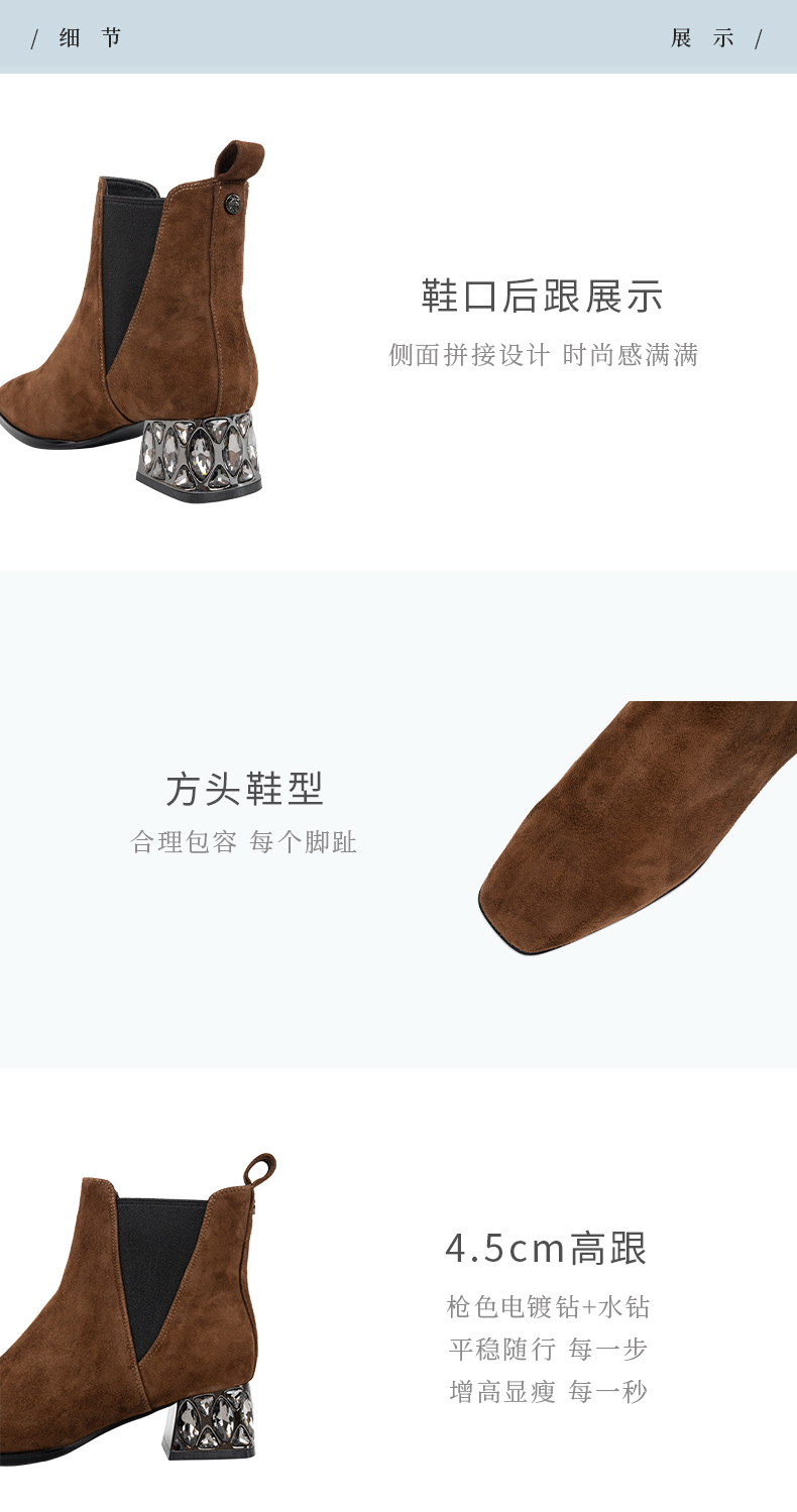 ARCH CONTACT安启美奈秋冬新品羊猄皮电镀水钻跟切尔西女靴