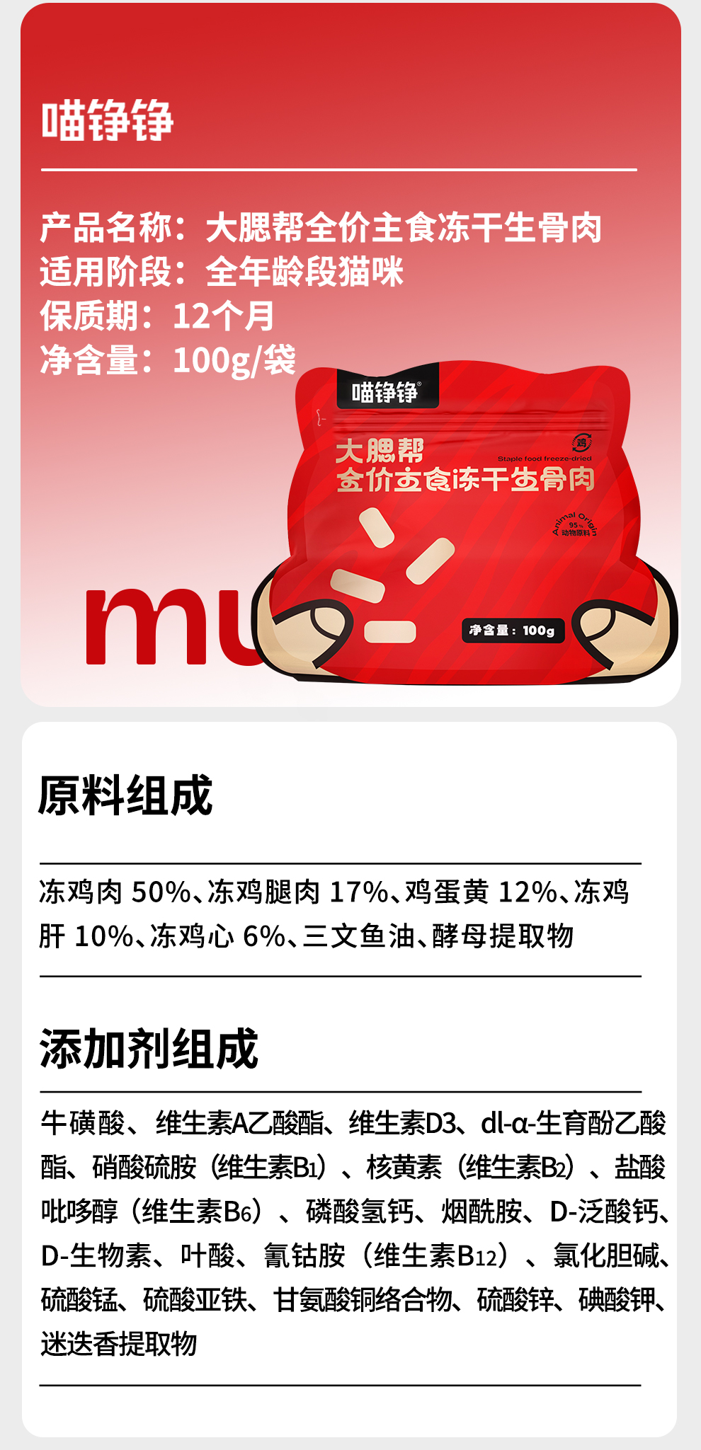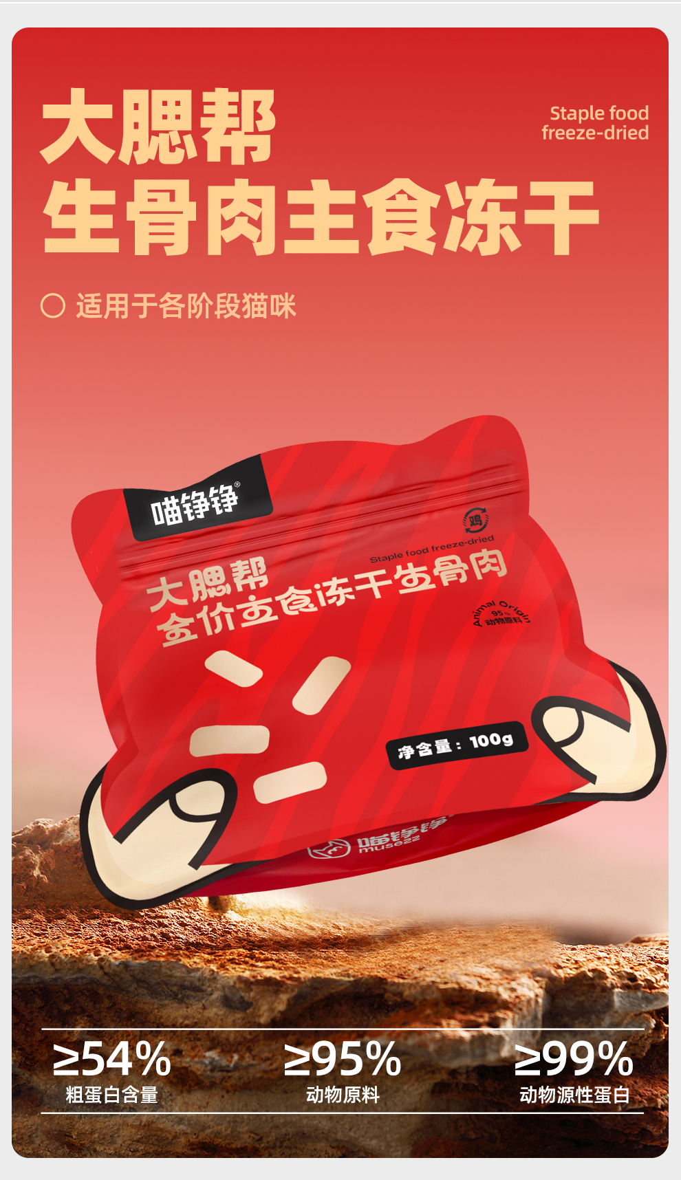 喵铮铮肉多多主食冻干 100g/包 95%肉含量全阶段无谷猫粮