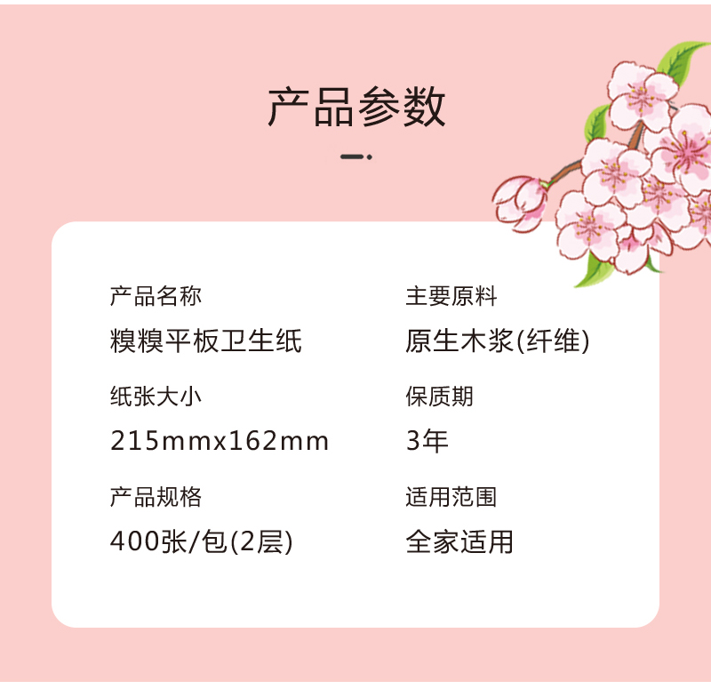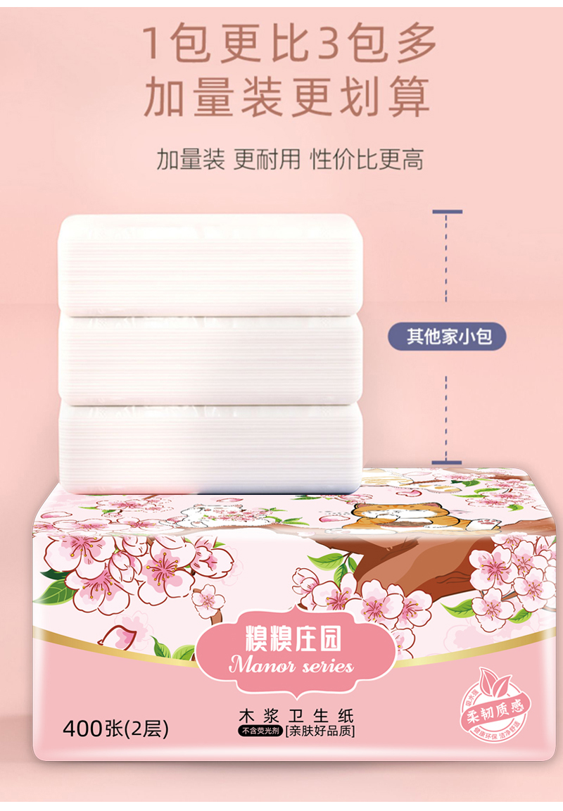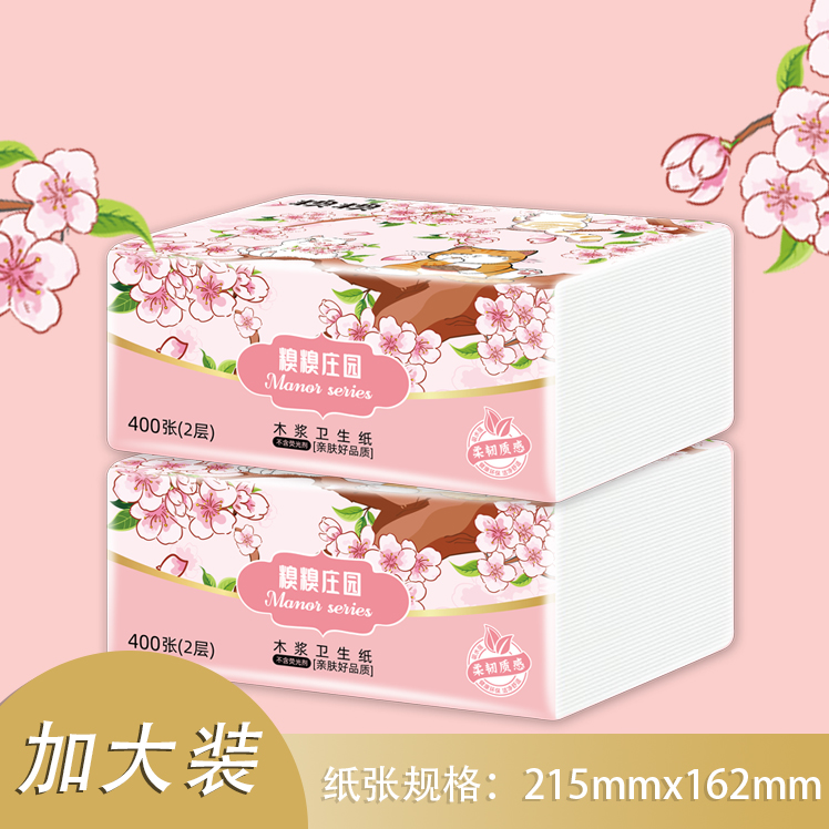 糗糗木浆卫生纸 实惠装2层400张/包(1箱*6包)