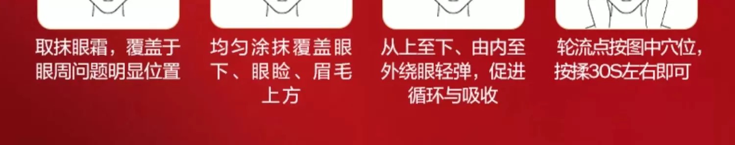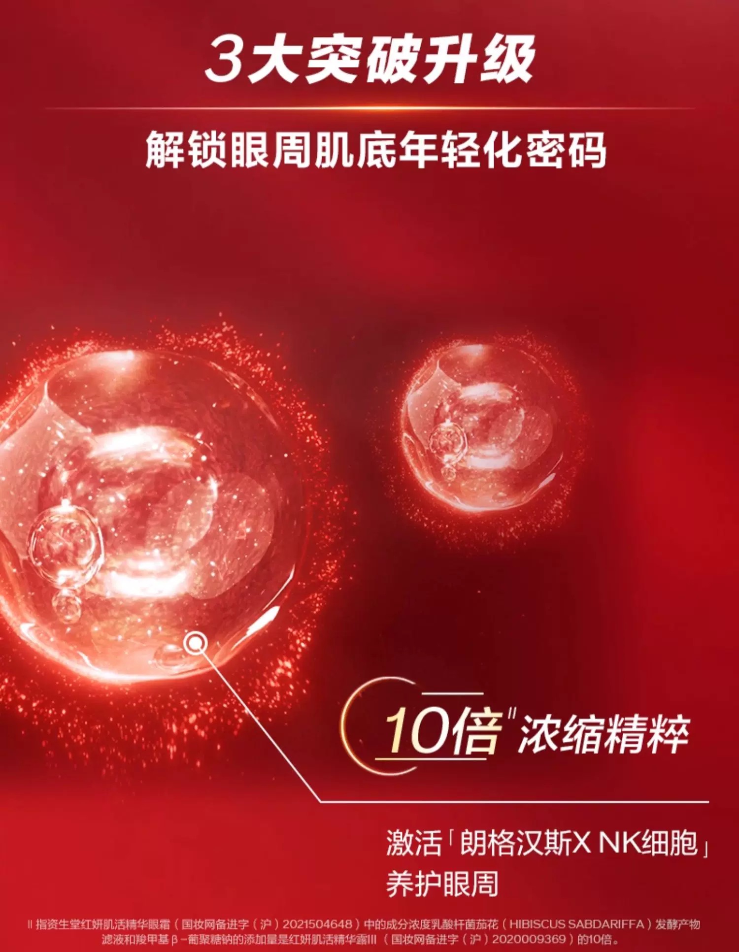 3、功效: 资生堂红腰子眼部精华眼霜 全球首支提升眼部肌肤免疫力精华重新激发肌肤潜能,为容易受损的眼周肌肤增强肌底潜力 肌肤即重焕柔滑润泽。有助抚平眼周幼纹,增添明亮弹性,令整体肤色更均匀亮泽。强化眼霜功效 终止黑眼圈、松弛
