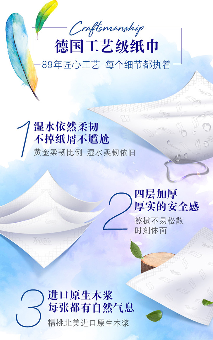 Tempo源自德国1929 MINI系列纸巾 18包整箱 无味 软抽 4层80抽 抽纸 德宝 得宝 面巾纸