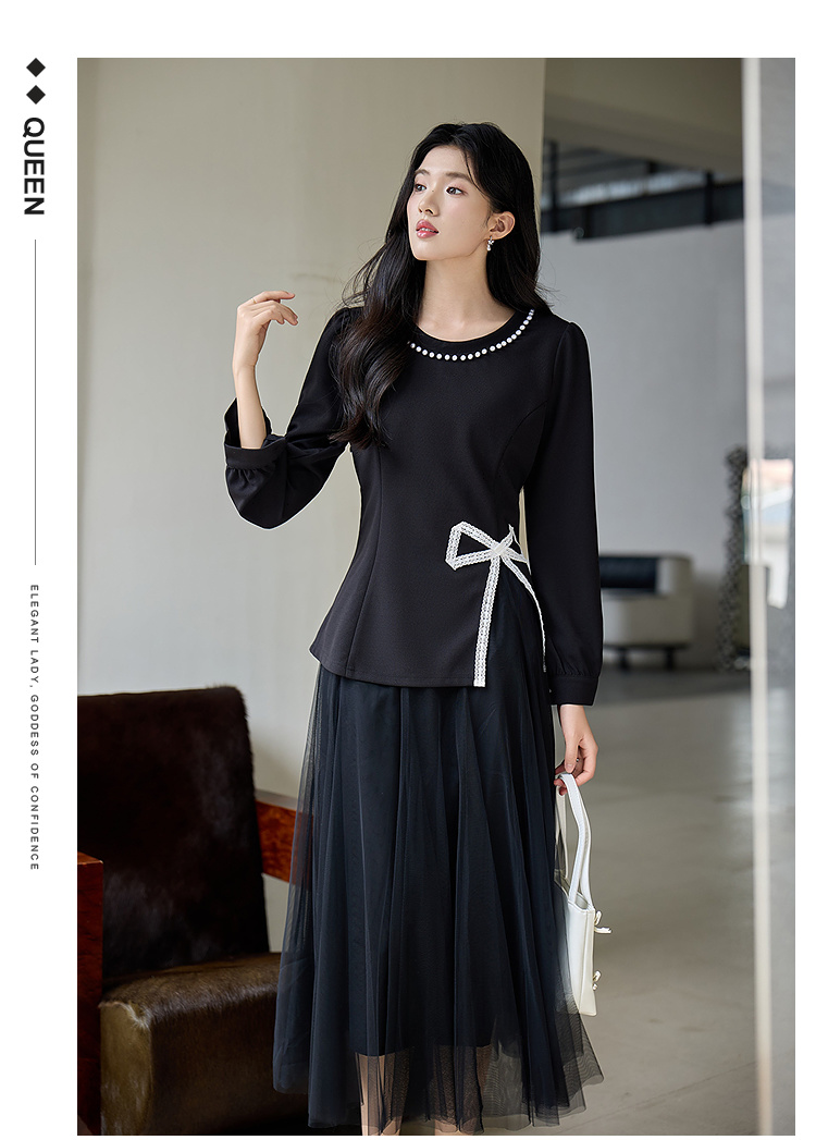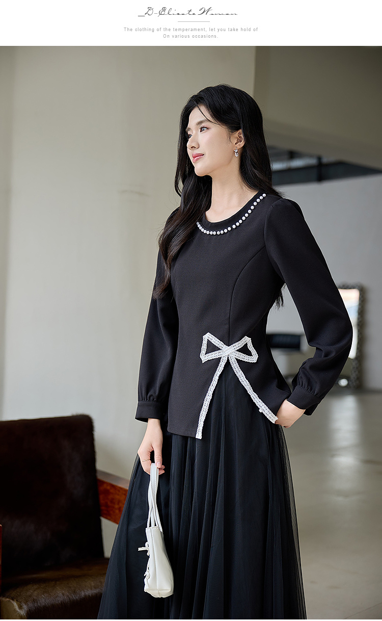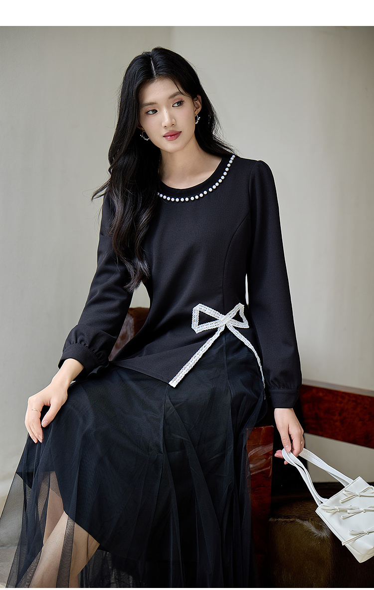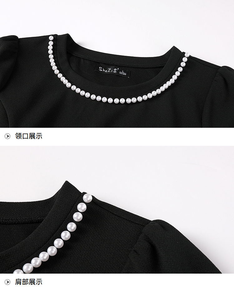 奢姿大码女装2025秋季胖妹妹时尚蝴蝶结设计气质珍珠装饰圆领上衣9953253791
