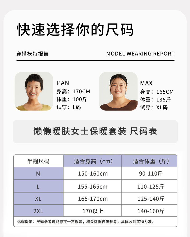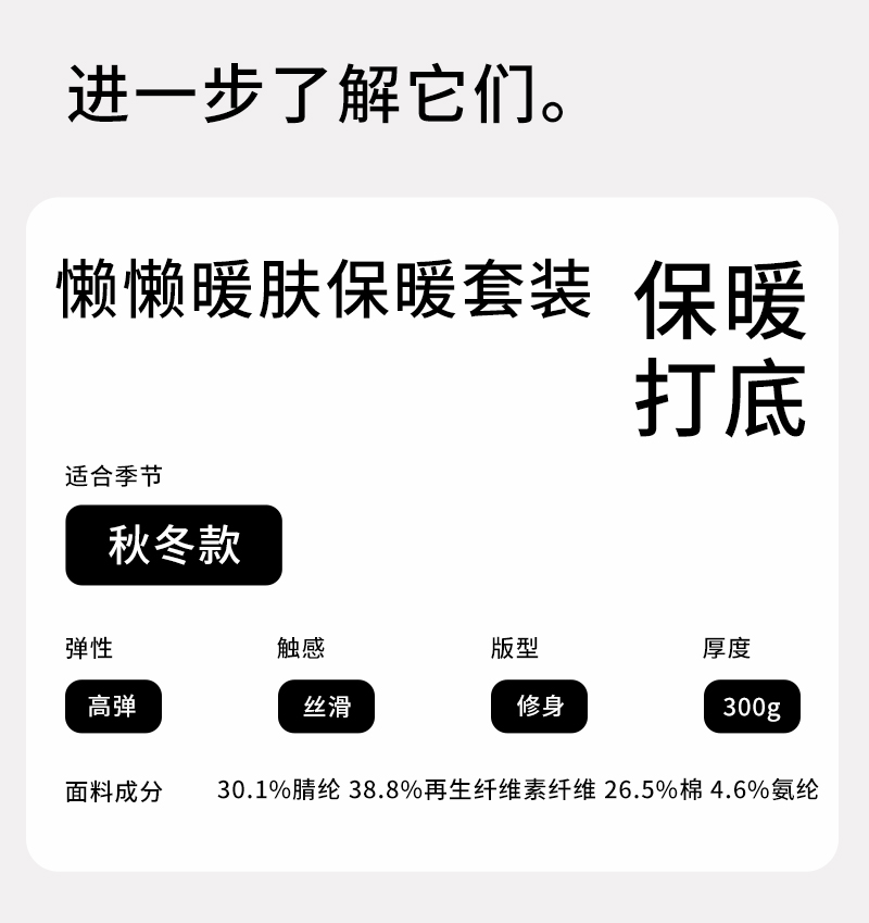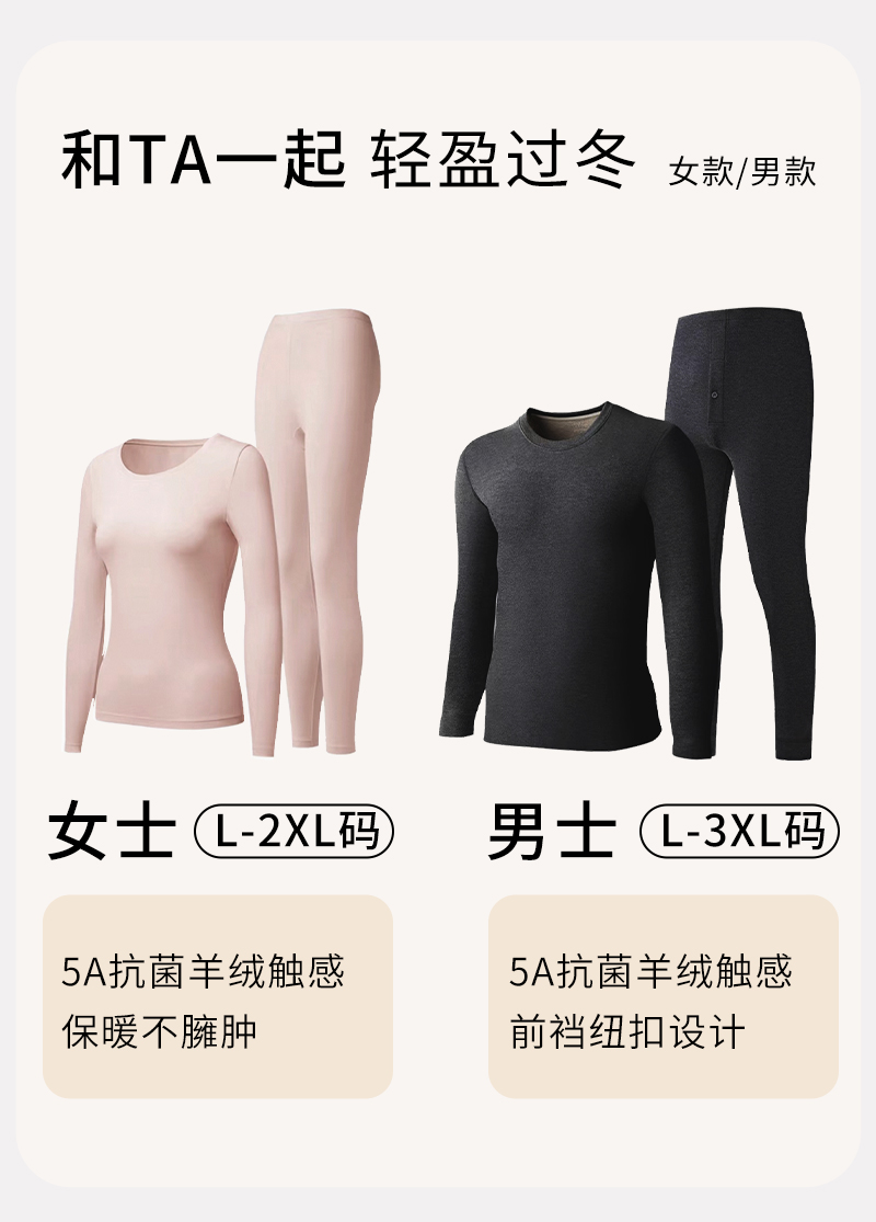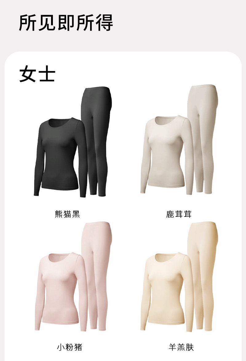 半醒懒懒暖肤女士保暖套装 无痕打底修身显瘦抗菌羊绒恒温 WA0007/WA0008