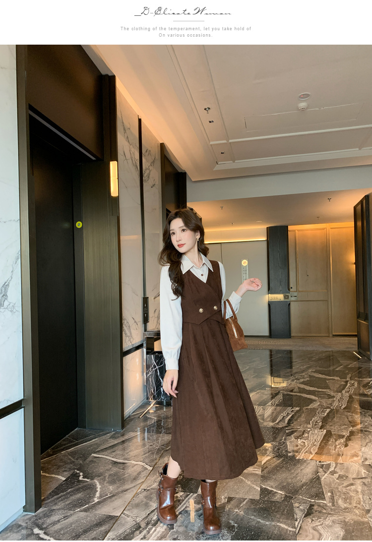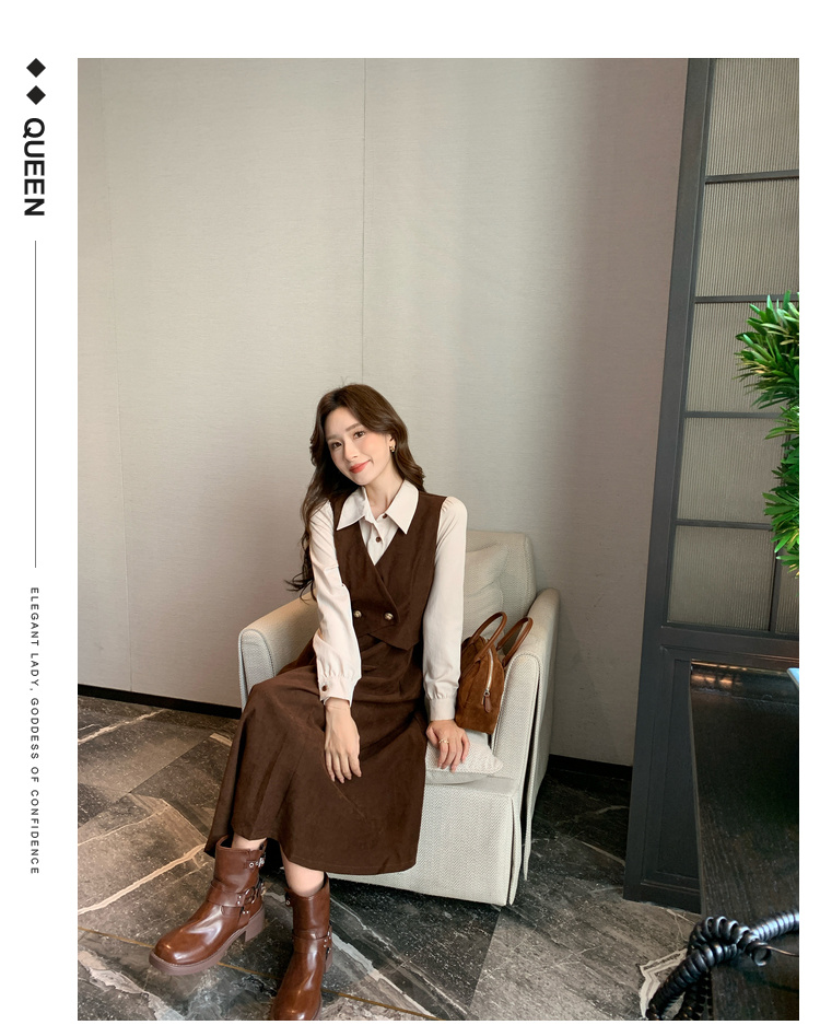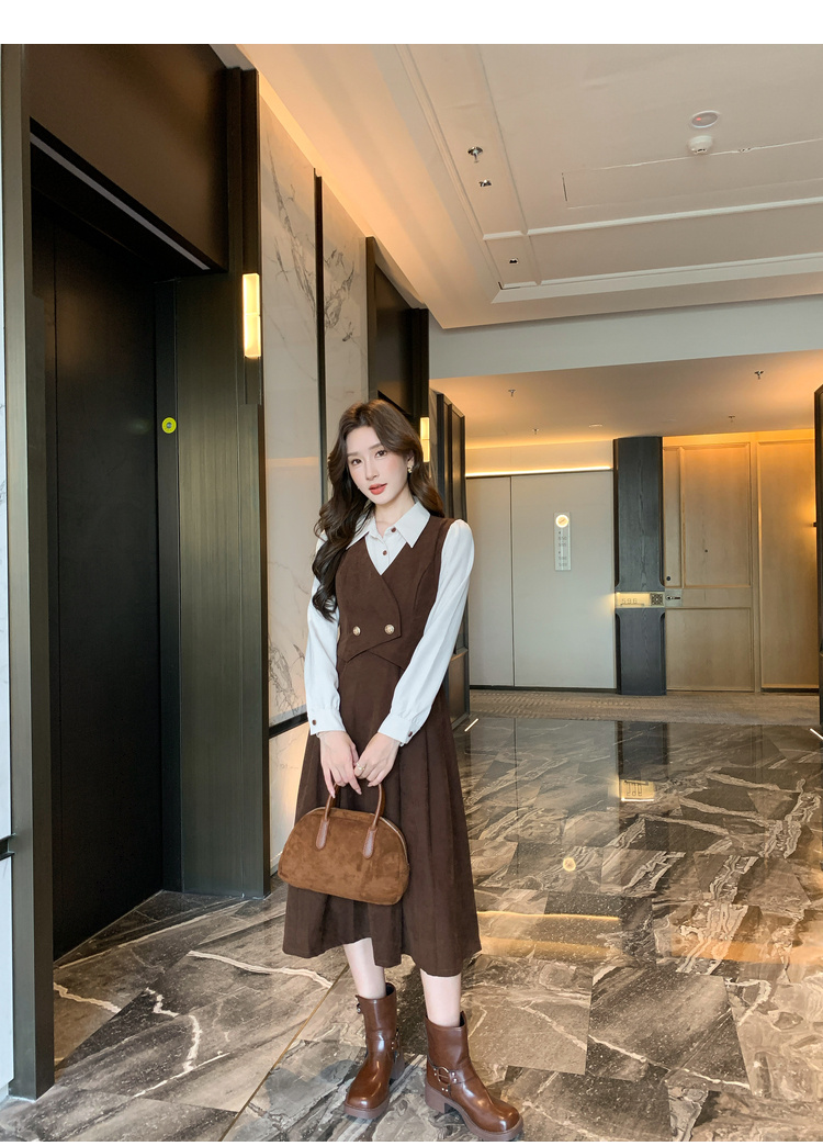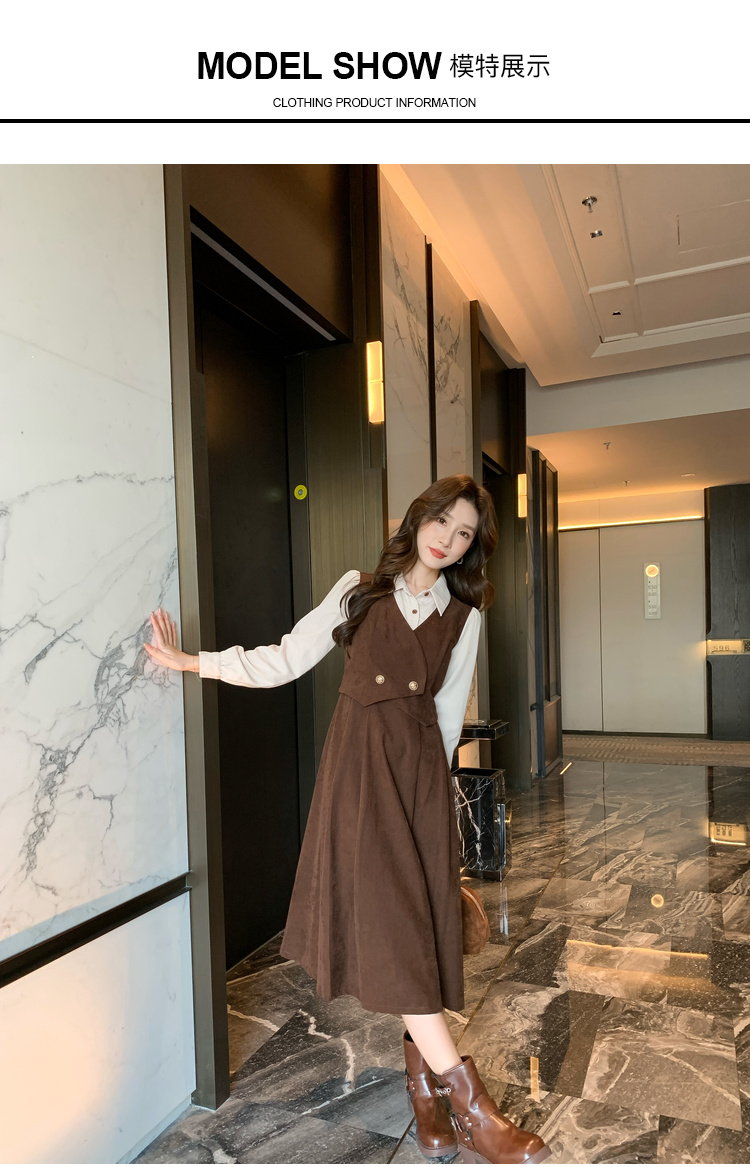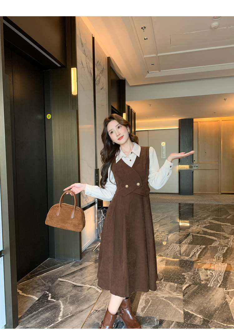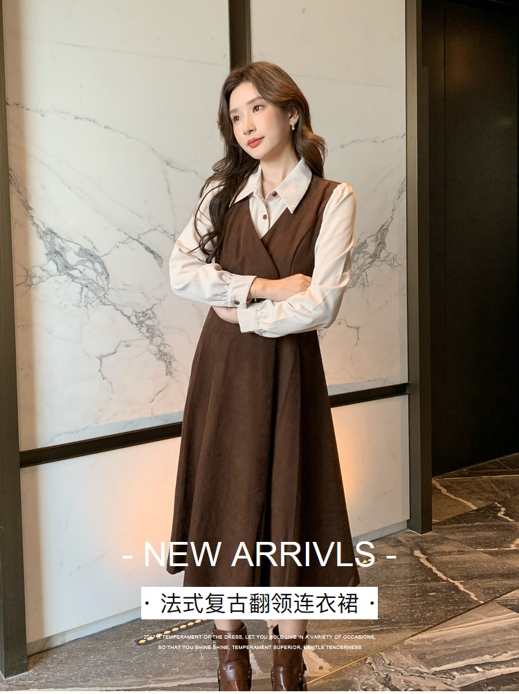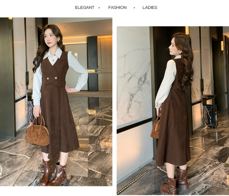奢姿2025春季新款大码女装法式裙子胖妹妹马甲背心假两件连衣裙9943855119