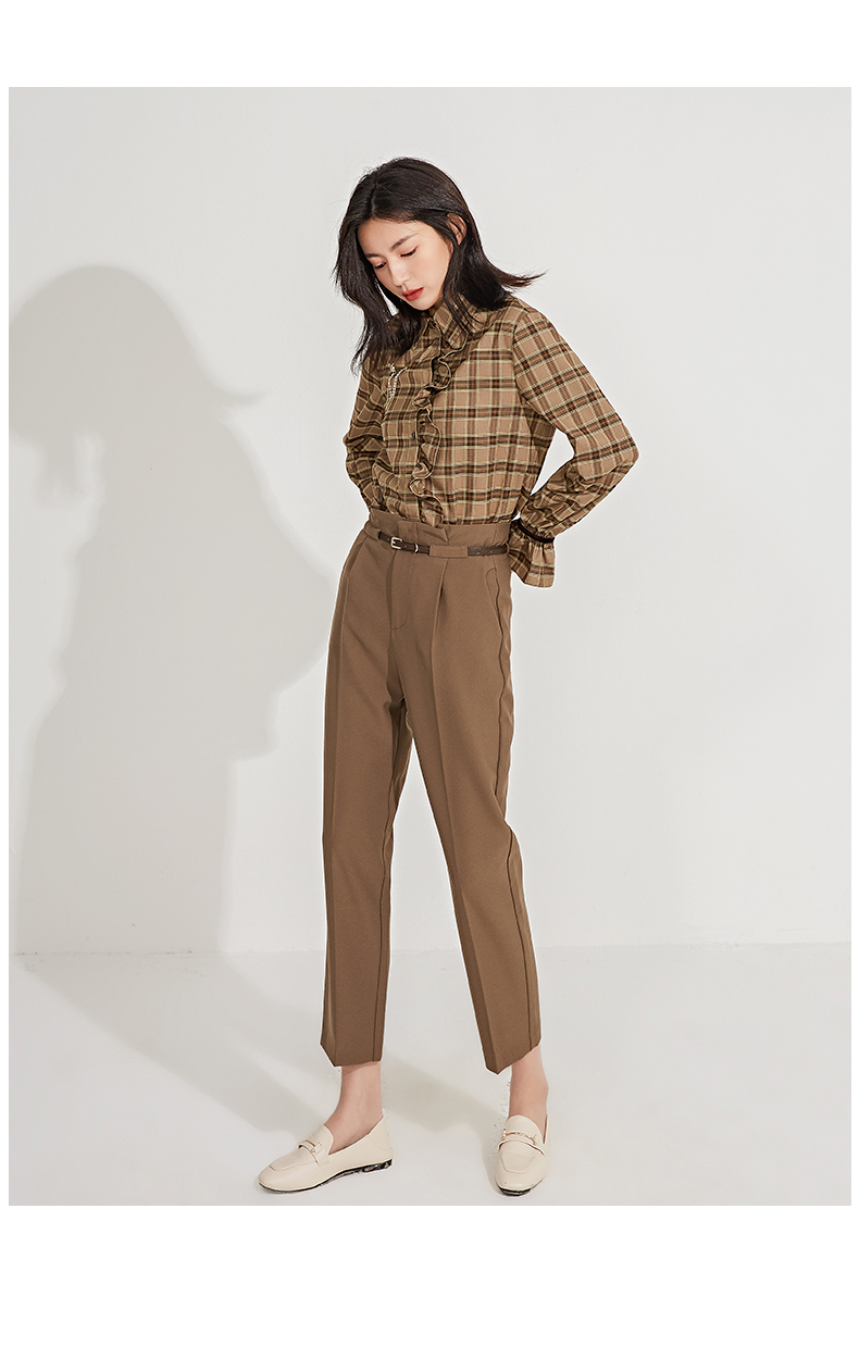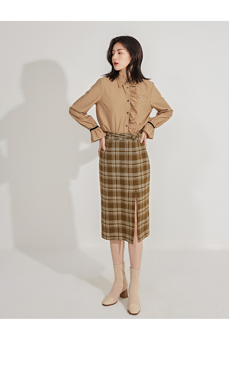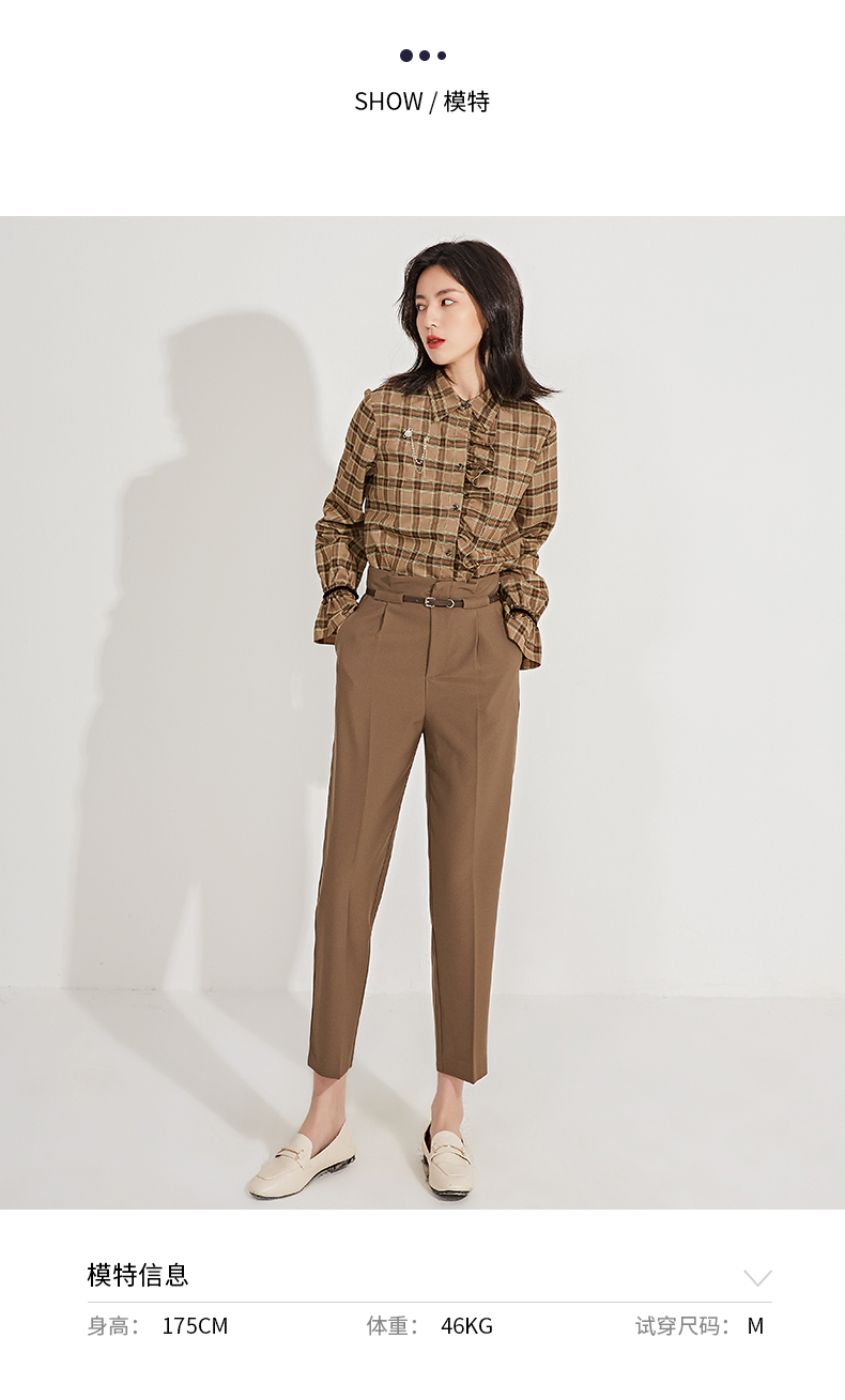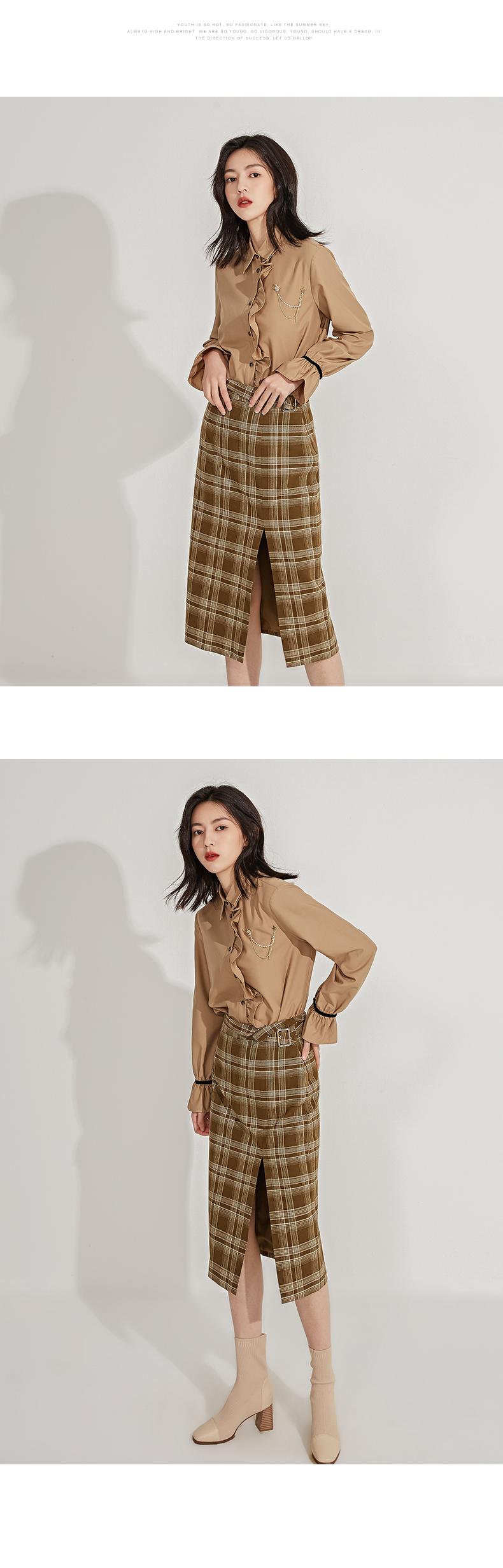 oldcolour春季新品格子复古气质花边门襟长袖衬衫女GN11013607