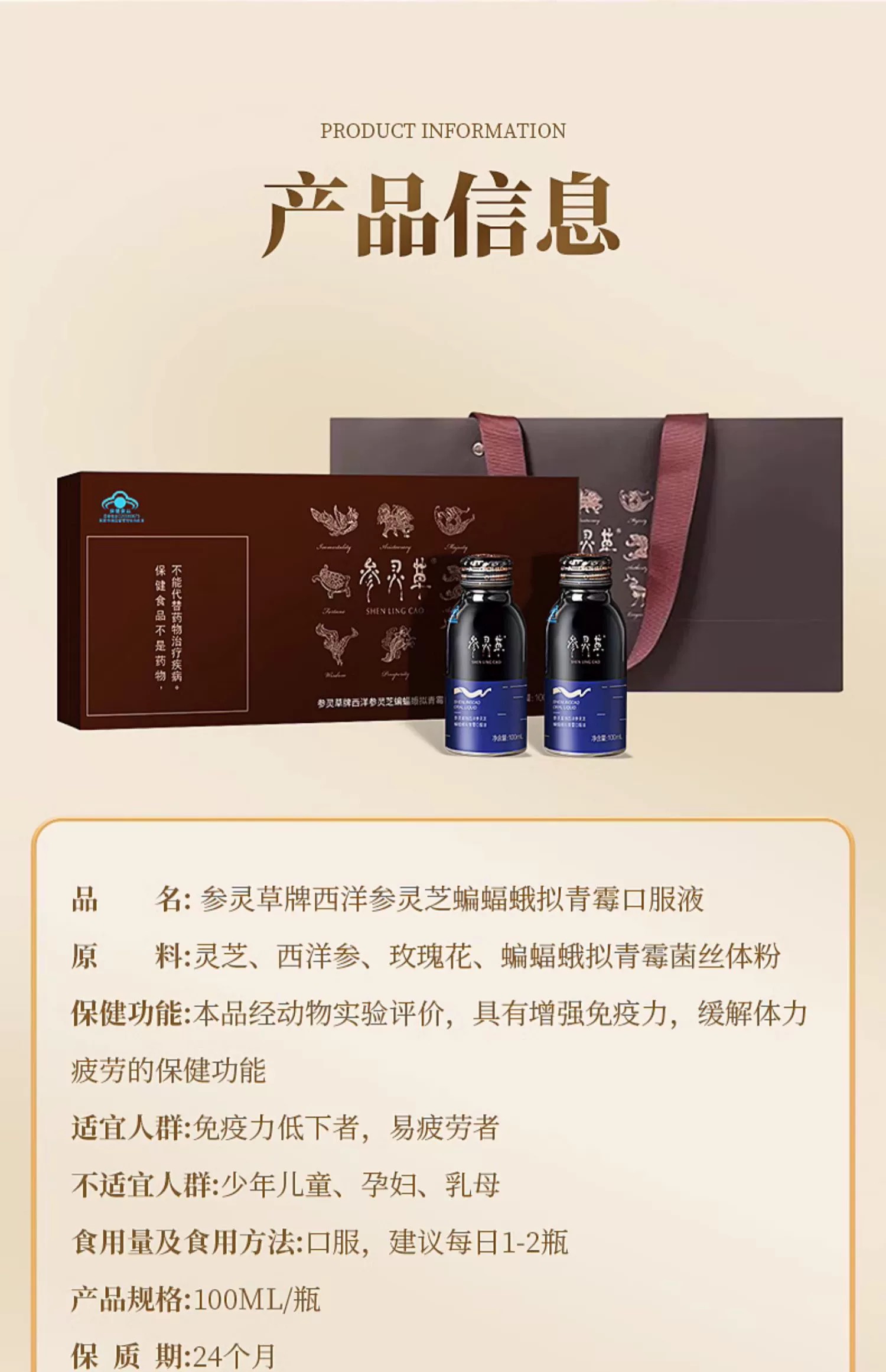 江中【参灵草】西洋参灵芝蝙蝠蛾拟青霉口服液5瓶冬虫夏草增强免疫力