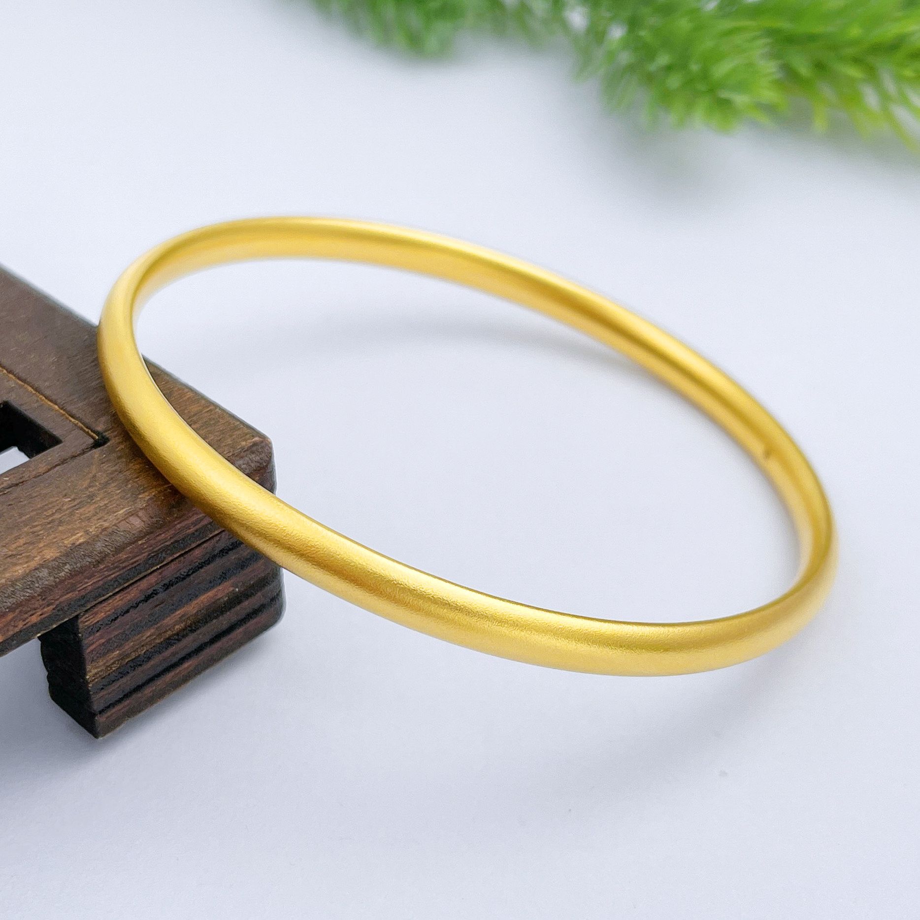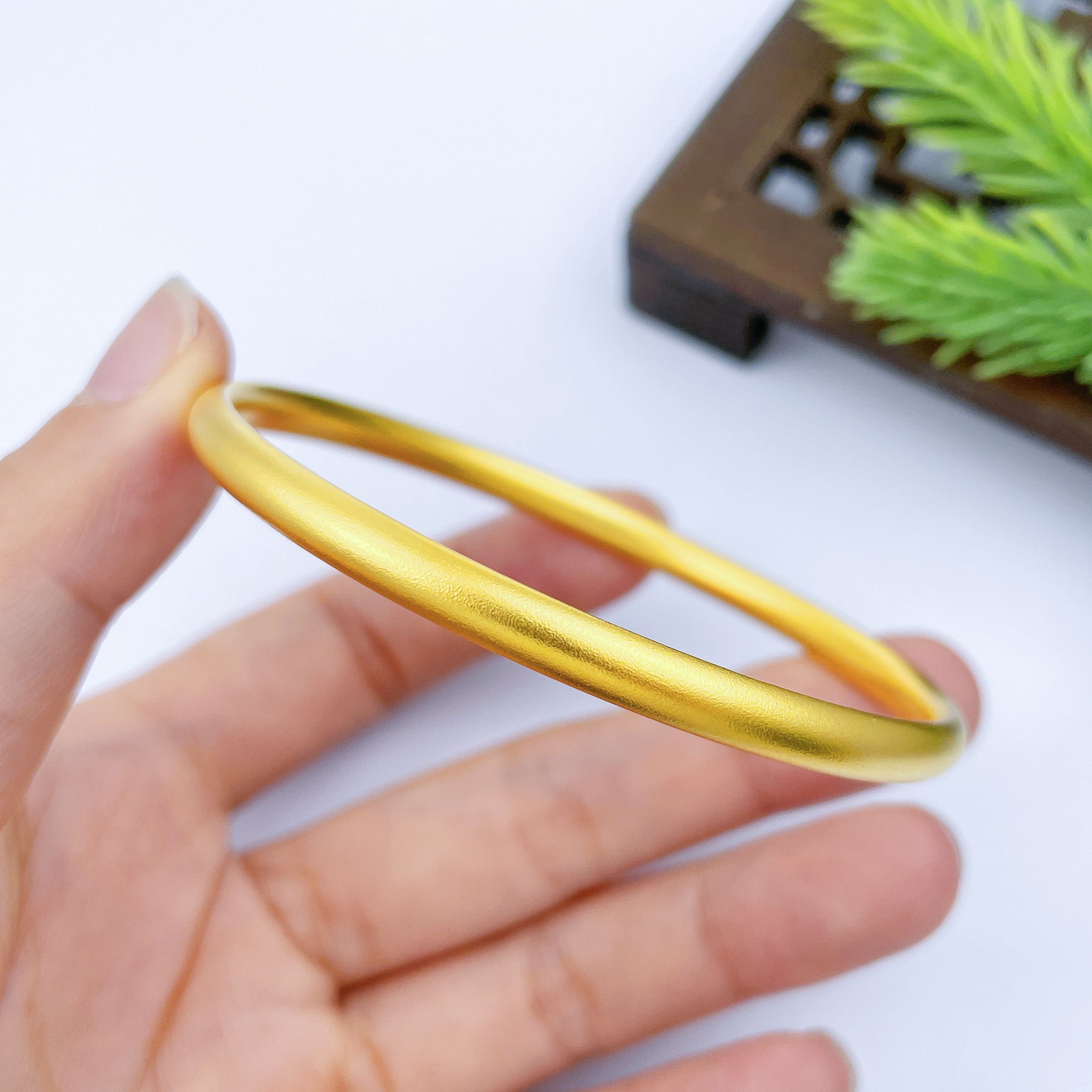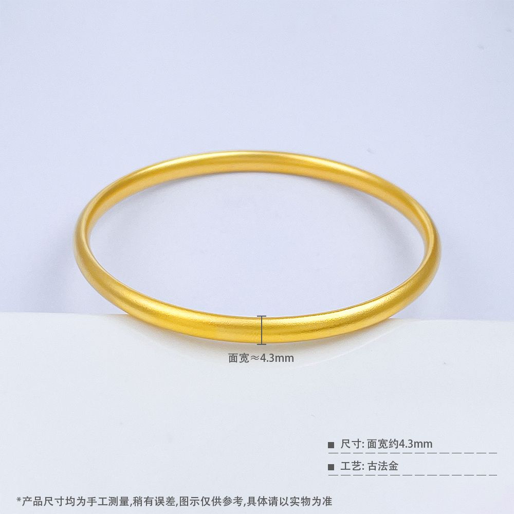 【限时克减150元】足金999.9 【油亮版本】古法半空心固口内平外弧素圈手镯光圈泥鳅背手镯(面宽约4.1-4.5mm)(AIGFSZ00438-3)(预售产品下单后不退款不退货不换货不补差价)