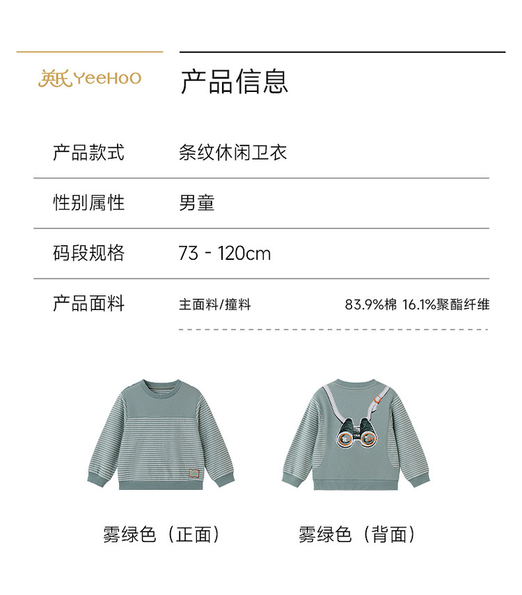 英氏童装儿童卫衣男宝宝圆领春秋新款休闲条纹上衣YREAJ1S050A