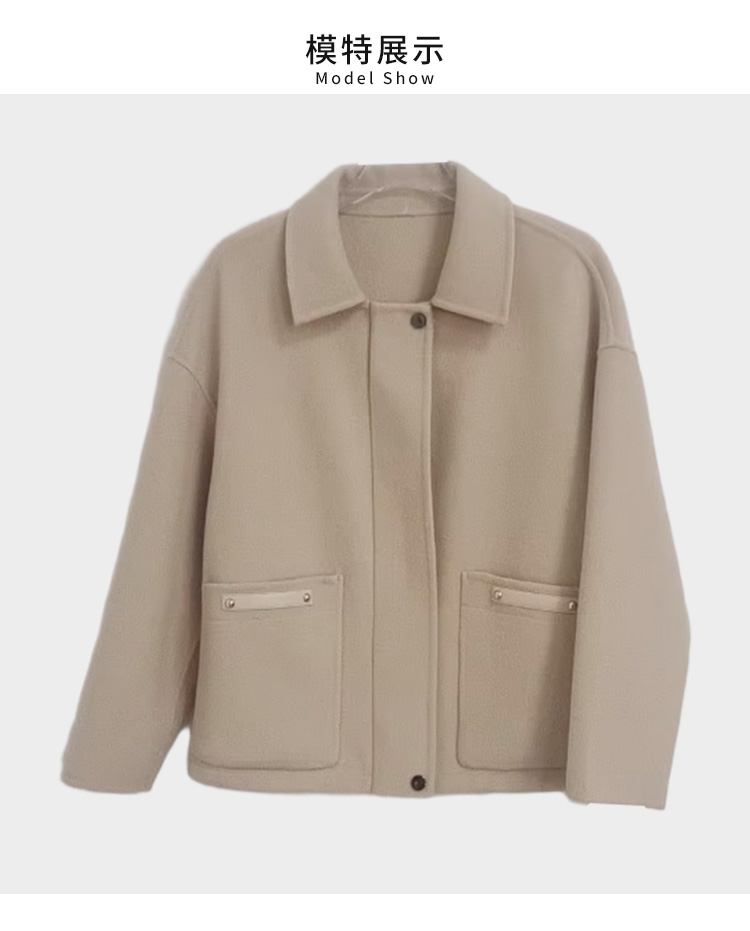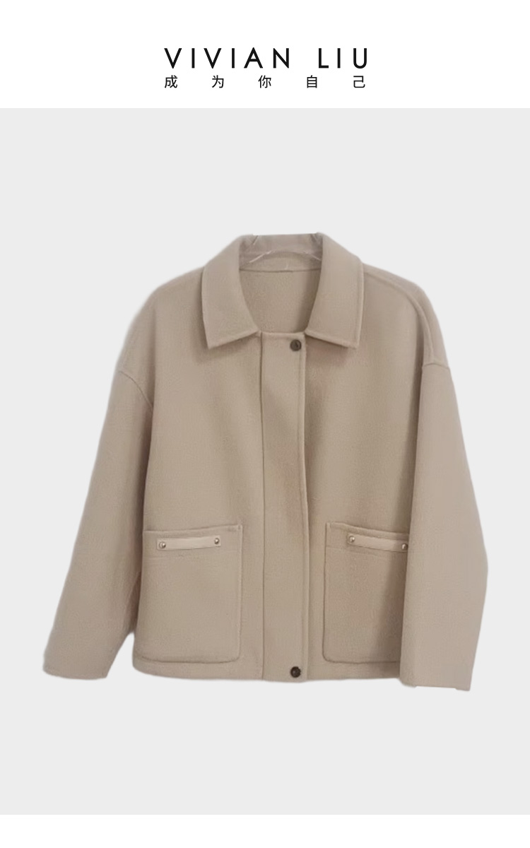 VIVIAN LIU薇薇安刘A2559302秋季女装新款小翻领拉链短款羊毛外套