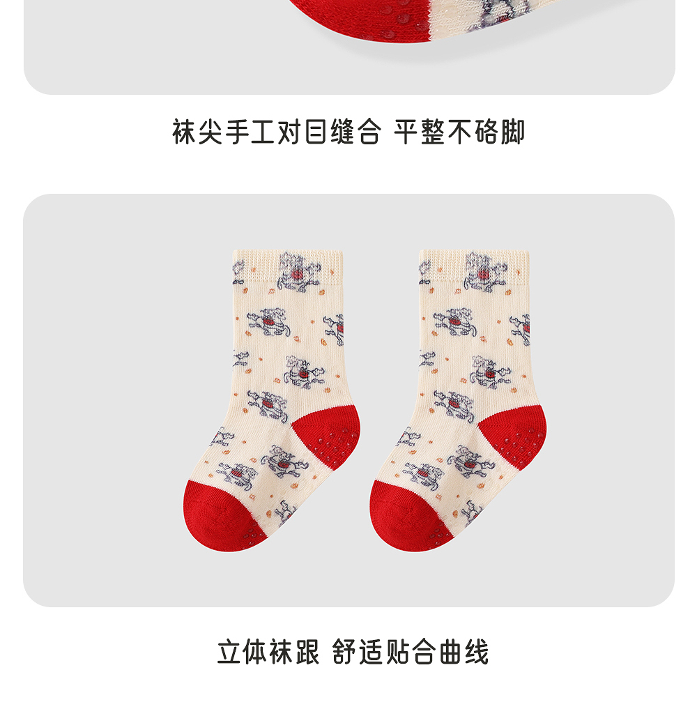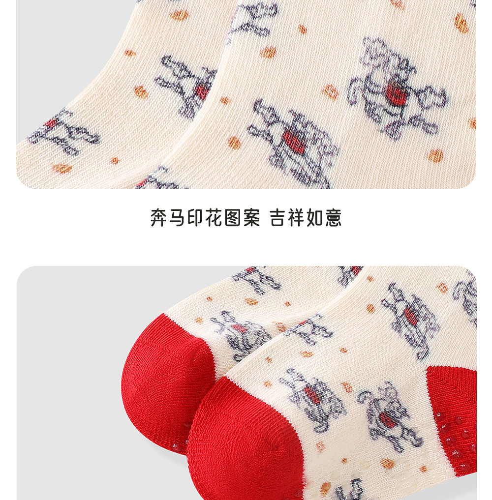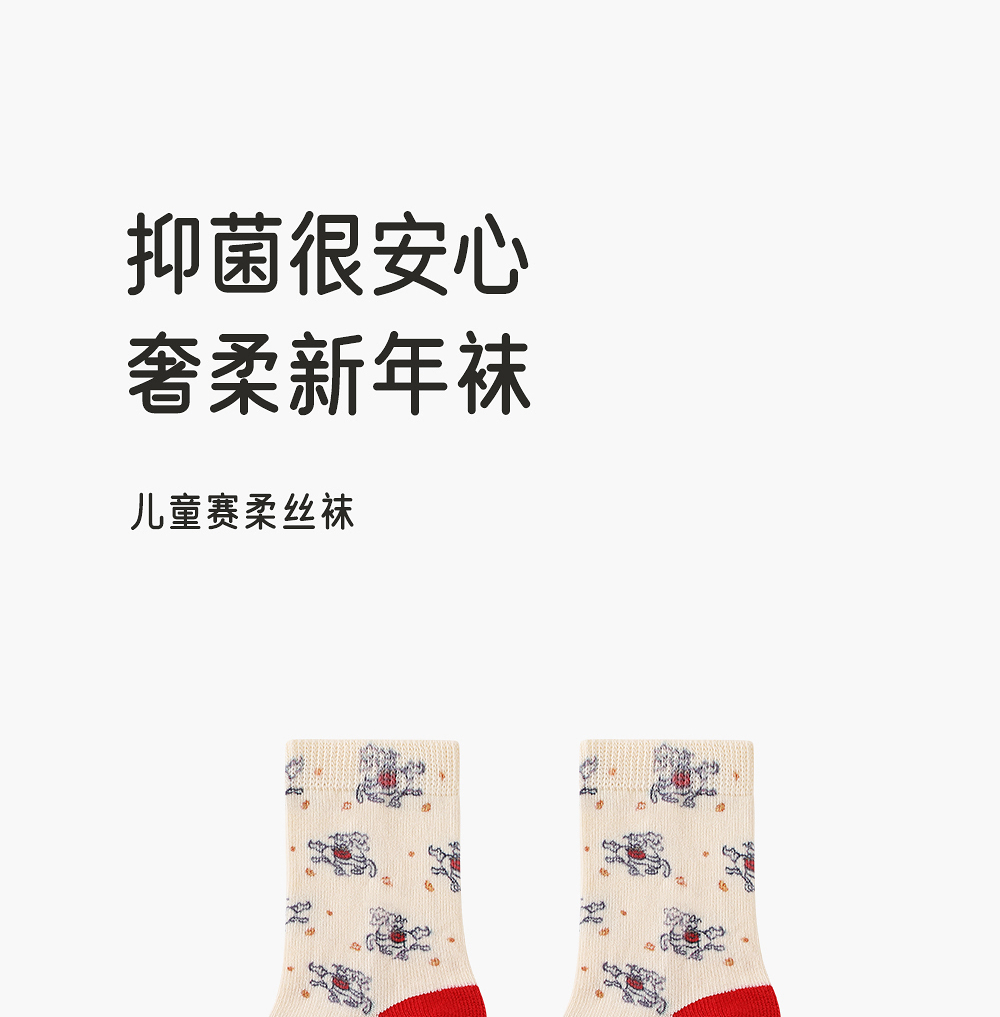 英氏婴儿袜子赛柔丝7A抗菌男女儿童喜庆新年红色新款YIWCJ0R161A