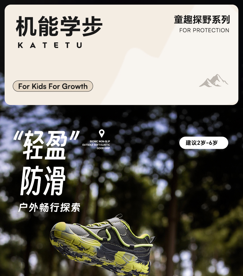 卡特兔儿童户外运动鞋登山鞋2025秋季新款软底防滑网面透气跑步鞋 商品图2