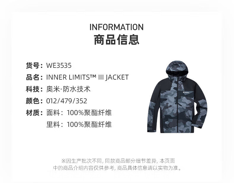 【大牌4.5折秒杀】Columbia哥伦比亚冲锋衣男秋冬户外防水耐磨单层连帽外套WE3535