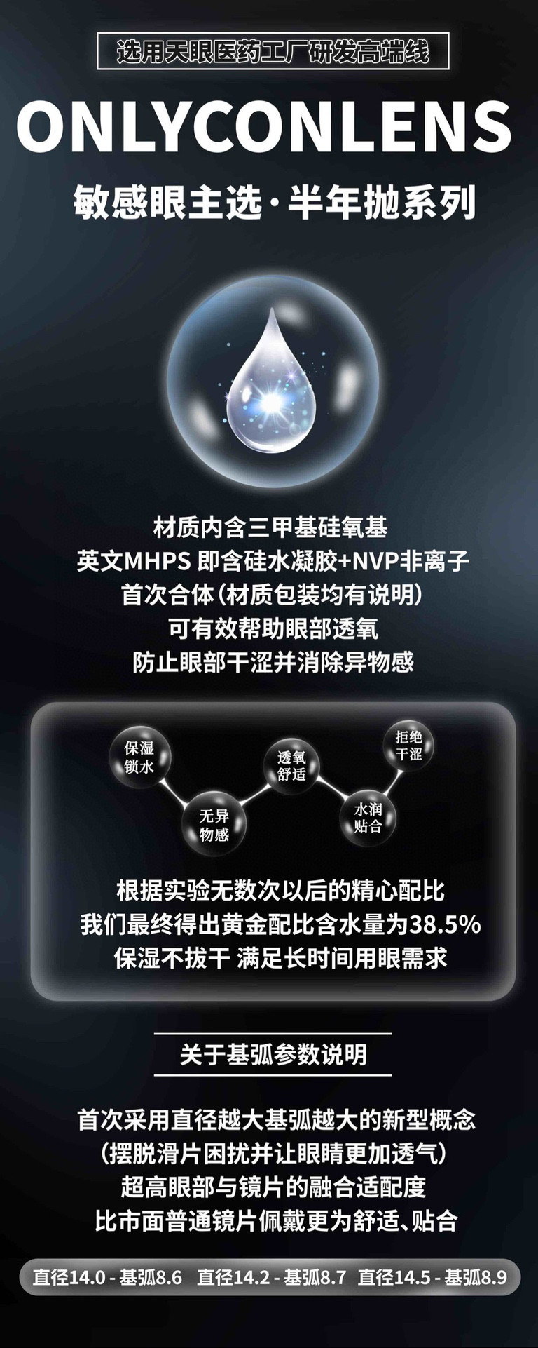 【半年抛】Onlycon 含硅(水凝胶)+非离子材质 活动 88一副 108两副 128三副 158四副 188六副