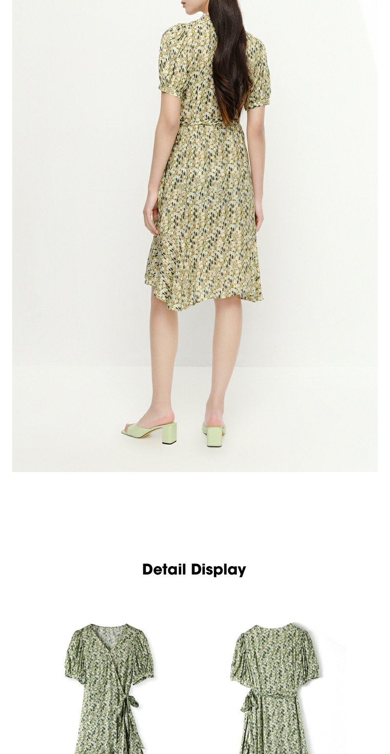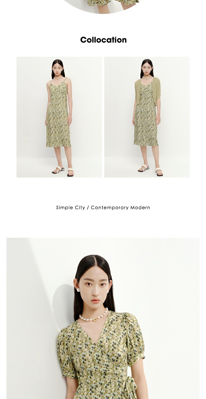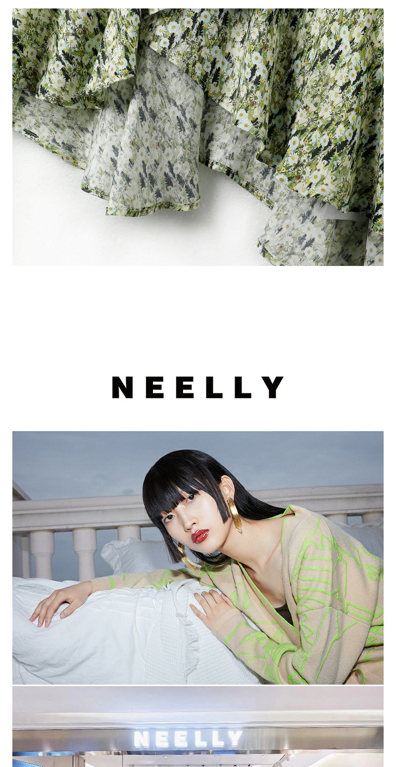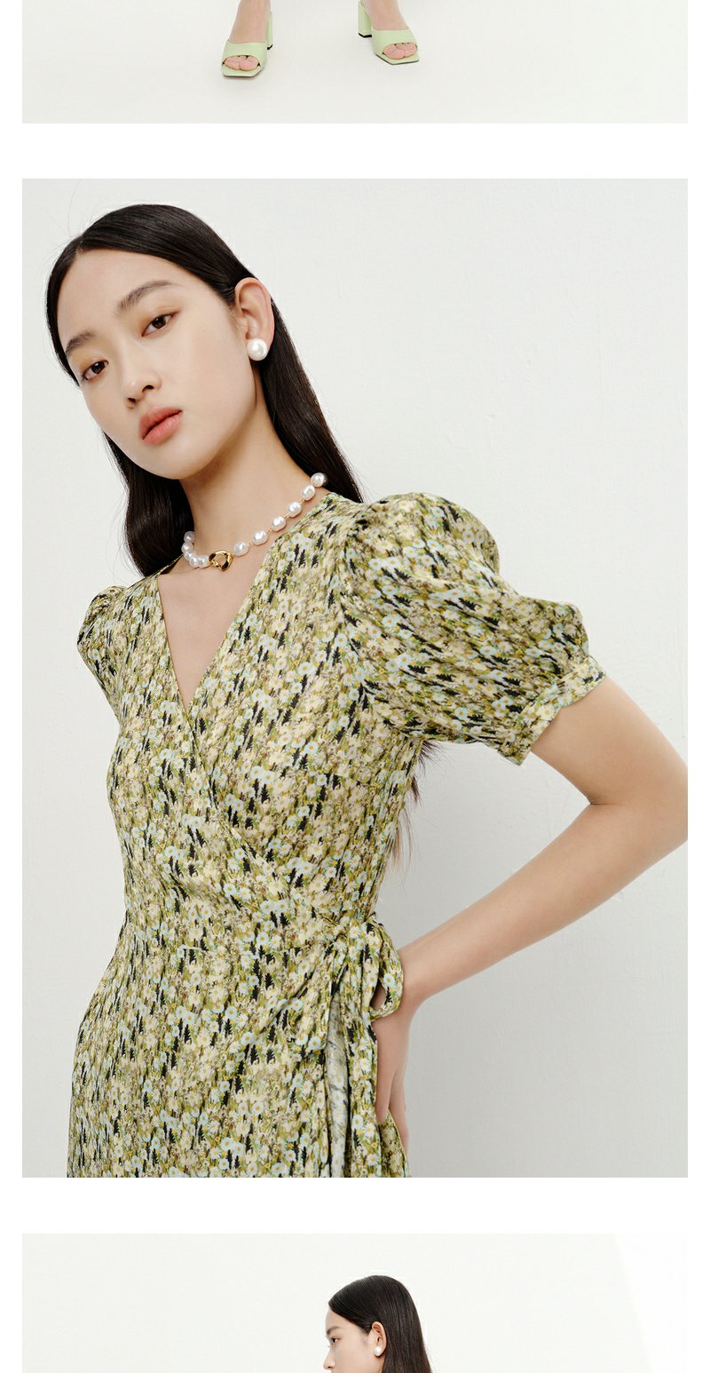 NEELLY纳俪商场同款V领泡泡袖碎花连衣裙女系带收腰不规则A字裙N23051Y01125