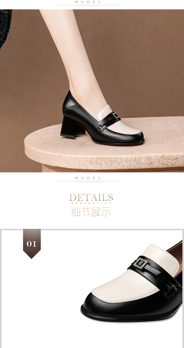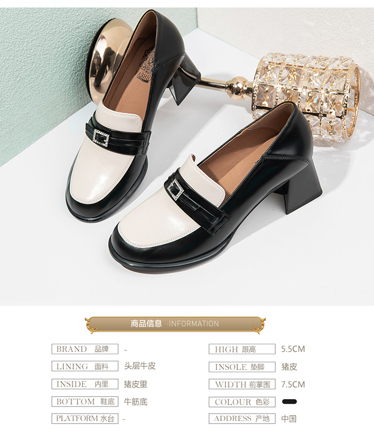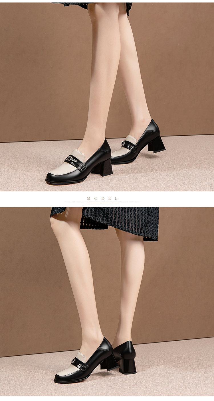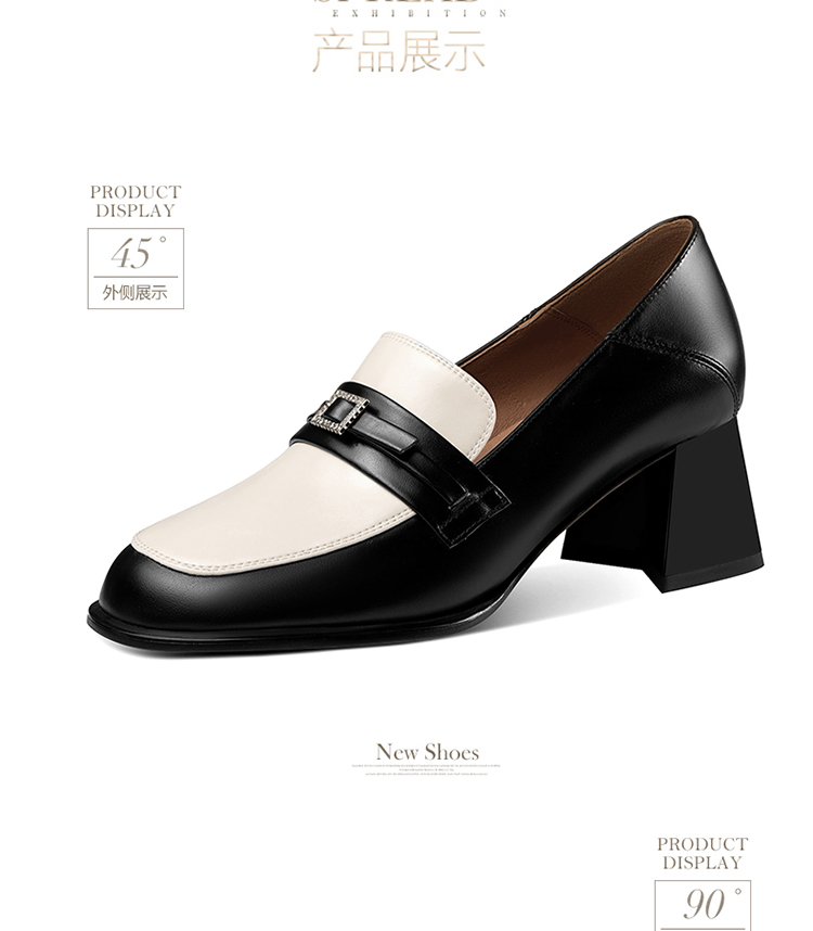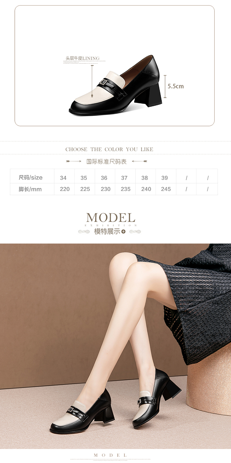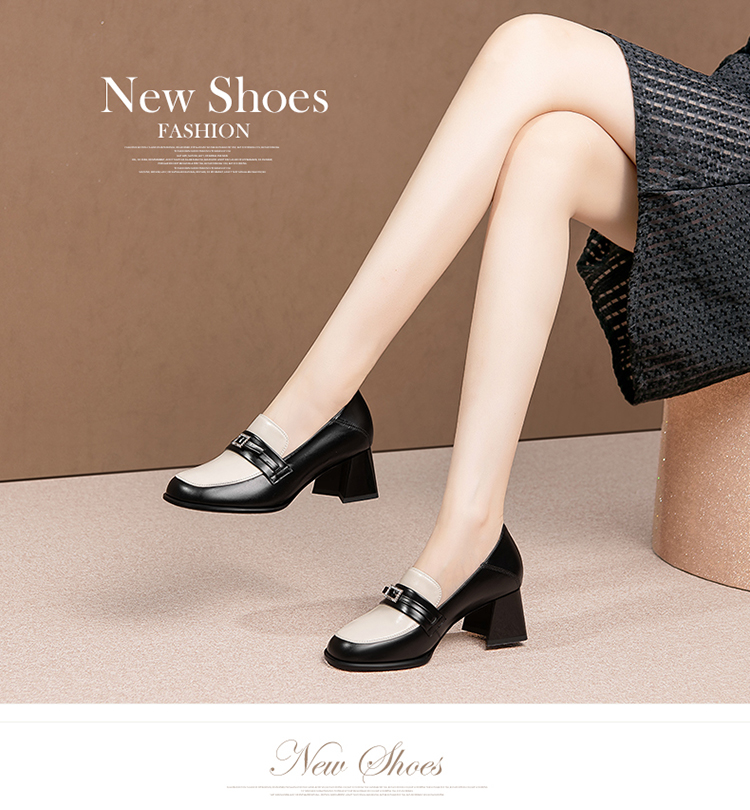 日常百搭,拼色粗跟浅口单鞋HY-H3210