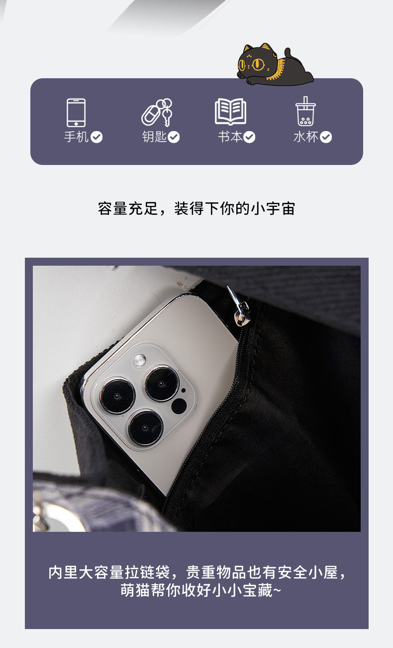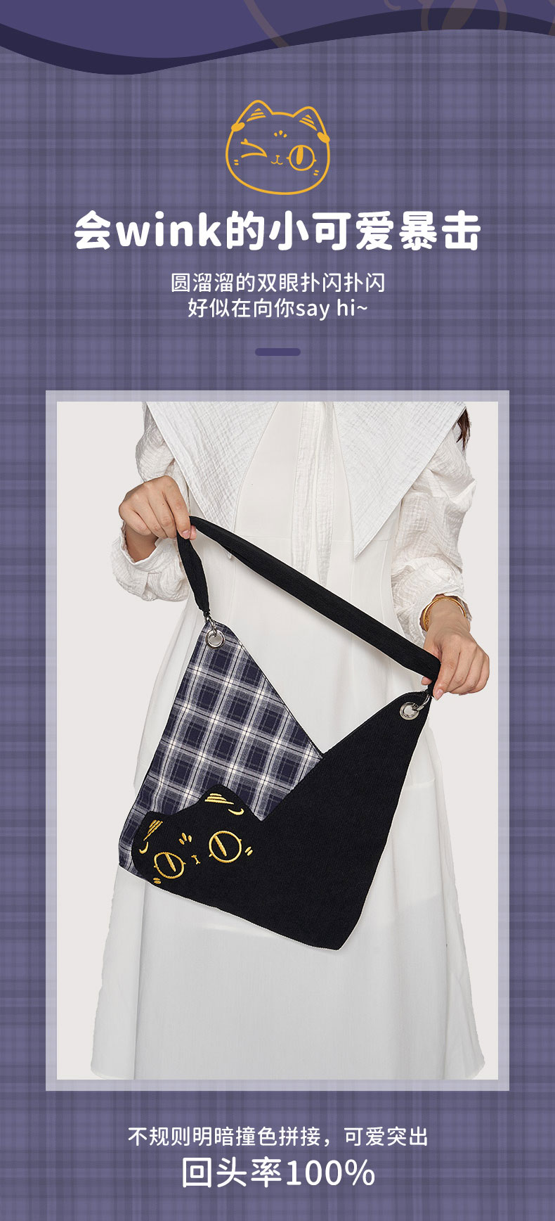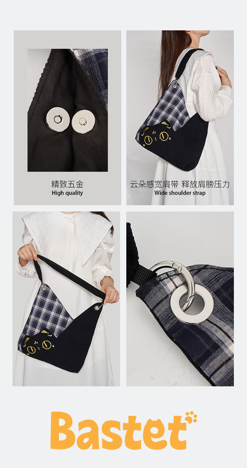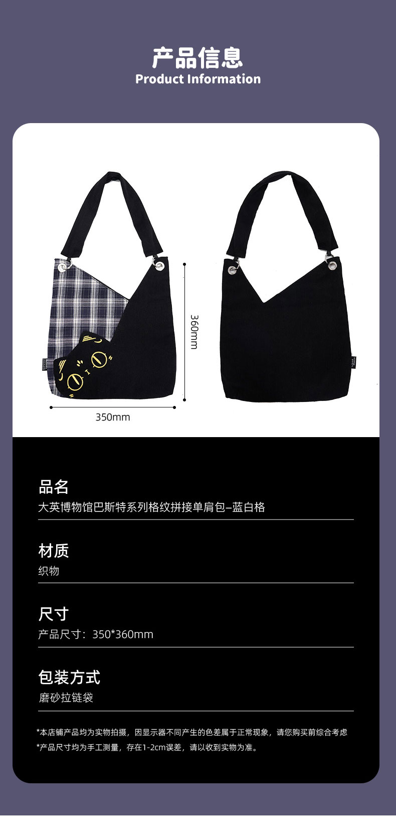 大英博物馆 巴斯特系列 格纹拼接单肩包 蓝白格
