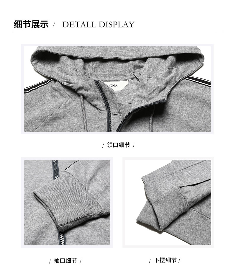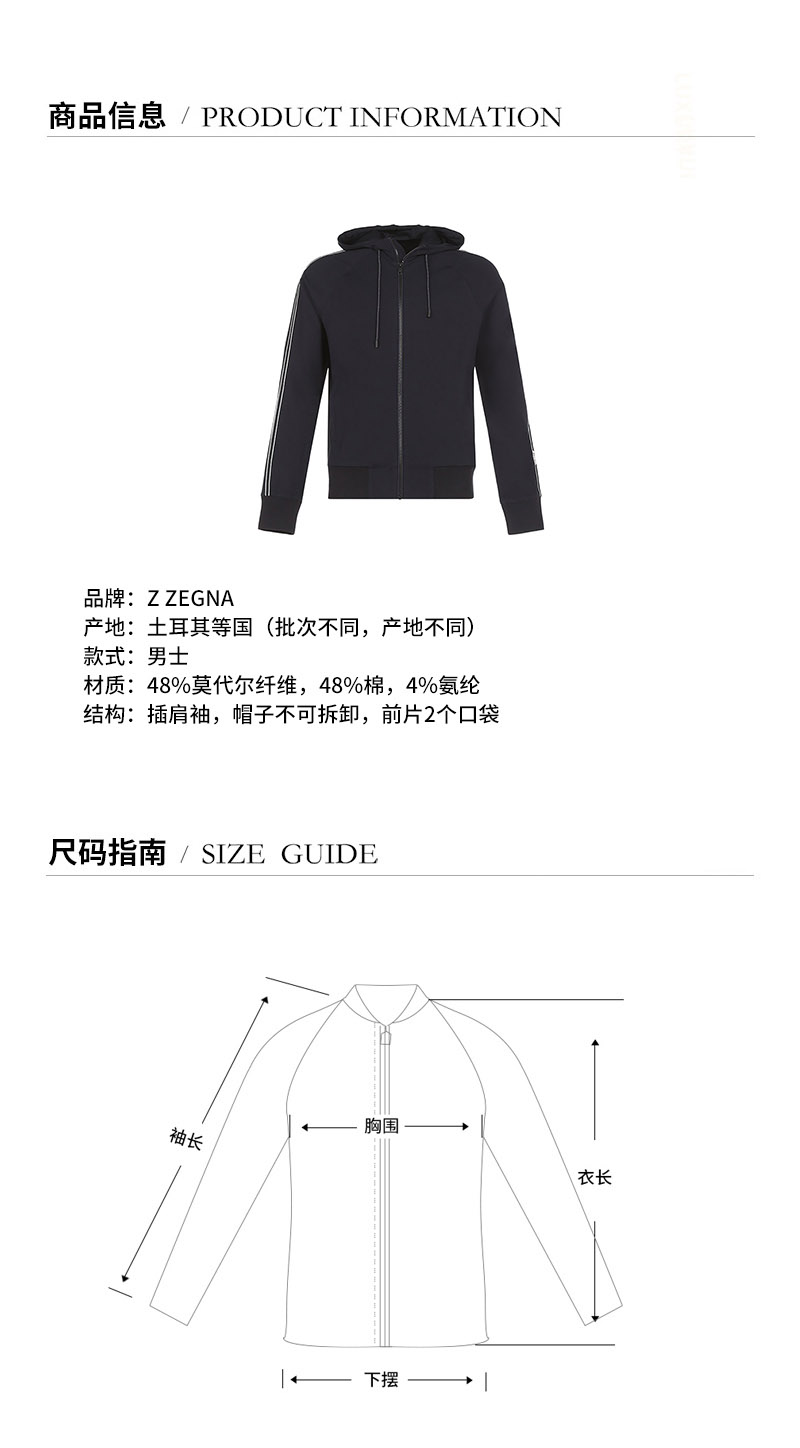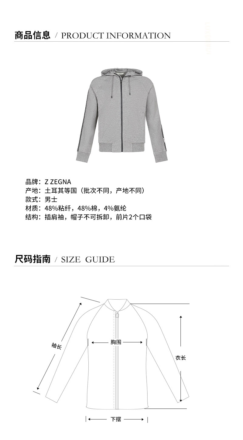 Z ZEGNA/杰尼亚 男卫衣 男士莫代尔纤维/棉连帽卫衣运动衫上衣外套 VY451 ZZ869