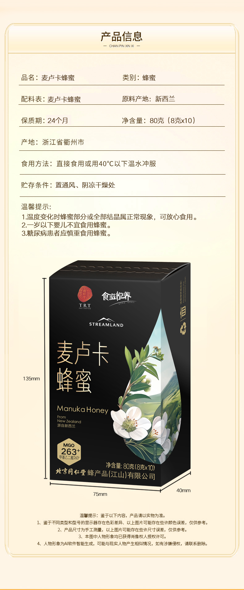 同仁堂麦卢卡蜂蜜8克*10袋/盒