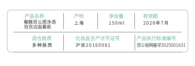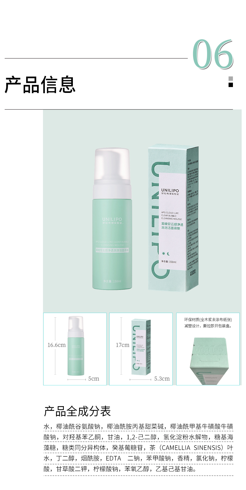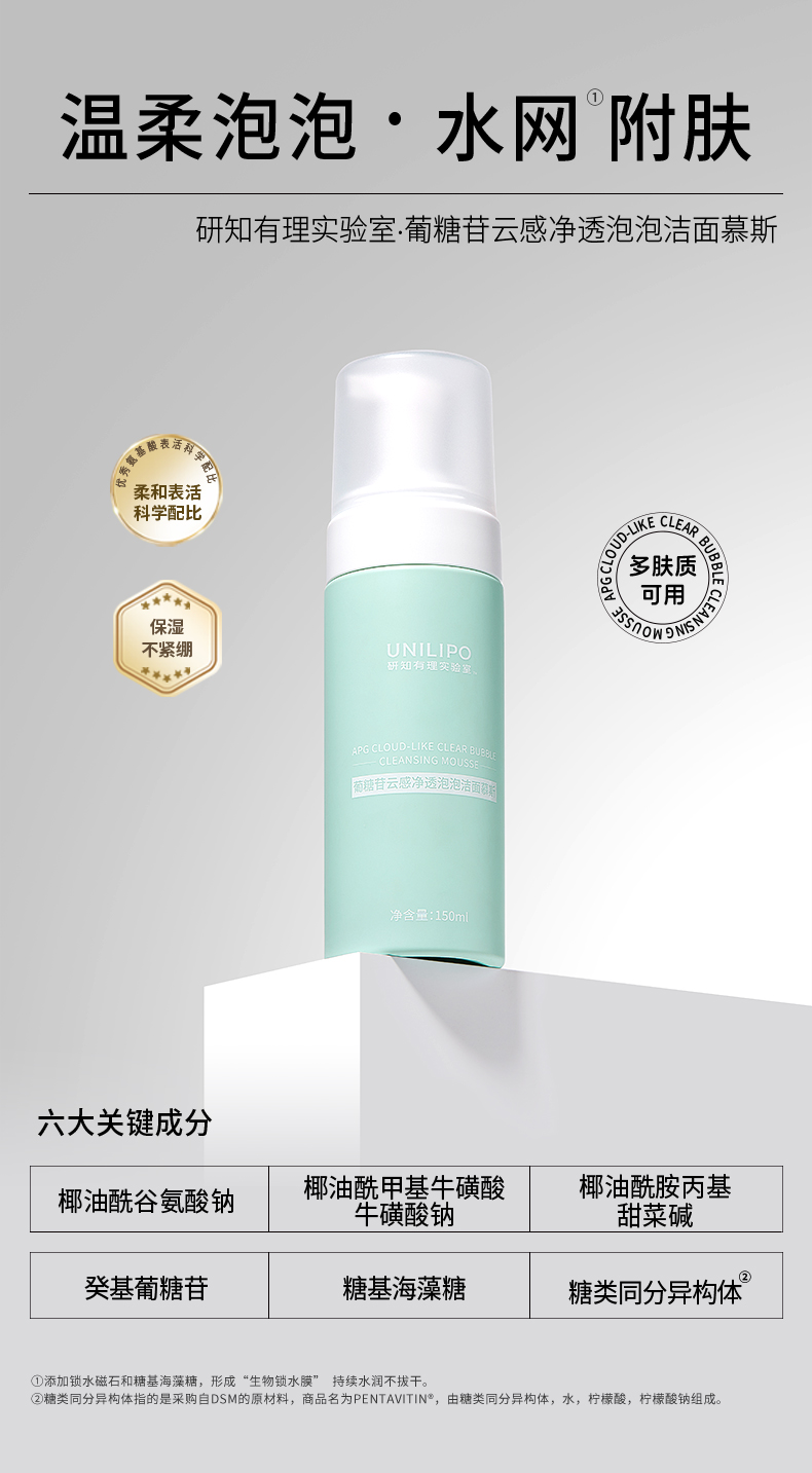 【新版】UNILIPO研知有理 葡糖苷云感净透泡泡洁面慕斯 150ml
