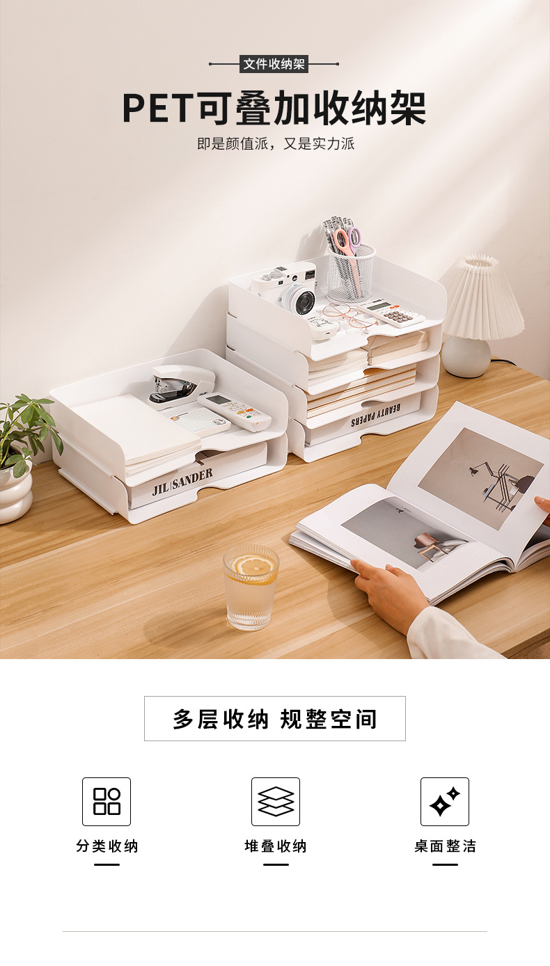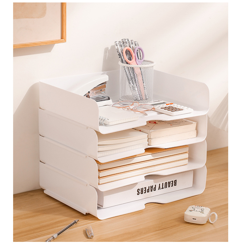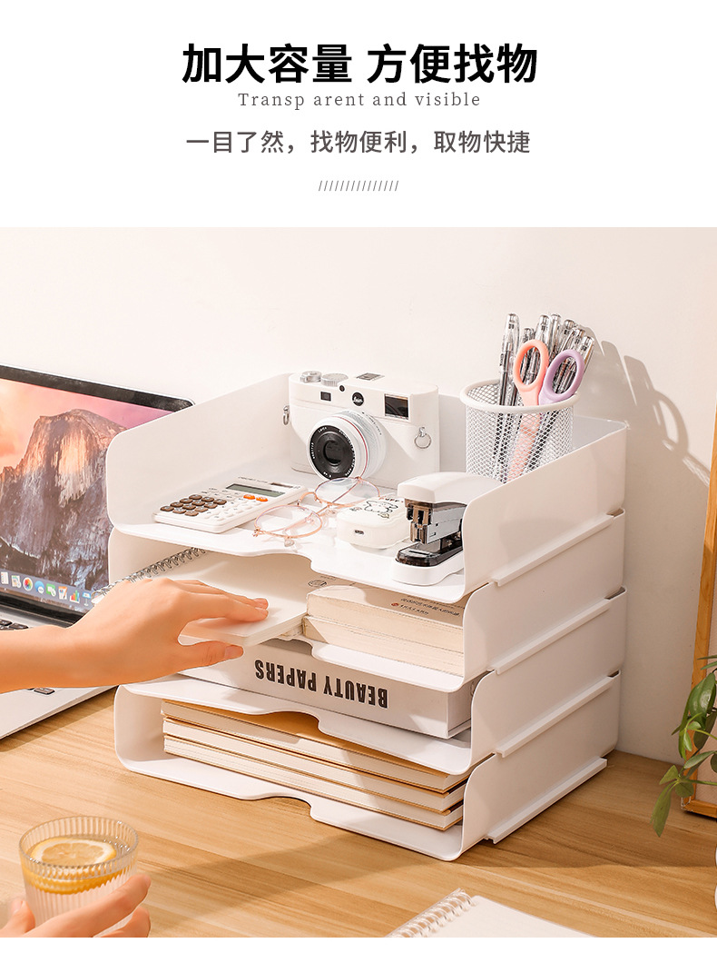 【开学学生党必备收纳好物】桌面收纳盒,文具杂物a4纸凭证收纳,办公室书桌文件多层置物架-QQ