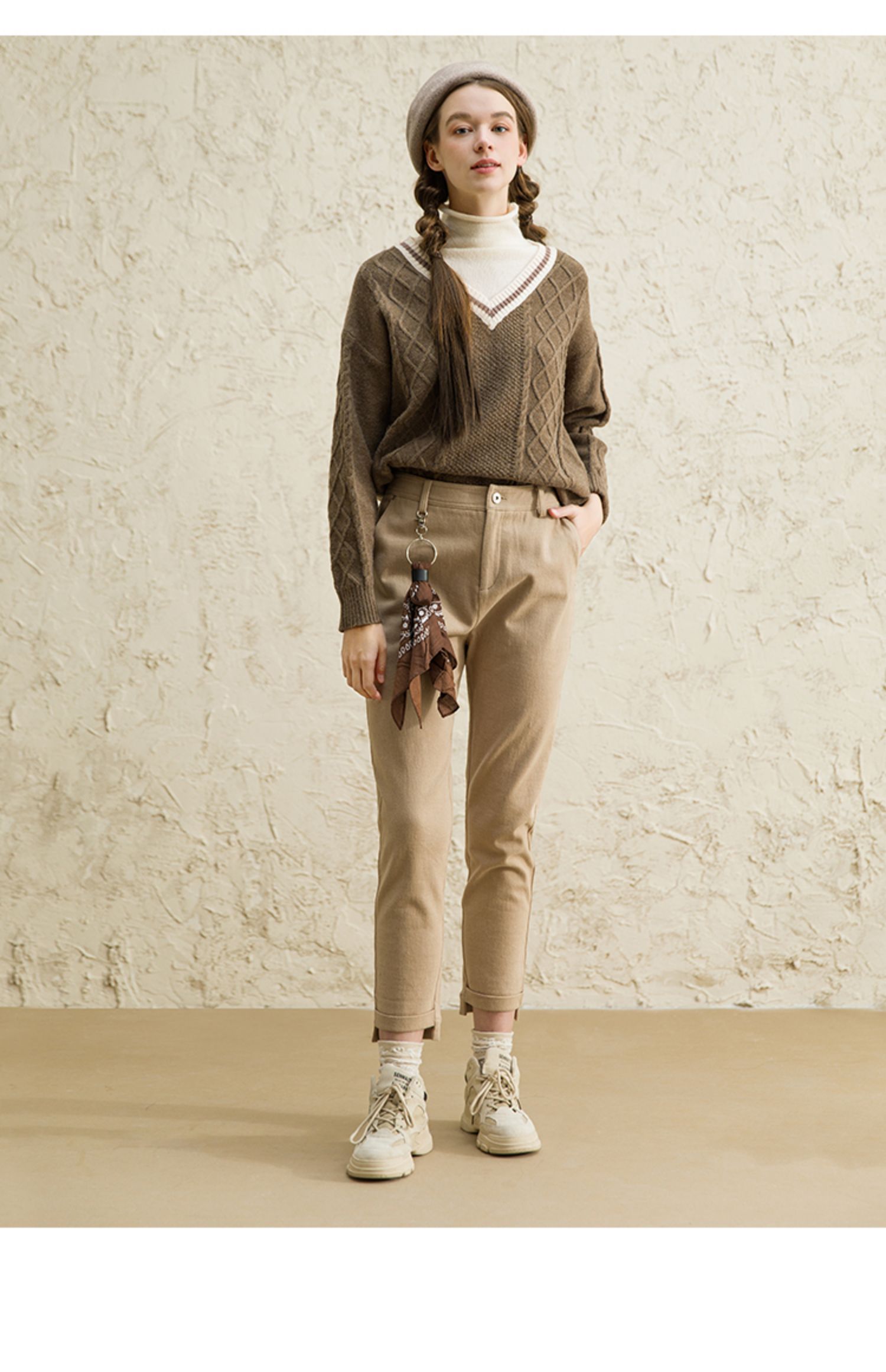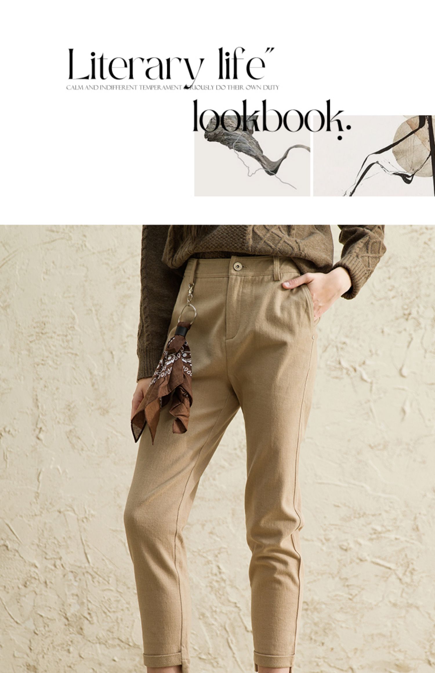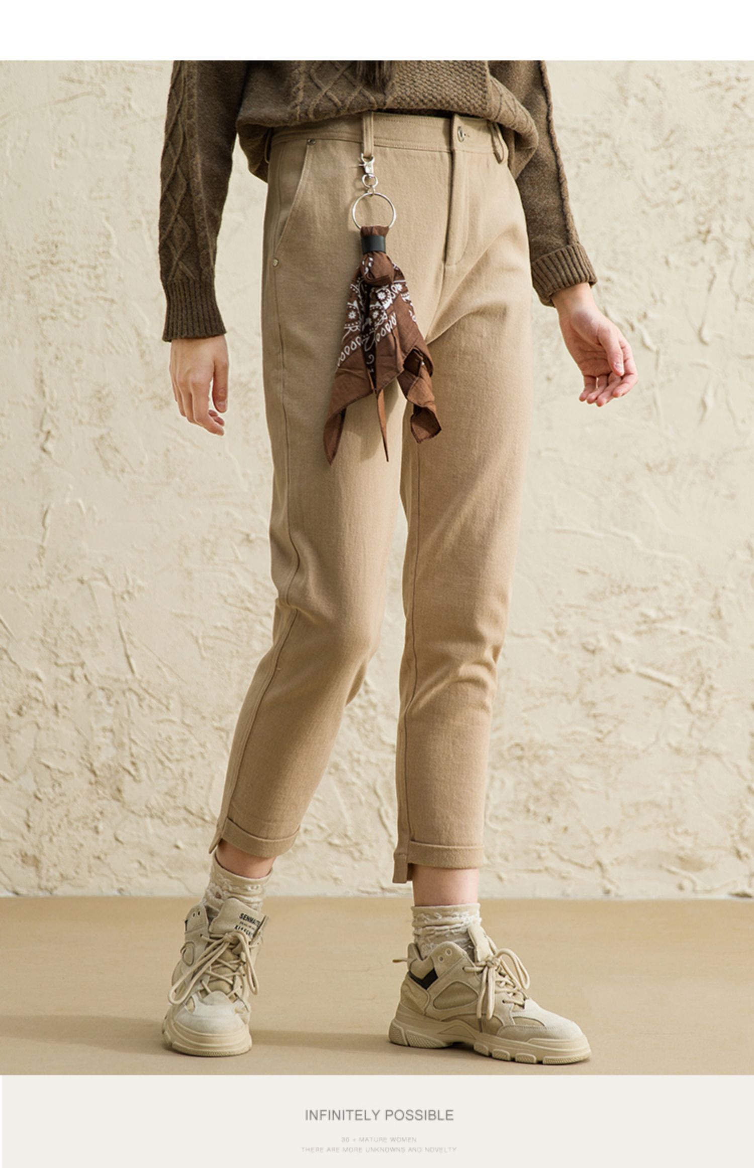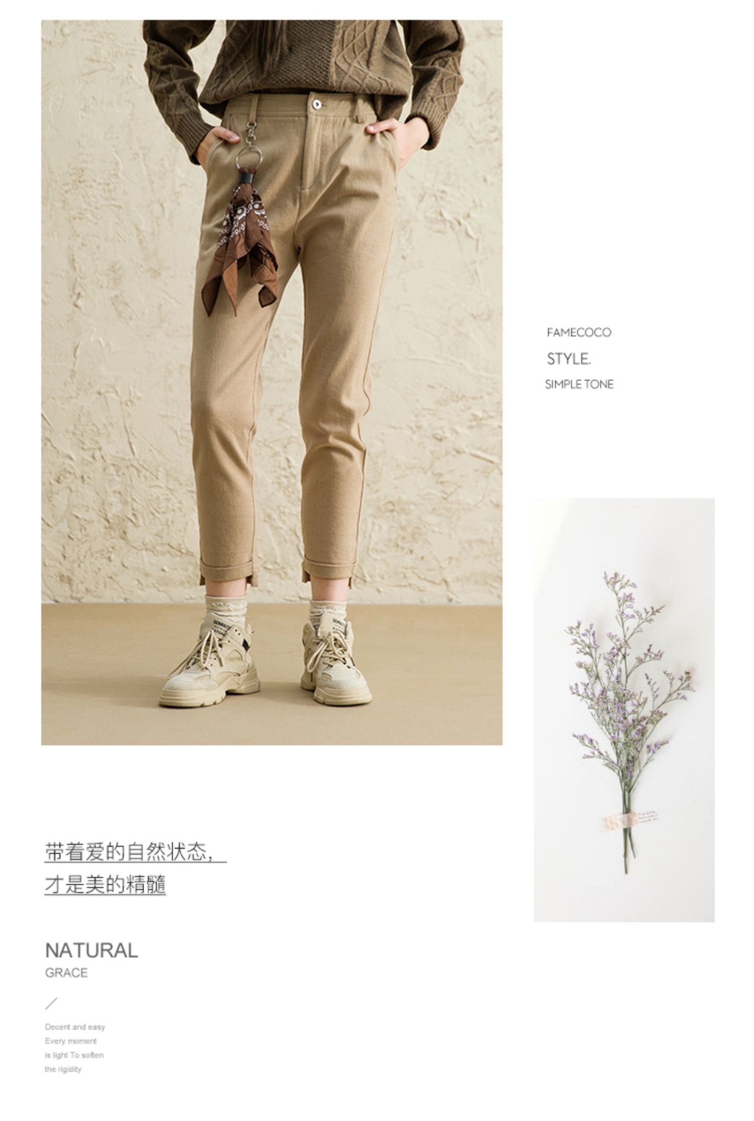 Famecoco范可儿显瘦裤子女宽松直筒运动裤休闲裤F198GA021