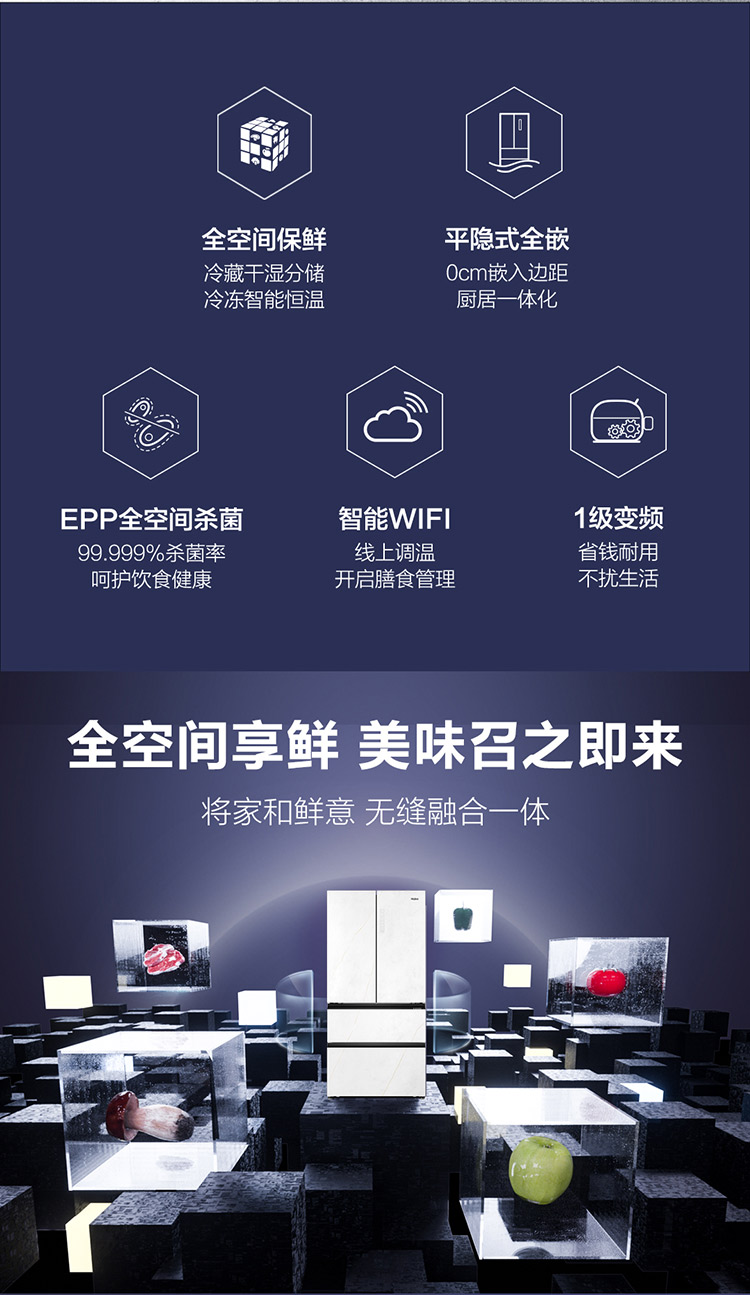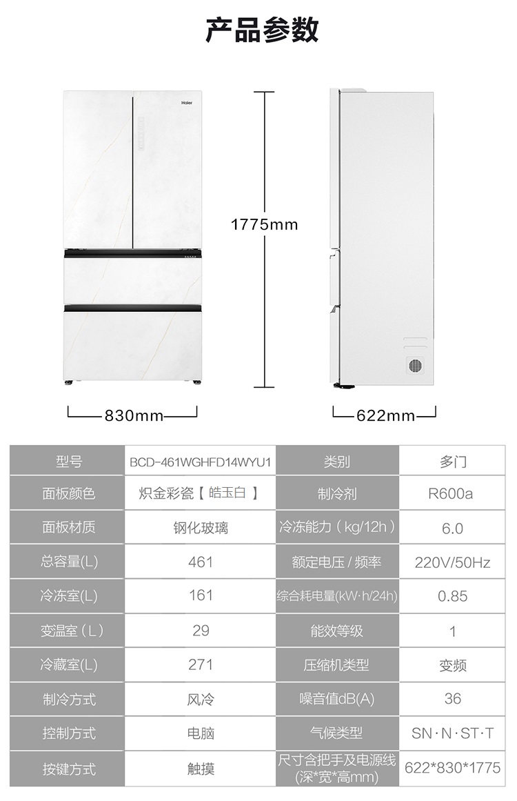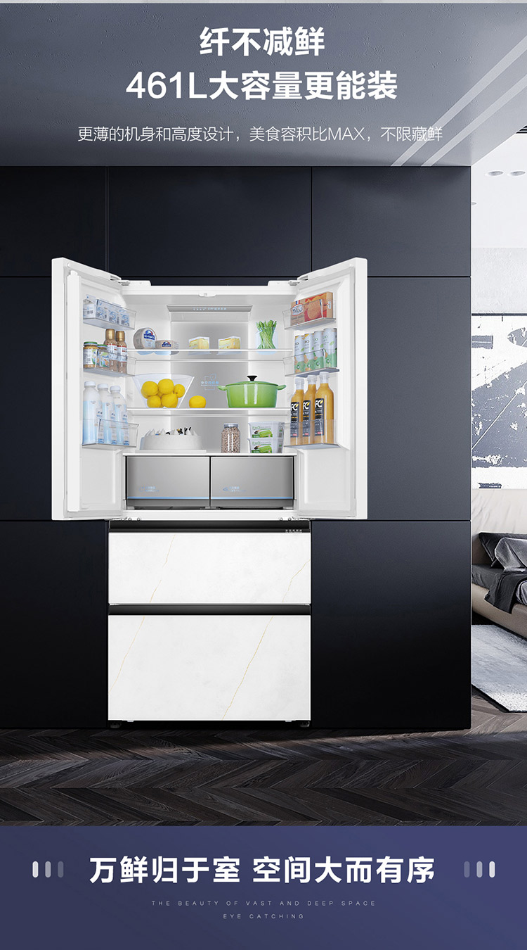 海尔冰箱法式多门全空间保鲜超薄零嵌入式一级变频节能变温EPP杀菌白色冰箱家用 BCD-461WGHFD14WYU1