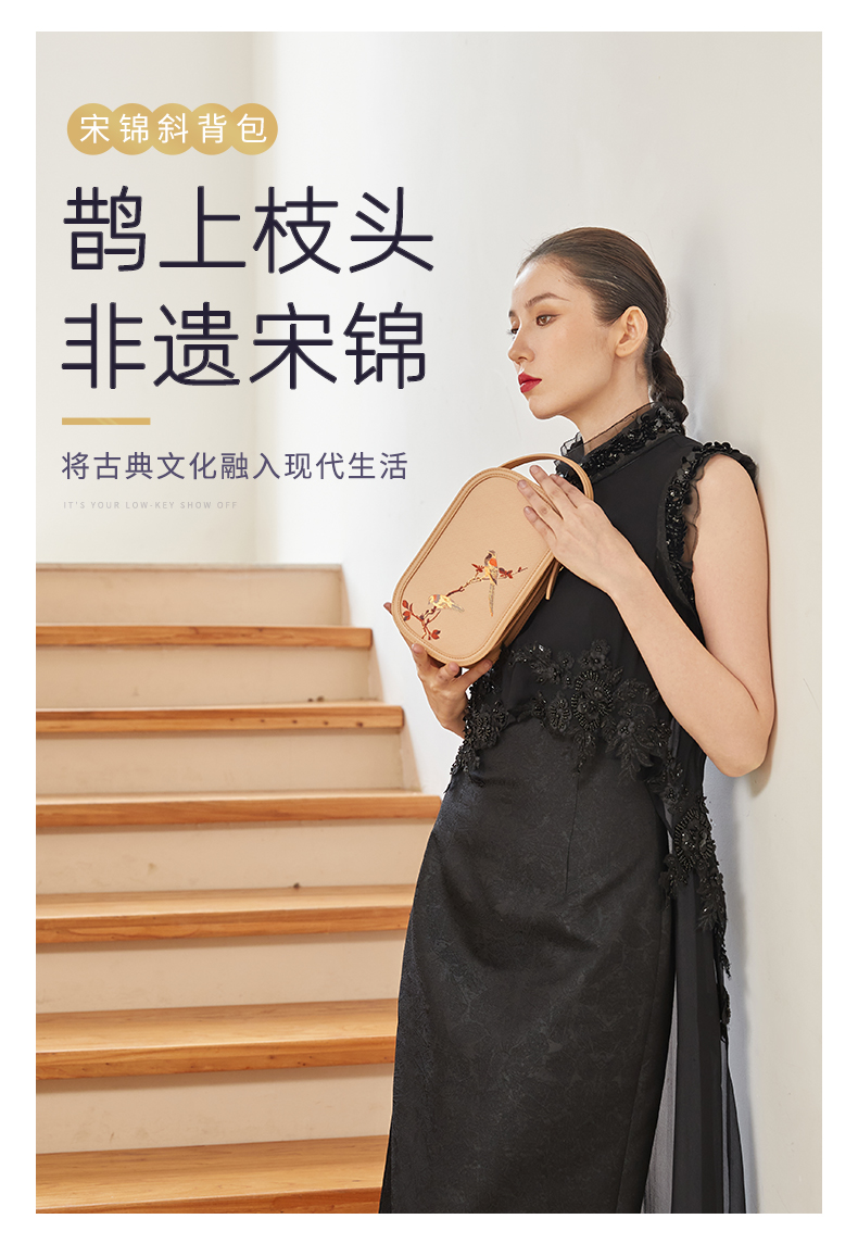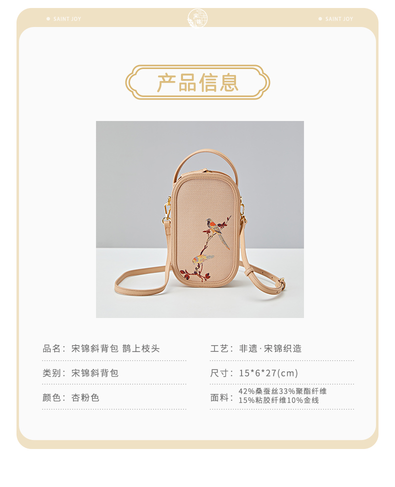 SAINTJOY/上久楷 宋锦斜背包 鹊上枝头 BWS23B0802