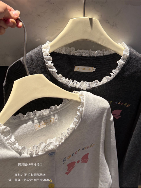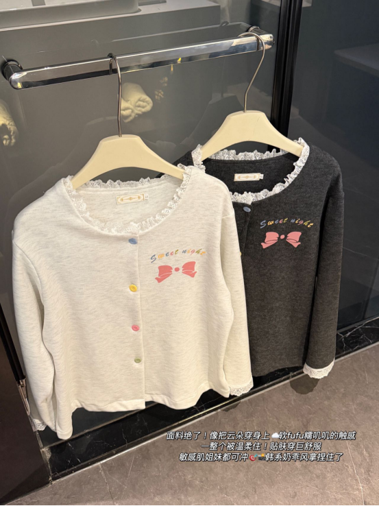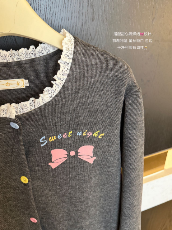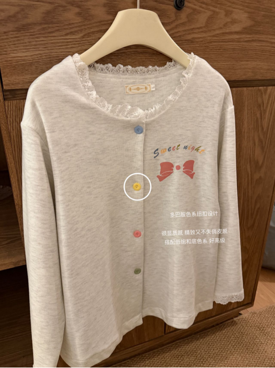 𝙏𝙞𝙥𝙨2. 圆领蕾丝开衫领口 穿脱方便 拉长颈部线条 领口蕾丝工艺设计 细节感满满💫