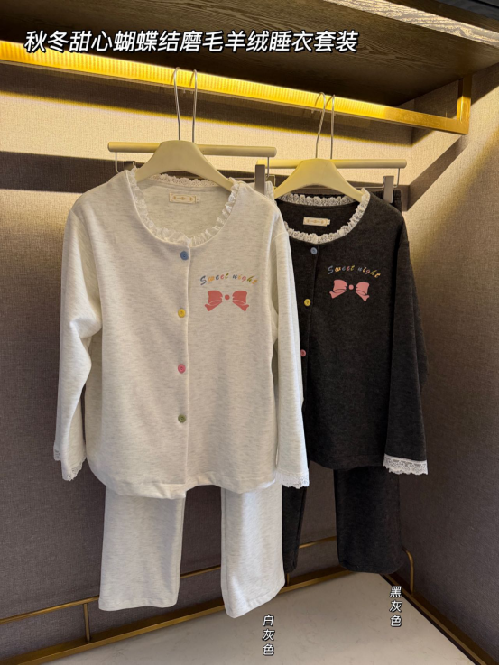 💕【秋冬甜心蝴蝶结磨毛羊绒睡衣套装】✨又软又暖又舒服的羊毛绒家居服,🌈好穿到飞起! ✅怕冷星人必备磨毛睡衣!触肤即暖,💦舒服得不想出门!