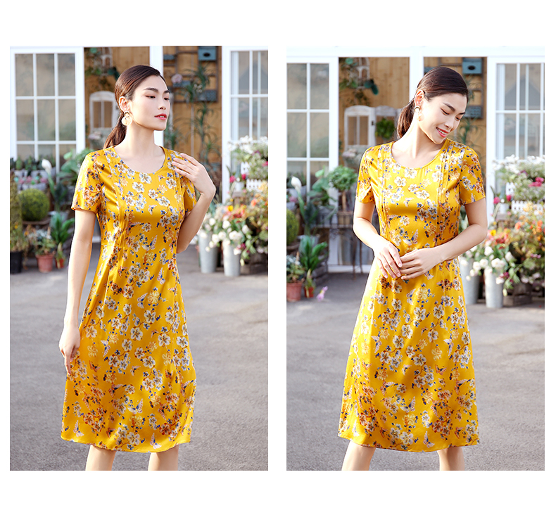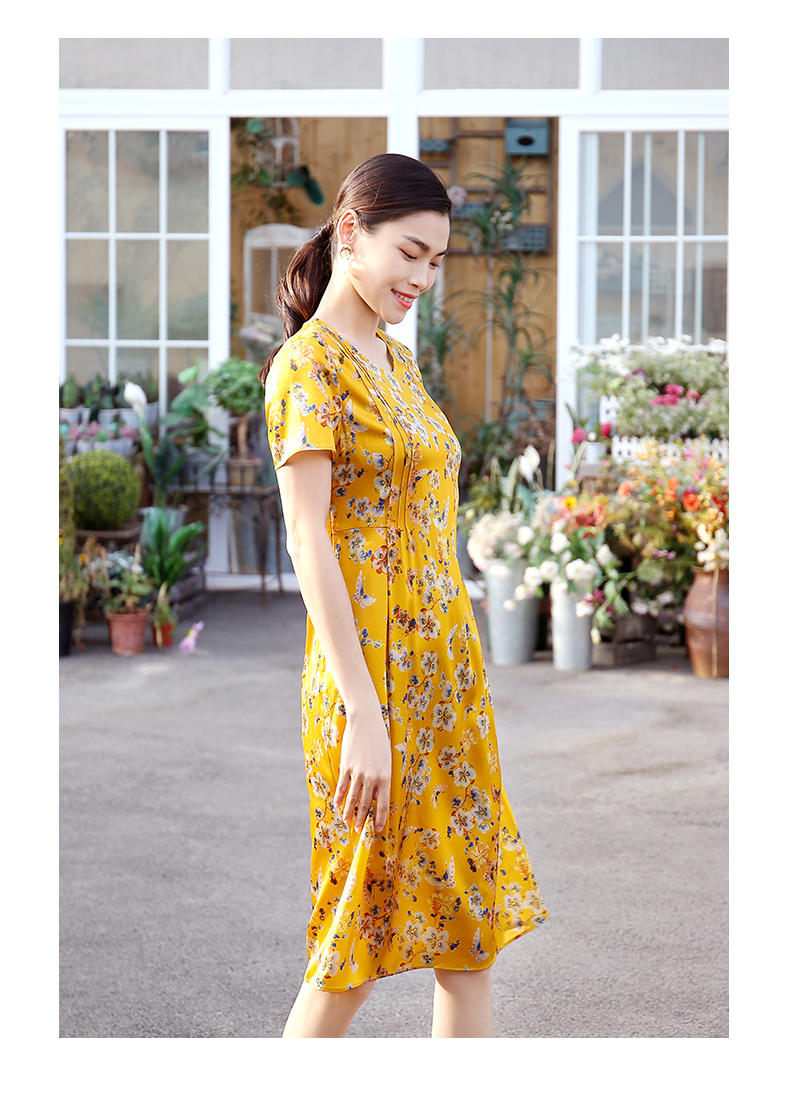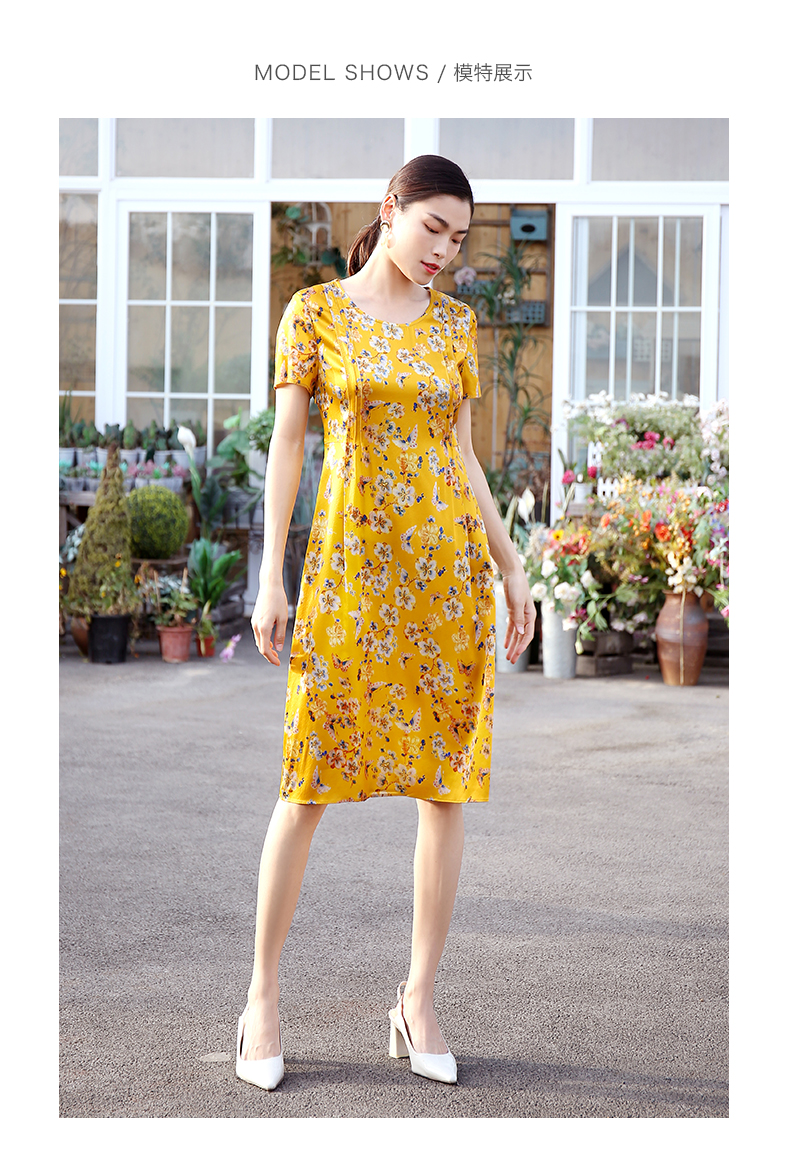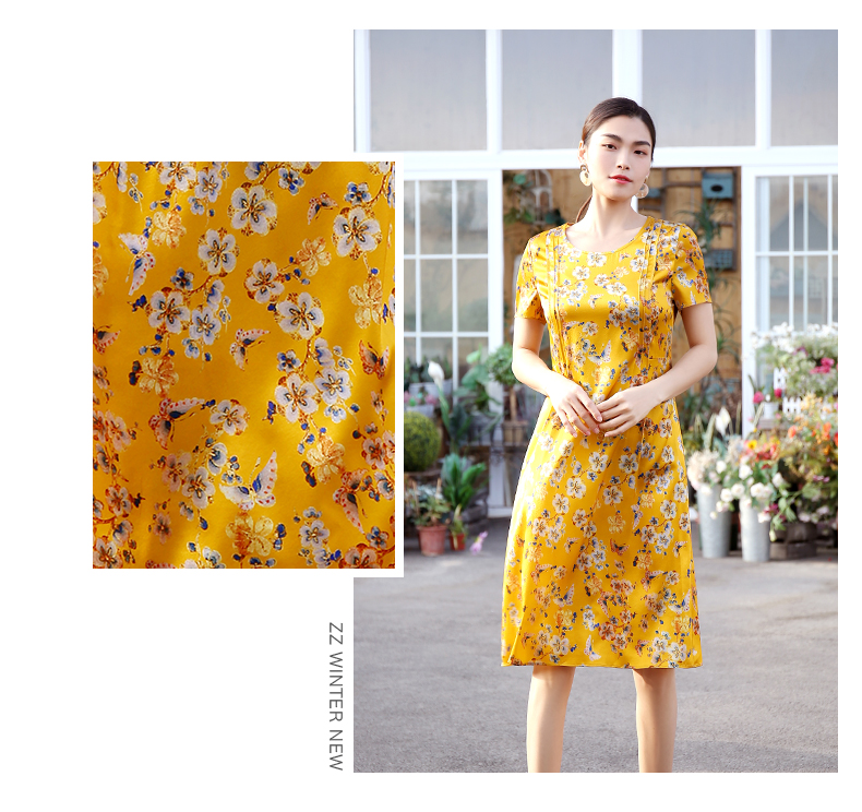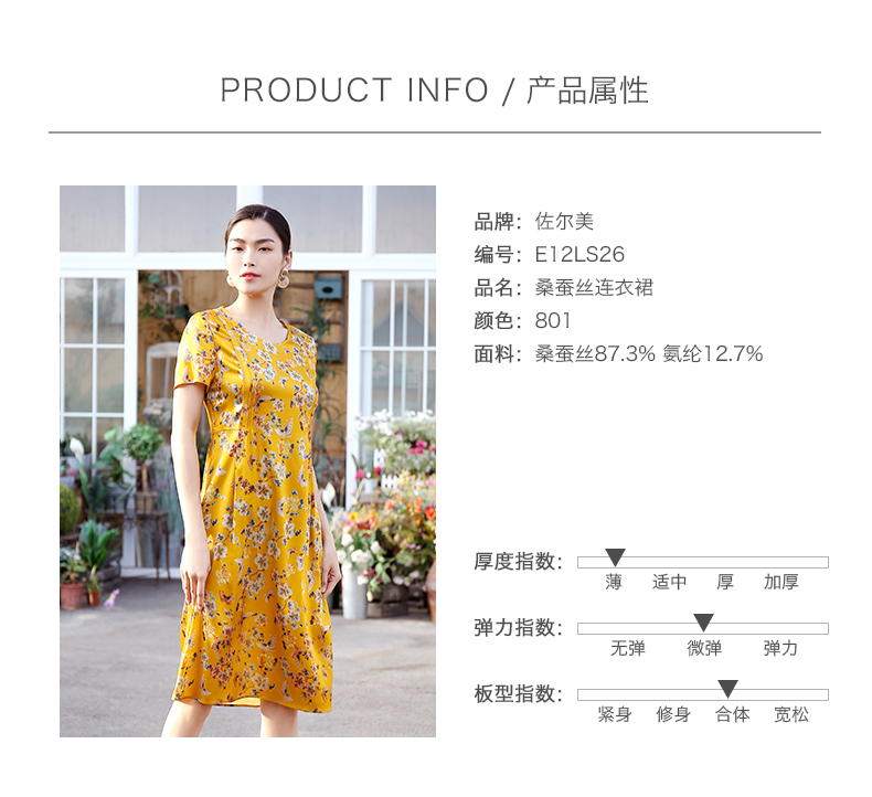 佐尔美商场同款圆领优雅桑蚕丝宽松碎花真丝连衣裙E12LS26