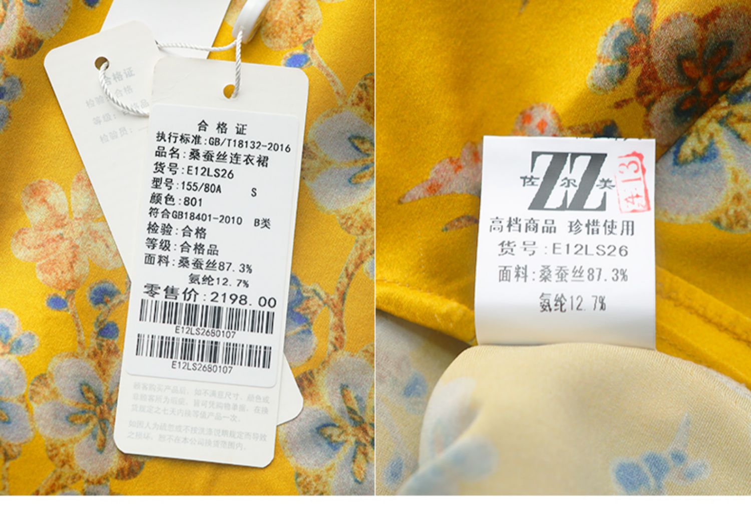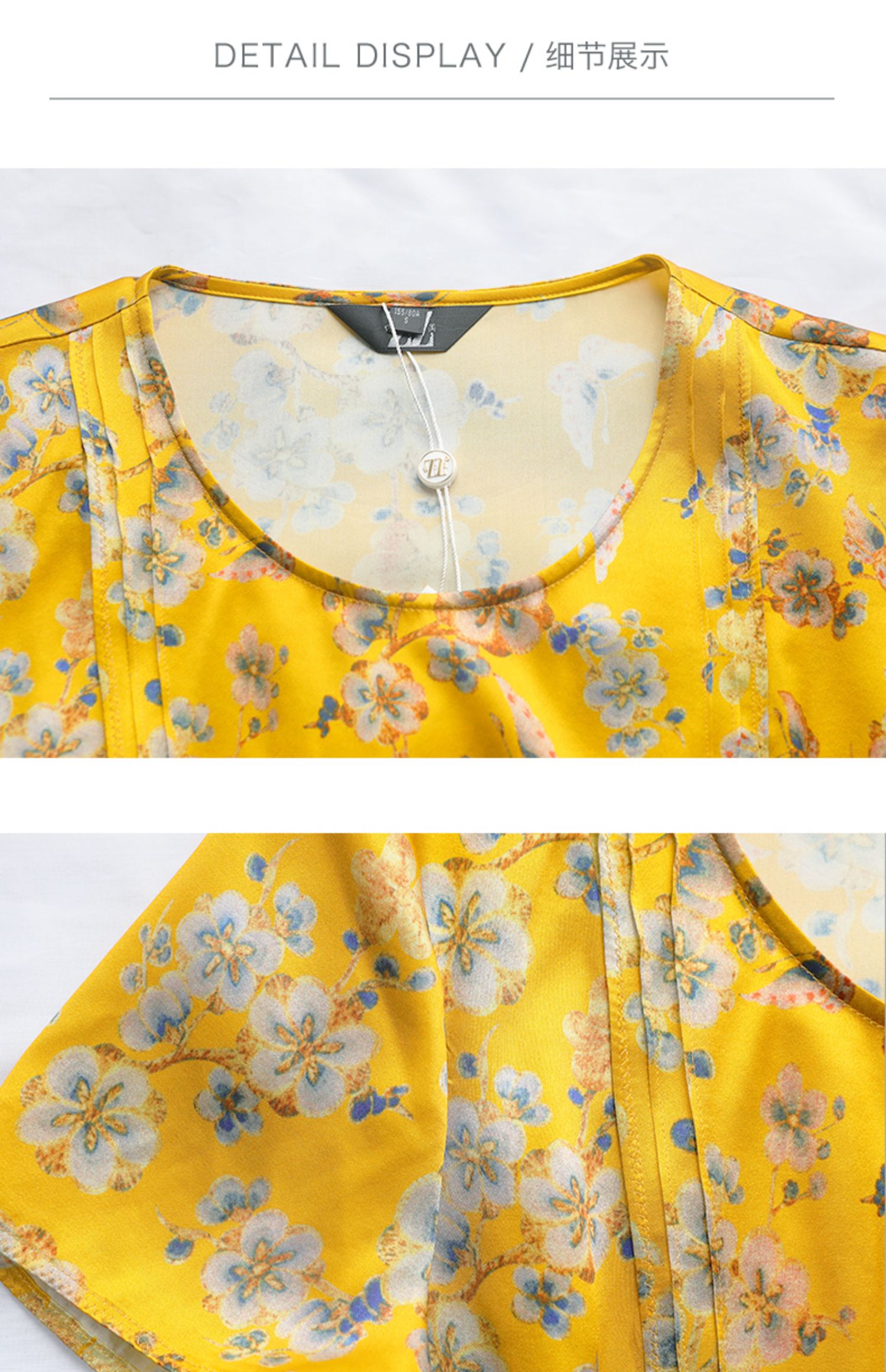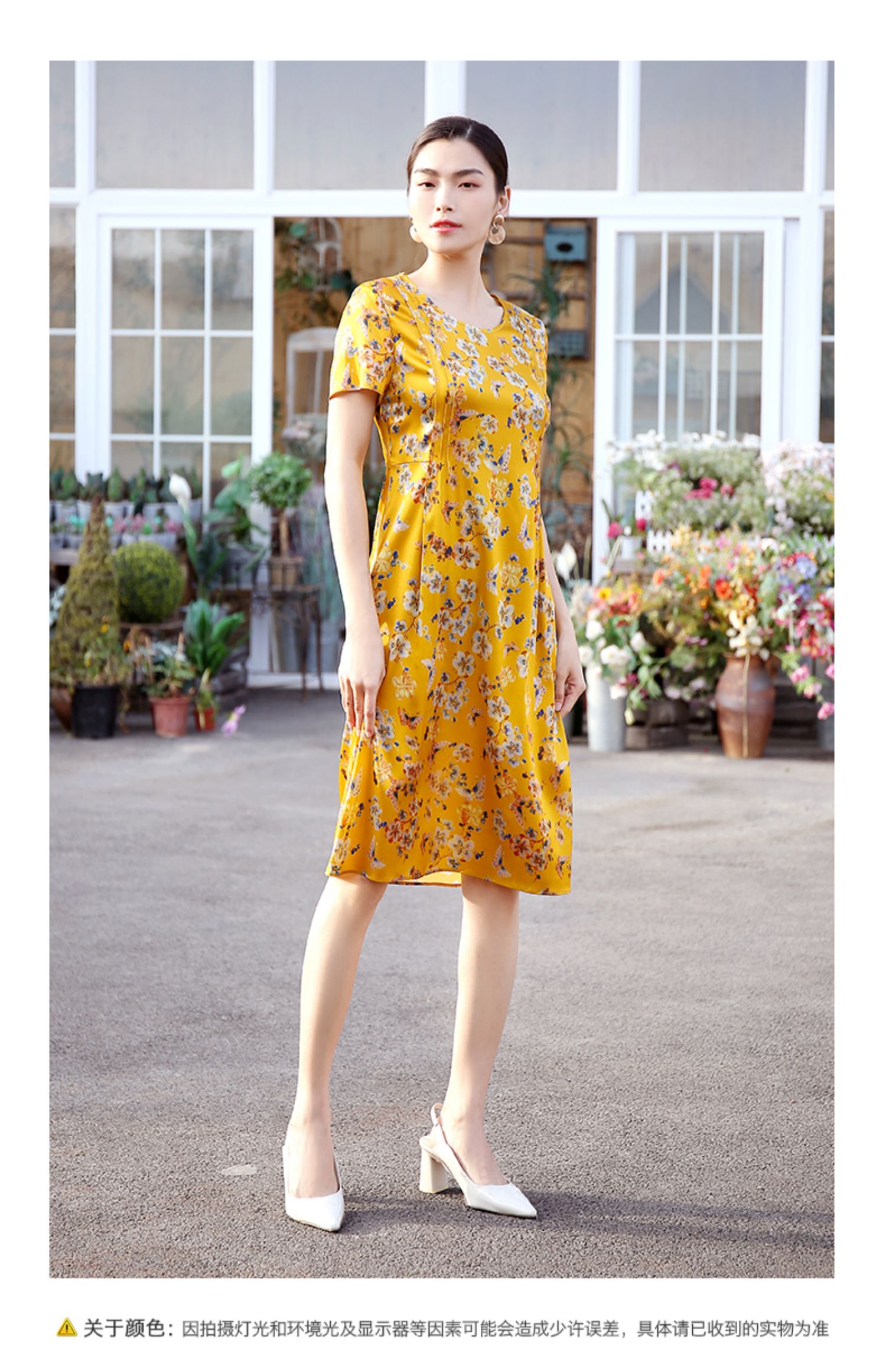 佐尔美商场同款圆领优雅桑蚕丝宽松碎花真丝连衣裙E12LS26