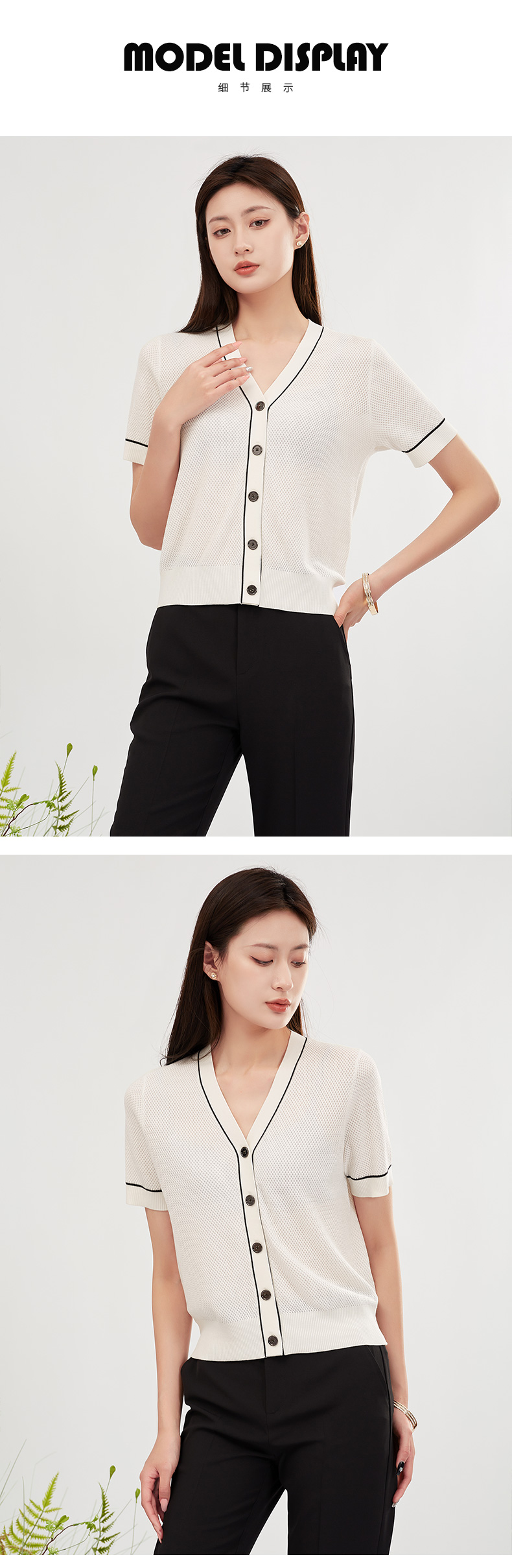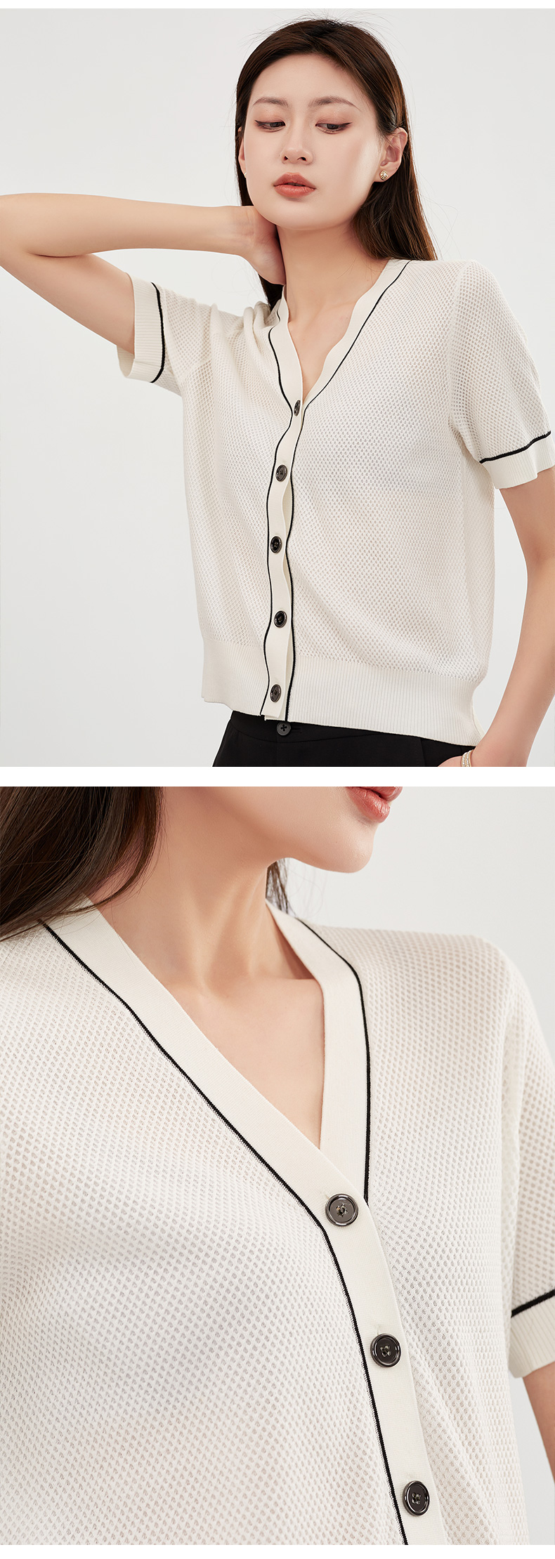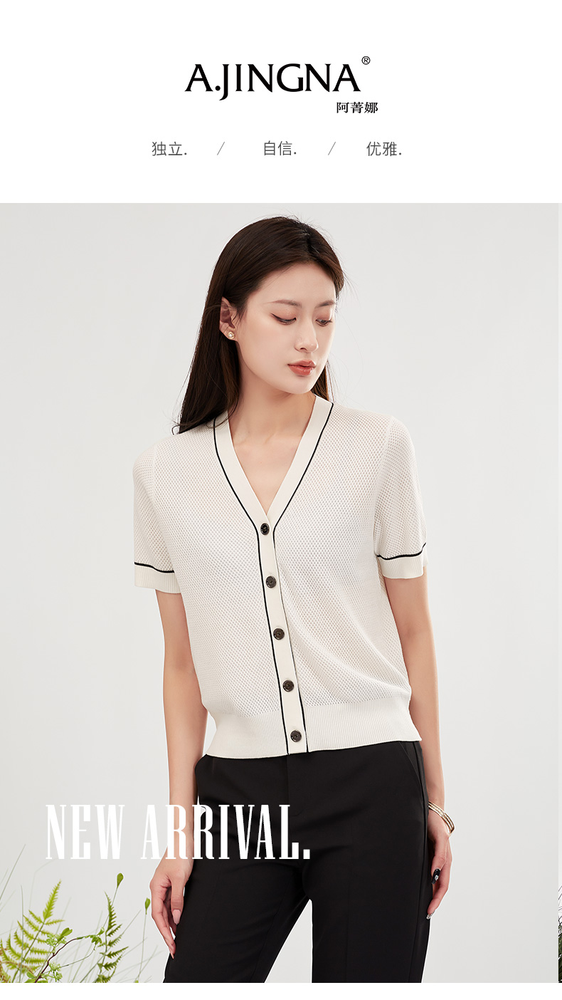 【商场同款】阿菁娜高级感V领短袖香风外套A28X318007