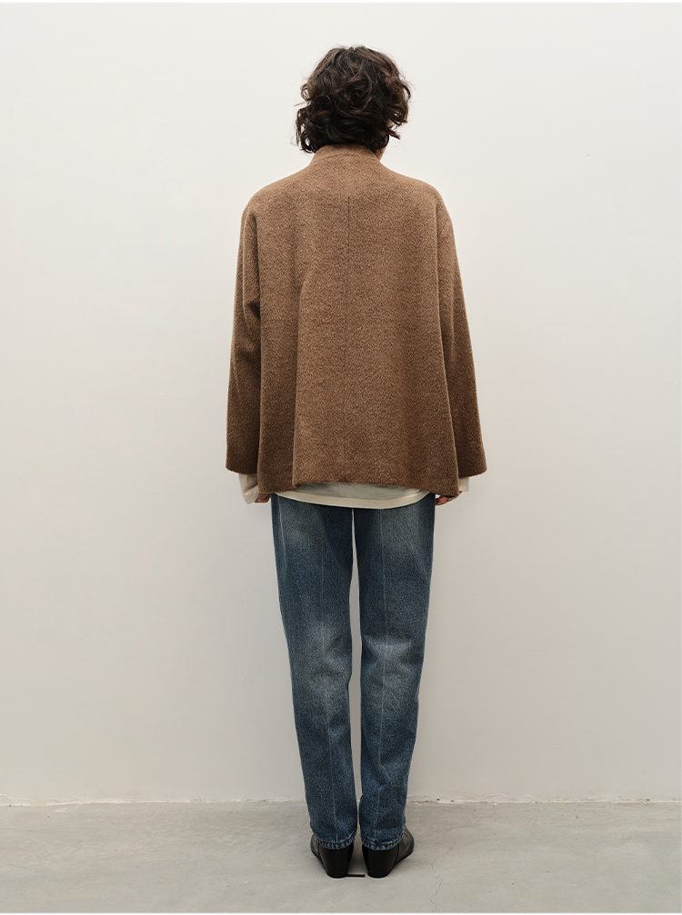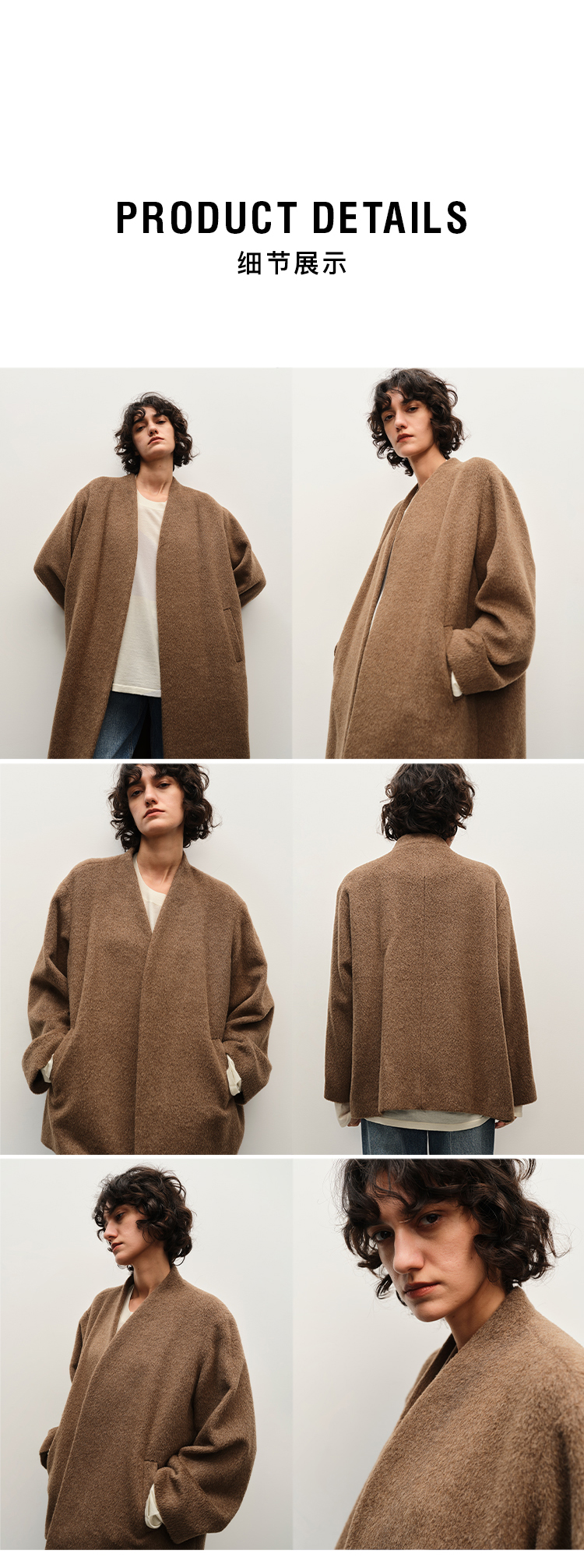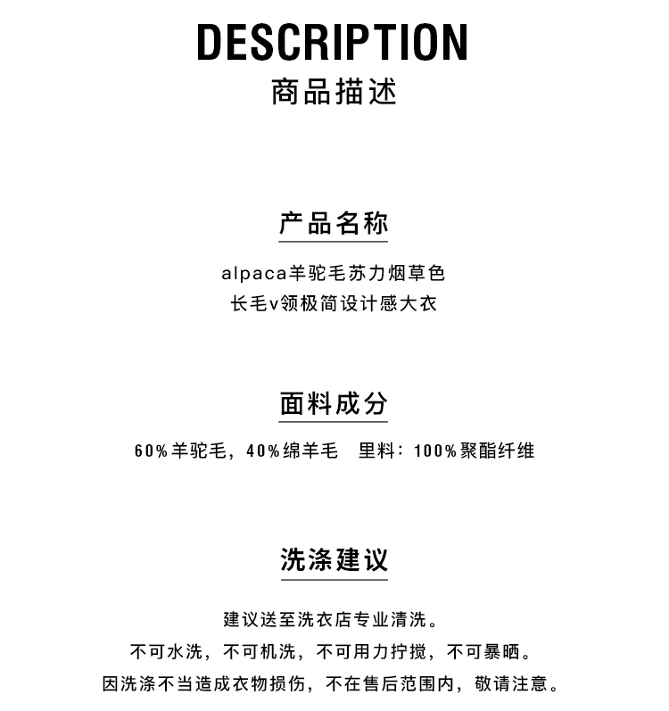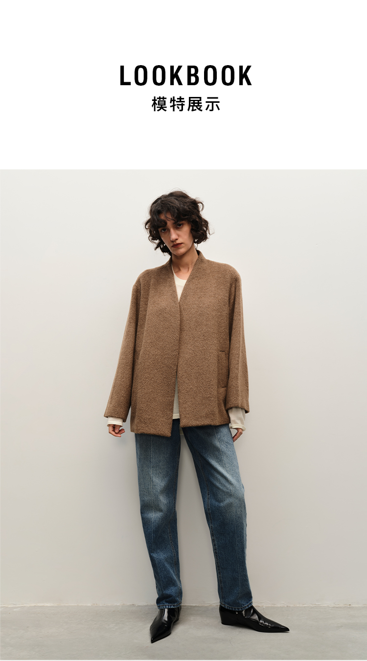 HIDEMI alpaca羊驼毛苏力烟草色长毛v领极简设计感大衣 长款/短款