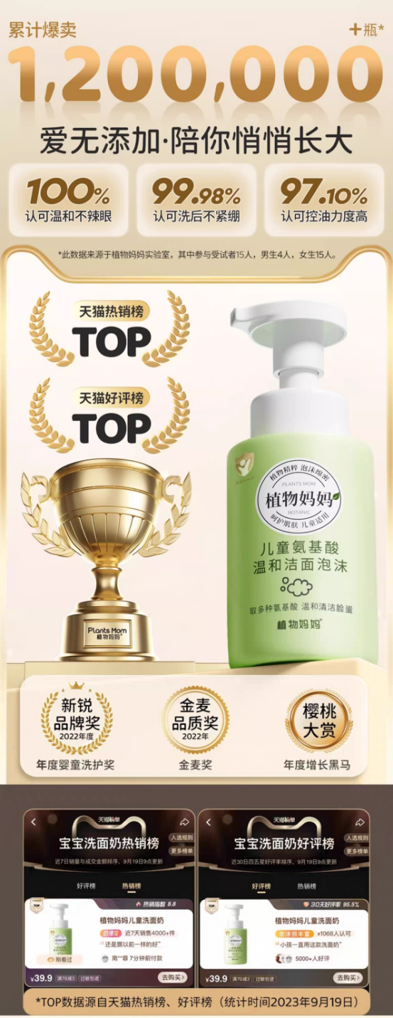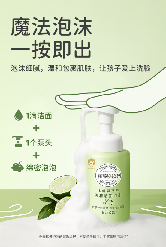 植物妈妈——专业致力于3-12岁儿童洗护品牌☀️ 源于自然,成分安全,健康温和👍成人、敏感肌也可以囤哦❗ 儿童专用洗面奶 宝宝和妈妈的共同选择 🔥植物妈妈氨基酸洁面泡沫 ✅ 氨基酸“奶”般绵密 洗出水润洁净 ✅ 温和配比氨基酸洗完水润不紧绷