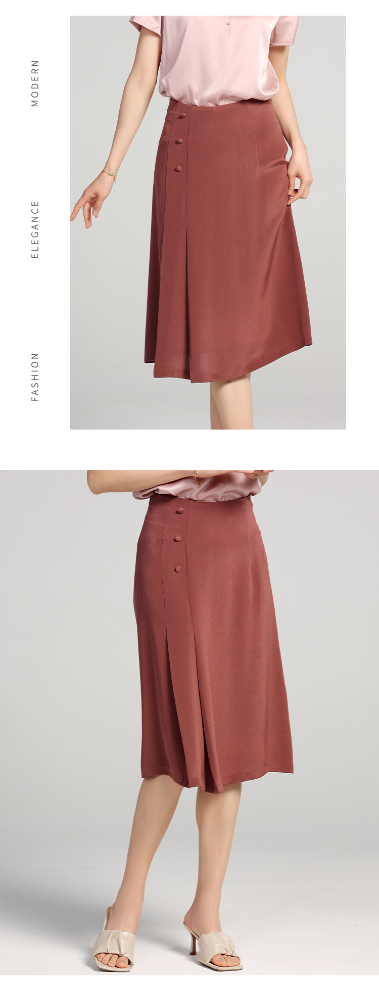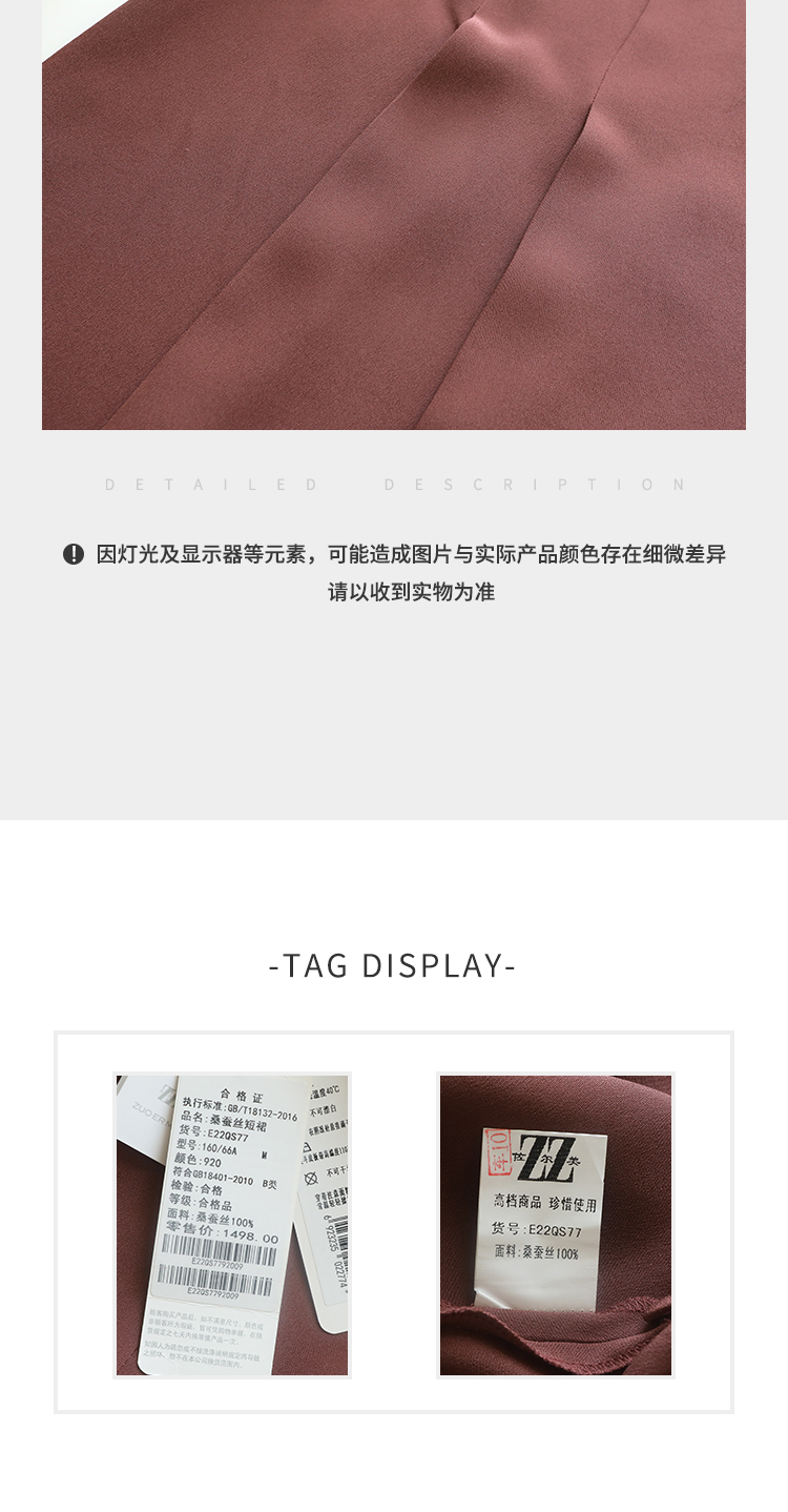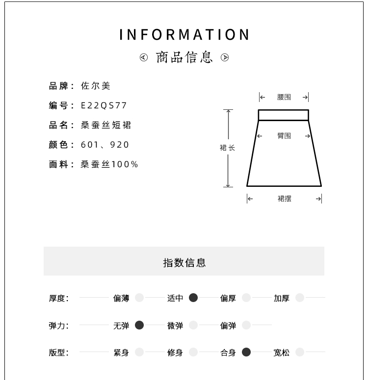 佐尔美夏季新款 优雅百搭100%桑蚕丝真丝短裙女E22QS77