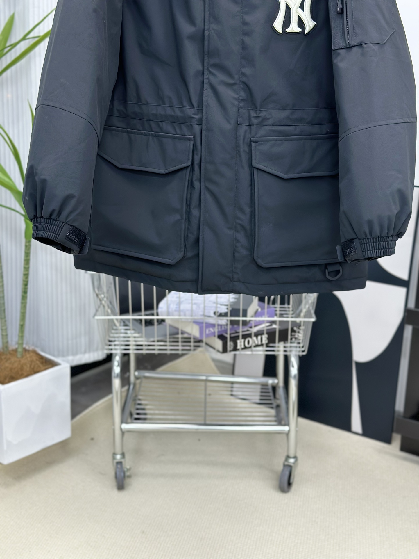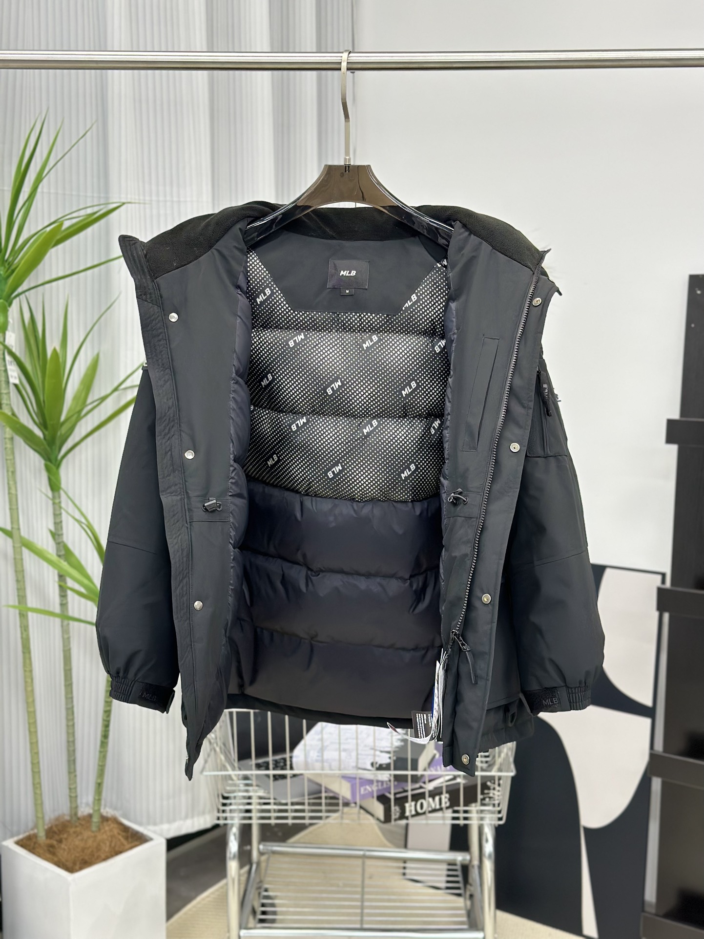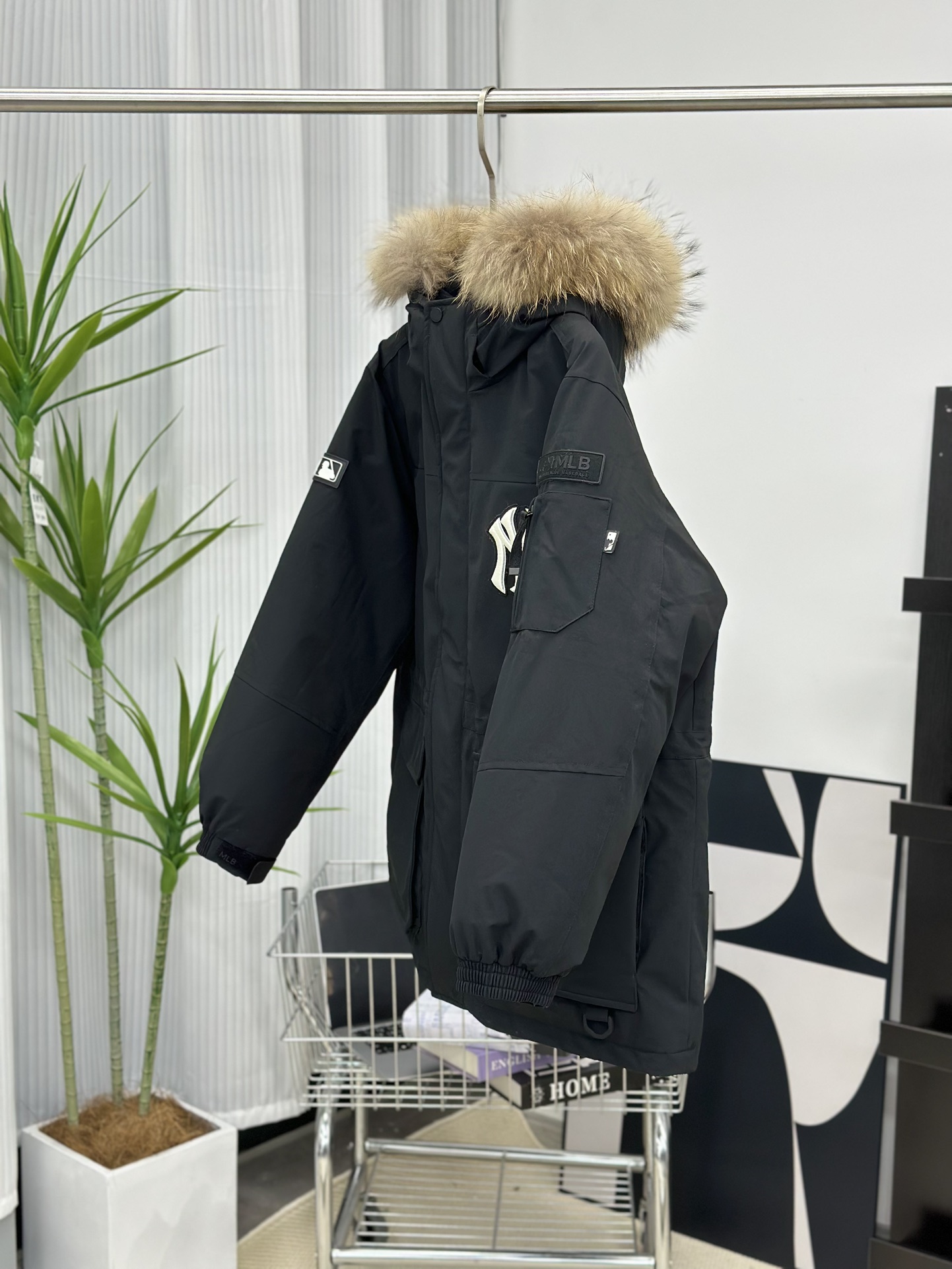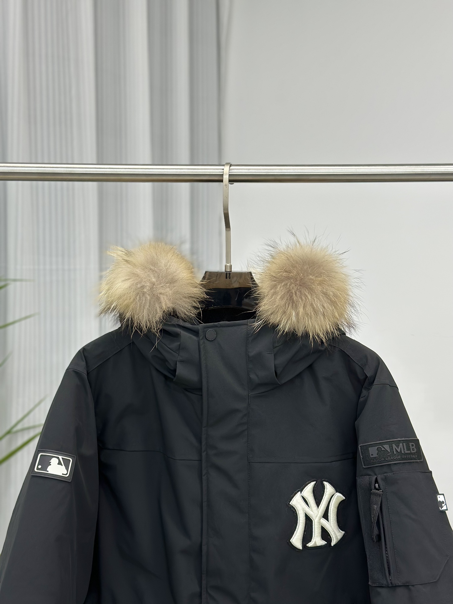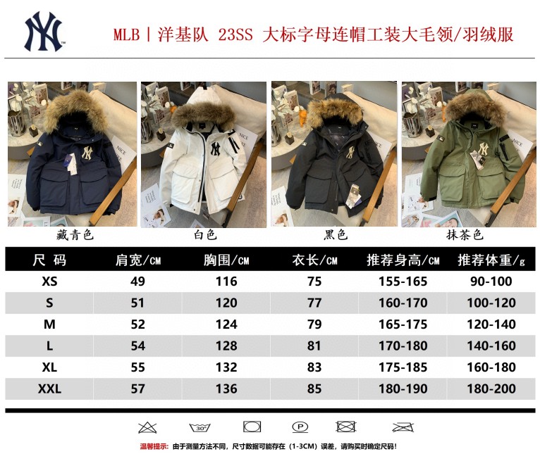 代购级版本!!MLB 23SS 大标字母连帽工装大毛领情侣款羽绒服